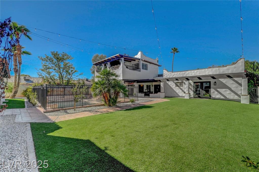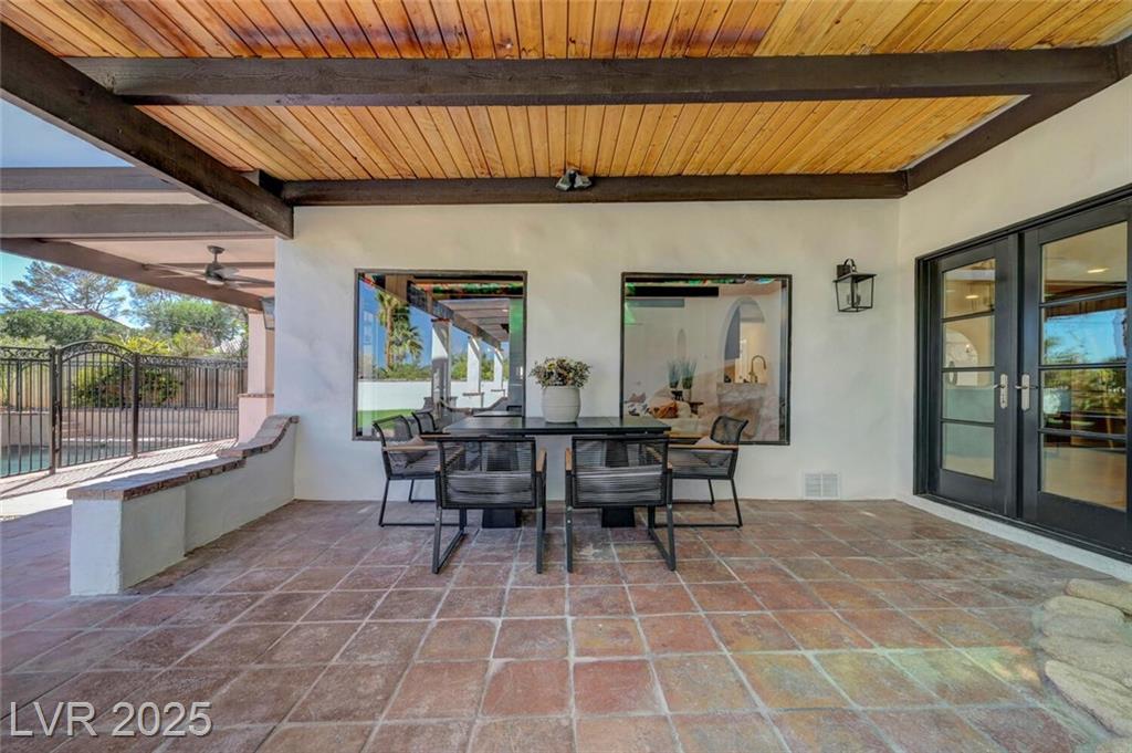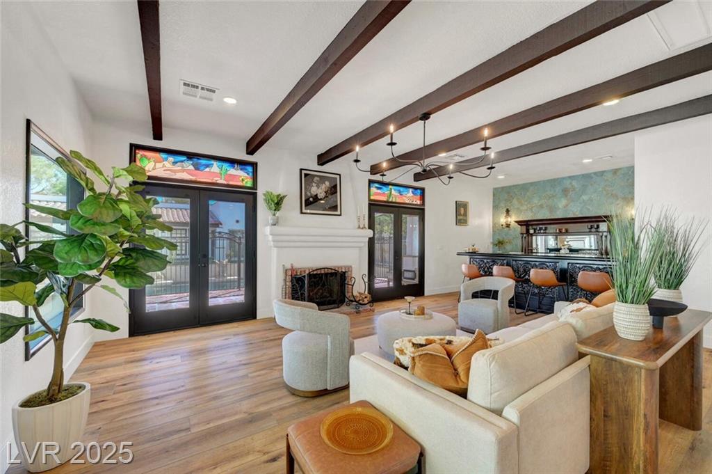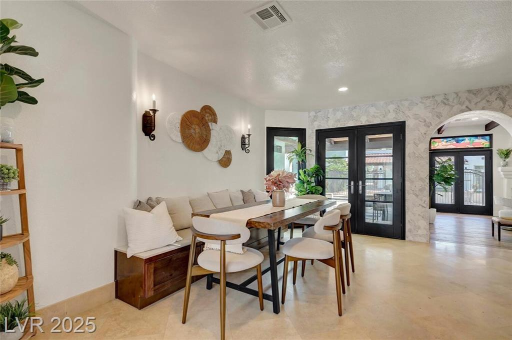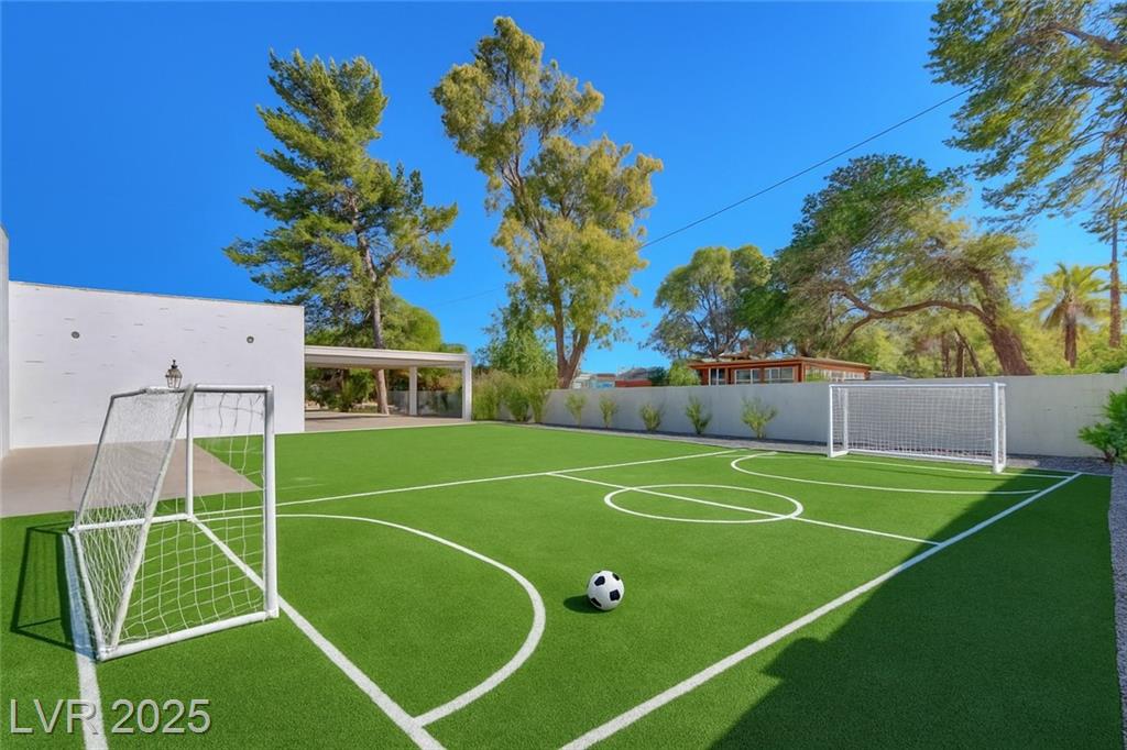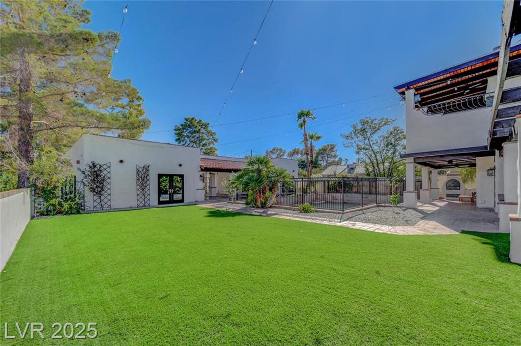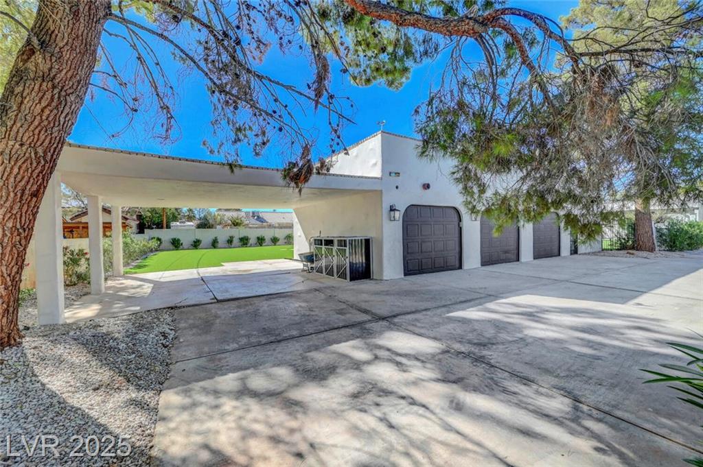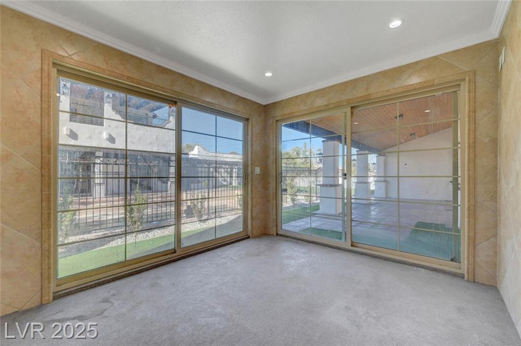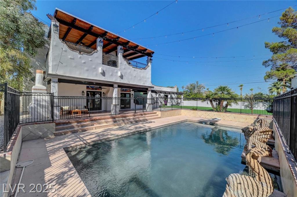 Not your average Las Vegas estate — This beautiful property been chosen to featured on HGTV 2025 holiday season! This 0.57-acre Spanish compound is a true masterpiece, exquisite design by celebrity famous designer and HGTV star Alison Victoria, featuring 2 main dwellings, that include private 2 casitas, total of 7 bedrooms (8 possibile), 6 full baths, a 3-car garage, 2-car carport, pool, covered patio and rare additional 1100sqft 50 ft deep! full-size indoor racquetball court with basketball hoop that serve as a bunker with 3ft reinforced concrete all around it! Enjoy a gated entry, circular driveway, large 2 covered patios, and multi outdoor spaces to entertain. This property bursts with charm, style and character. Perfect for luxury living, entertaining, or your private retreat—don’t miss this one-of-a-kind showpiece in the Located in exclusive Section 10, this unique neighborhood offers larger lots and no HOA, perfect for buyers seeking space and privacy in the heart of Las Vegas.