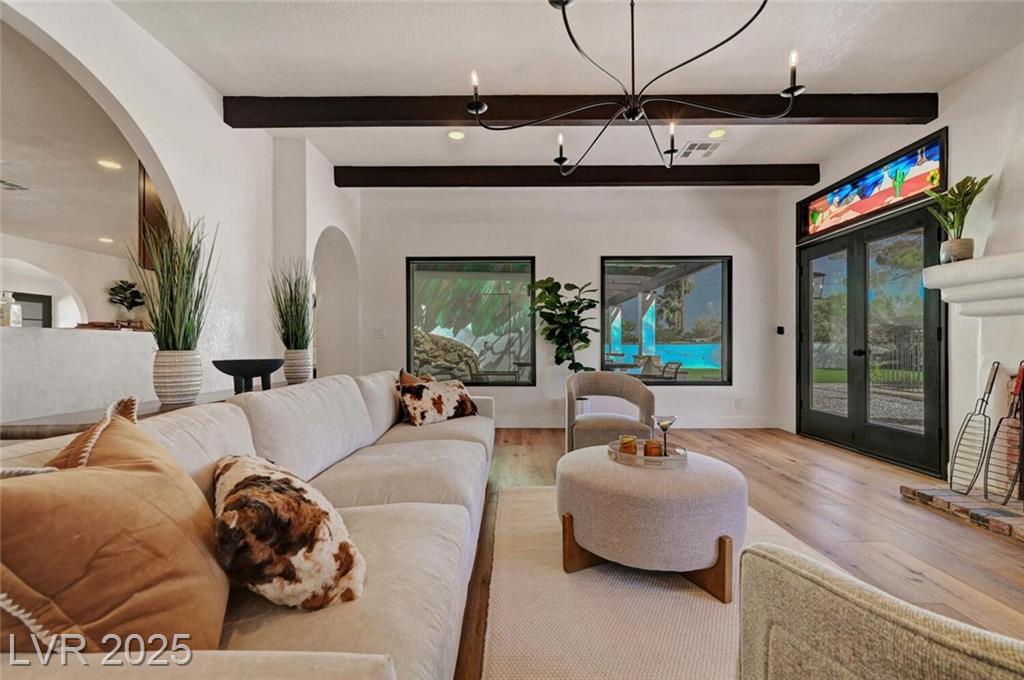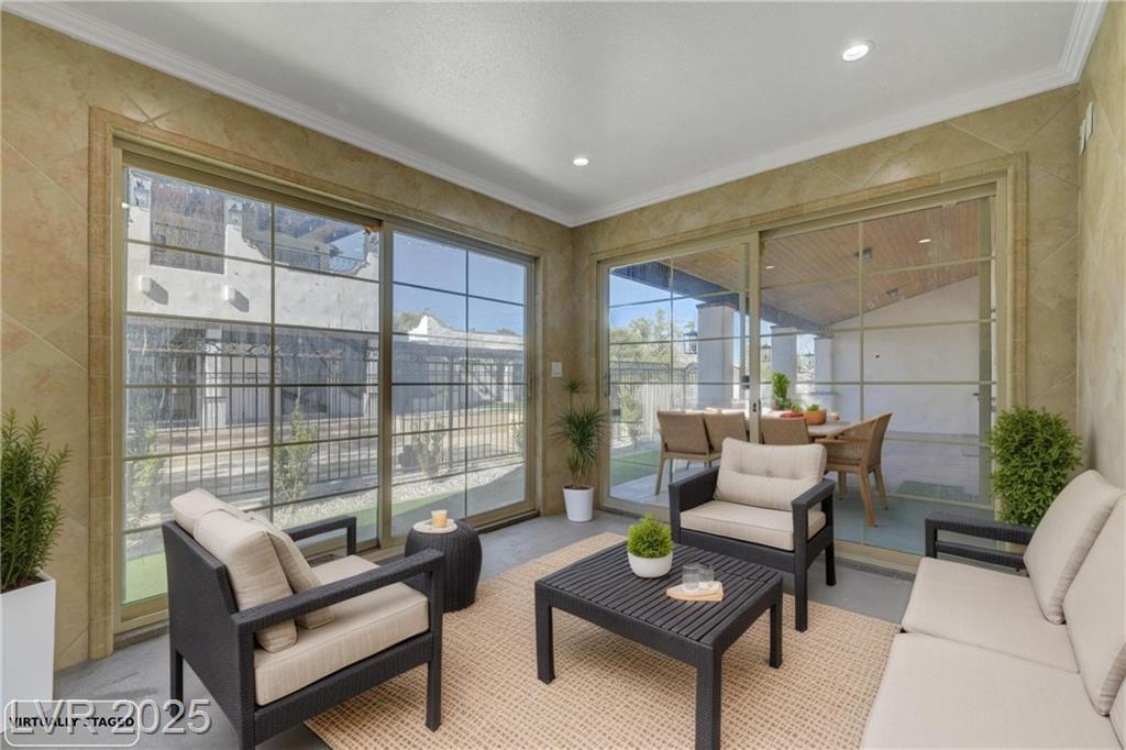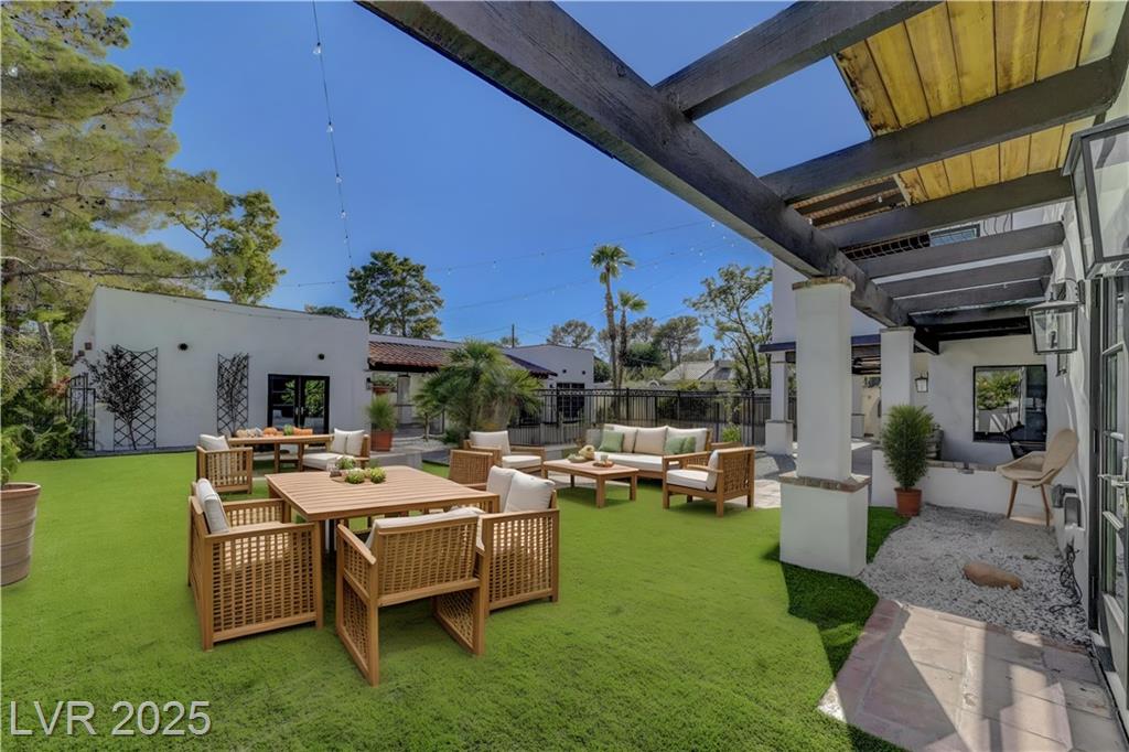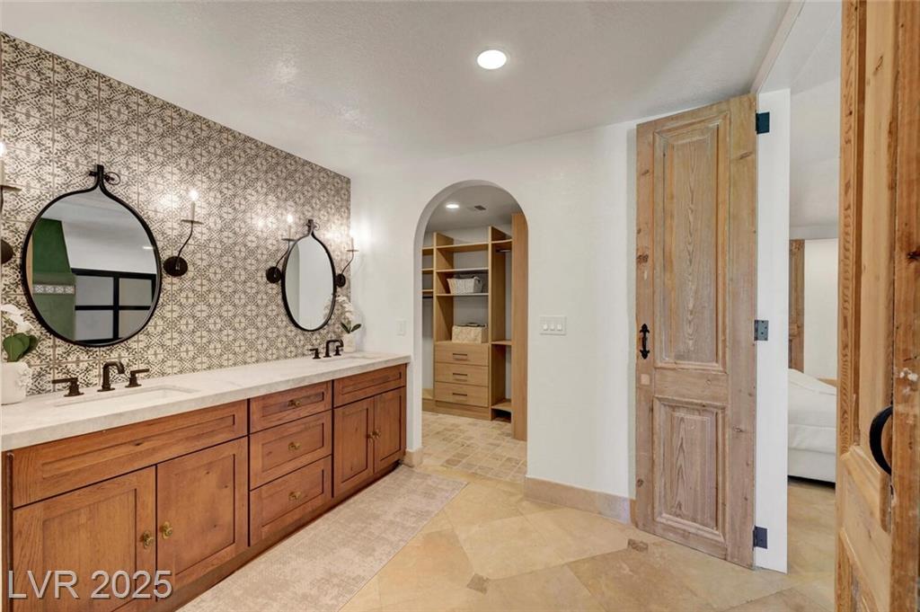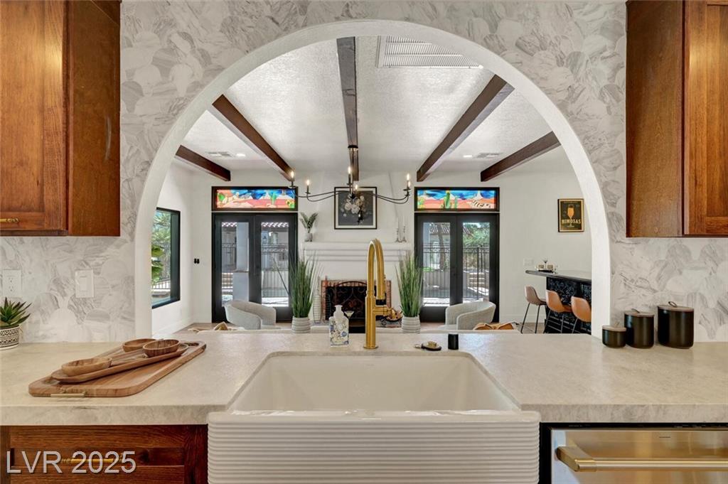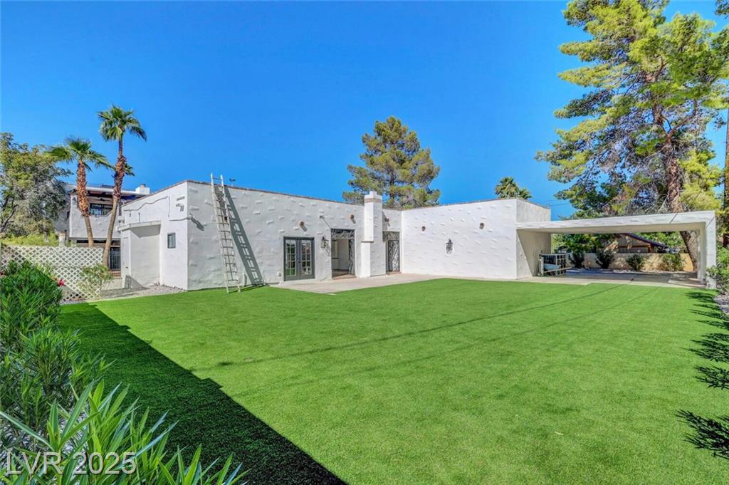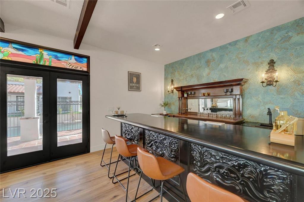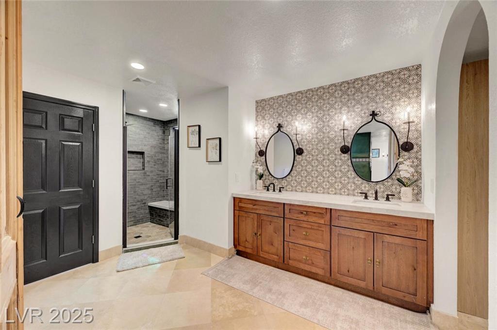 Not your average Las Vegas estate — This beautiful property been chosen to featured on HGTV 2025 holiday season! This 0.57-acre Spanish compound is a true masterpiece, exquisite design by celebrity famous designer and HGTV star Alison Victoria, featuring 2 main dwellings, that include private 2 casitas, total of 7 bedrooms (8 possibile), 6 full baths, a 3-car garage, 2-car carport, pool, covered patio and rare additional 1100sqft 50 ft deep! full-size indoor racquetball court with basketball hoop that serve as a bunker with 3ft reinforced concrete all around it! Enjoy a gated entry, circular driveway, large 2 covered patios, and multi outdoor spaces to entertain. This property bursts with charm, style and character. Perfect for luxury living, entertaining, or your private retreat—don’t miss this one-of-a-kind showpiece in the Located in exclusive Section 10, this unique neighborhood offers larger lots and no HOA, perfect for buyers seeking space and privacy in the heart of Las Vegas.