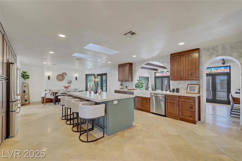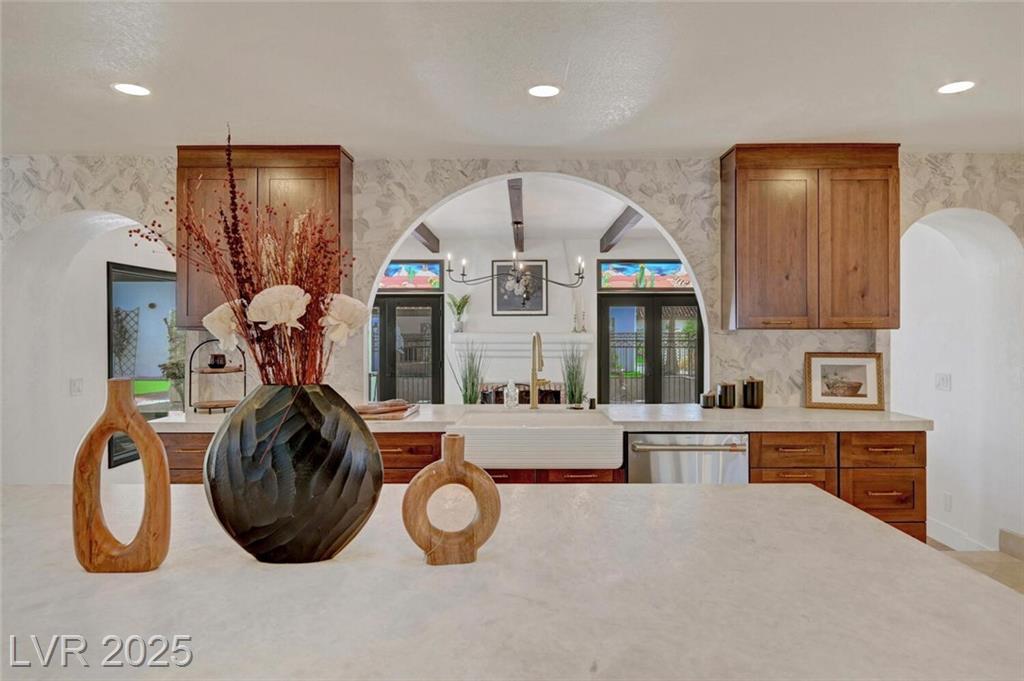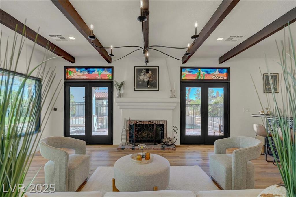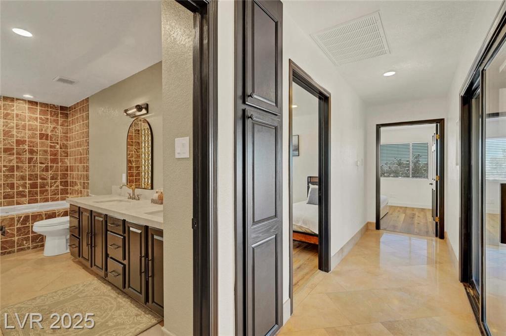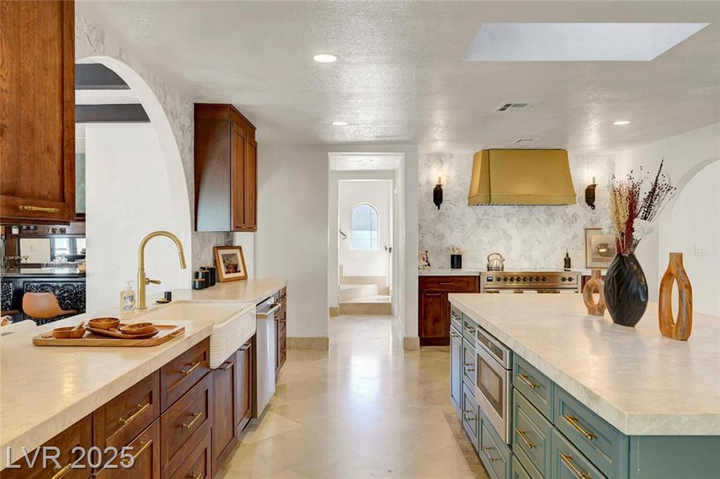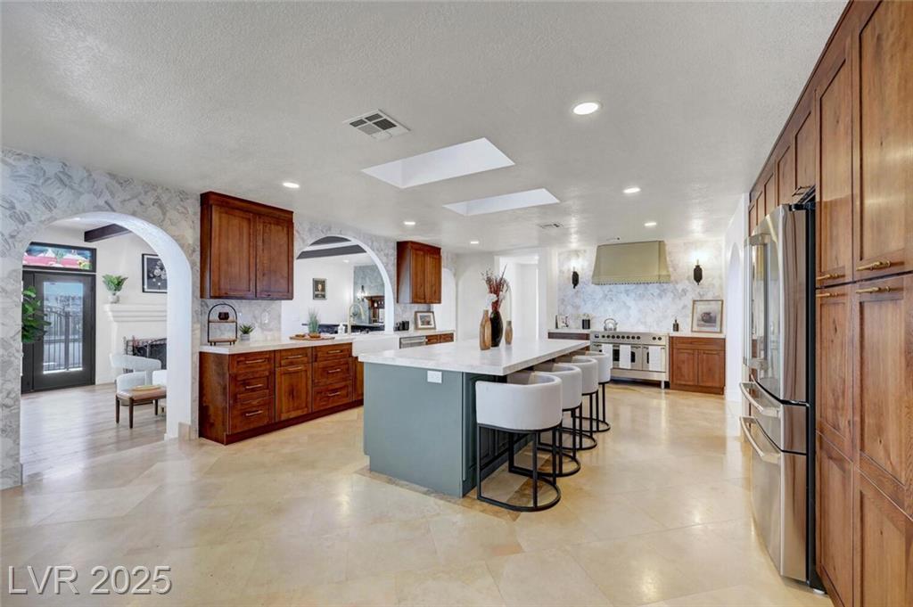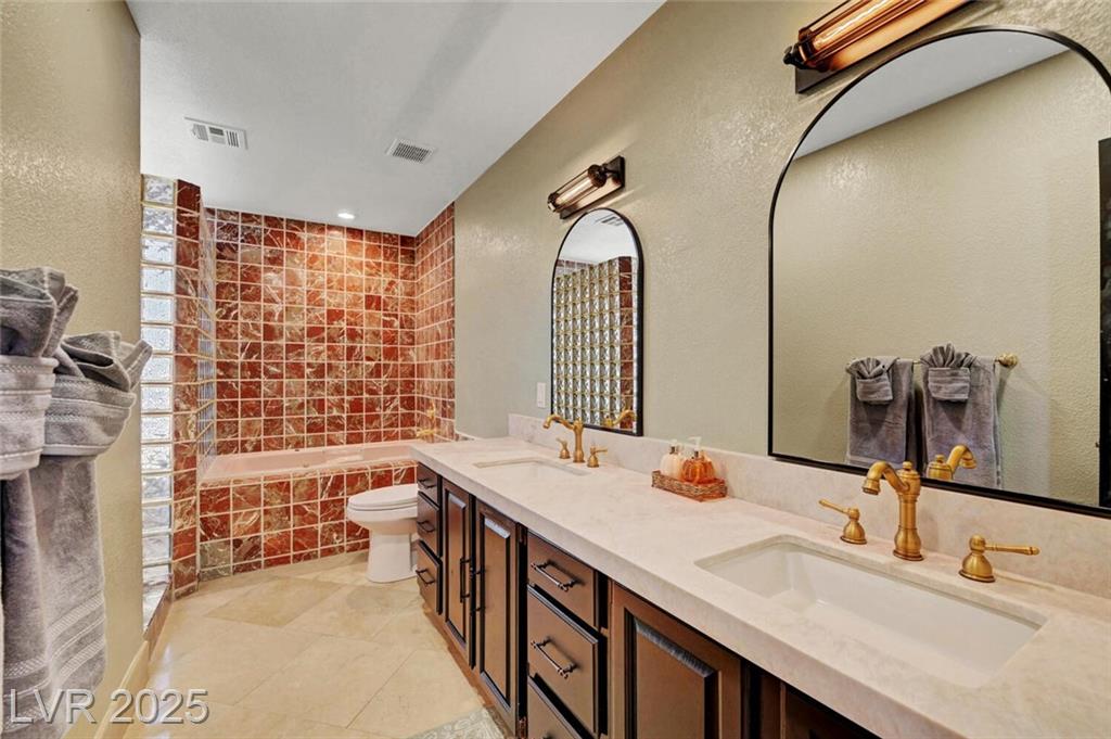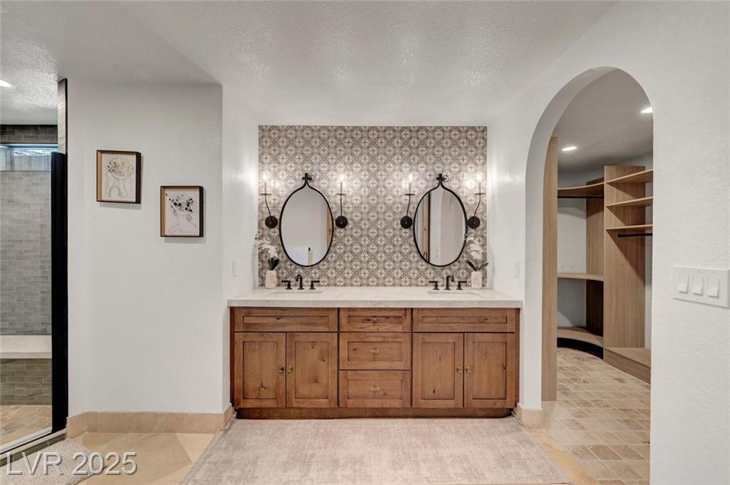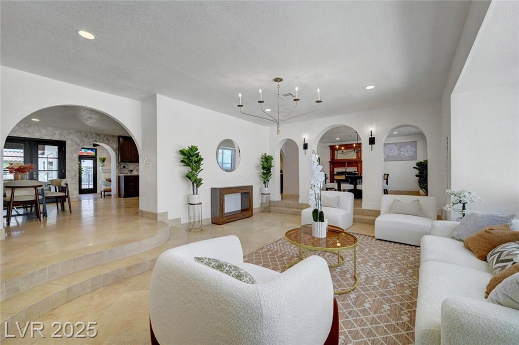 Not your average Las Vegas estate — This beautiful property been chosen to featured on HGTV 2025 holiday season! This 0.57-acre Spanish compound is a true masterpiece, exquisite design by celebrity famous designer and HGTV star Alison Victoria, featuring 2 main dwellings, that include private 2 casitas, total of 7 bedrooms (8 possibile), 6 full baths, a 3-car garage, 2-car carport, pool, covered patio and rare additional 1100sqft 50 ft deep! full-size indoor racquetball court with basketball hoop that serve as a bunker with 3ft reinforced concrete all around it! Enjoy a gated entry, circular driveway, large 2 covered patios, and multi outdoor spaces to entertain. This property bursts with charm, style and character. Perfect for luxury living, entertaining, or your private retreat—don’t miss this one-of-a-kind showpiece in the Located in exclusive Section 10, this unique neighborhood offers larger lots and no HOA, perfect for buyers seeking space and privacy in the heart of Las Vegas.