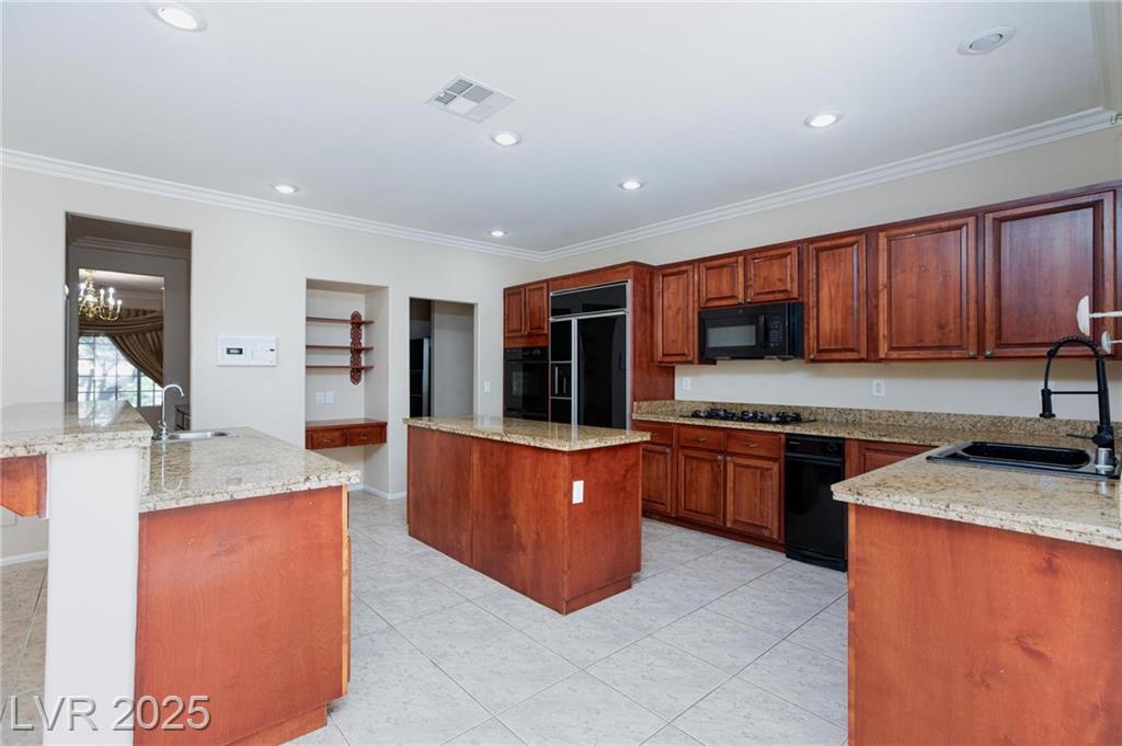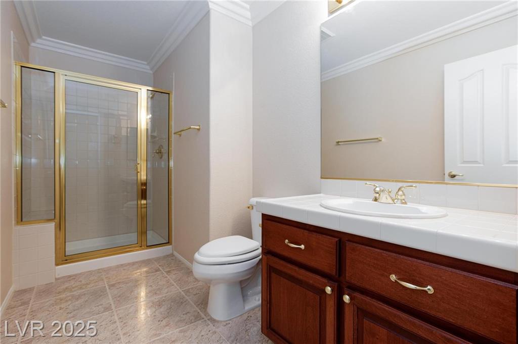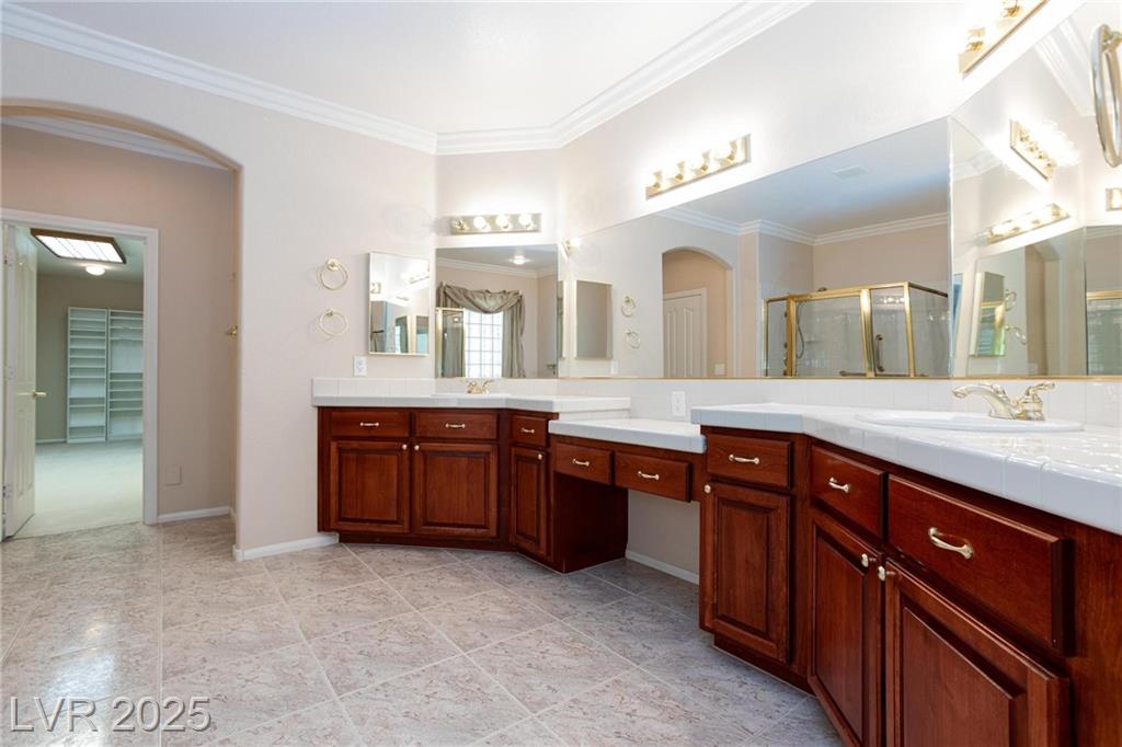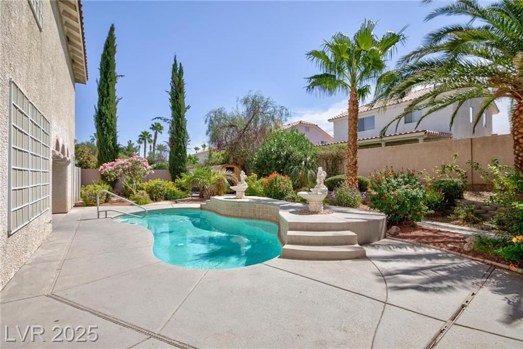 This immaculate 6 bedroom, 6 bath home blends luxury, comfort, and functionality. Ideal for multi-generational living, it offers two master suites—one upstairs and one downstairs—for flexibility and privacy. The upstairs master retreat boasts three walk-in closets, including one that feels like a personal boutique, while another ensuite bedroom downstairs makes hosting guests easy. The home sits on a large lot with a huge covered patio and gorgeous pool, creating a resort-style atmosphere in your own backyard. Inside, the chef’s kitchen features a butler’s pantry, spacious island, and breakfast bar that opens to the living area. Formal living and dining rooms add elegance, while a large upstairs loft offers versatility as a family room, game area, or office. Additional highlights include a central vacuum system, three-car garage, and the security of a gated community. Move-in ready and meticulously maintained, this home truly has it all. (Pool service & landscape service are included)