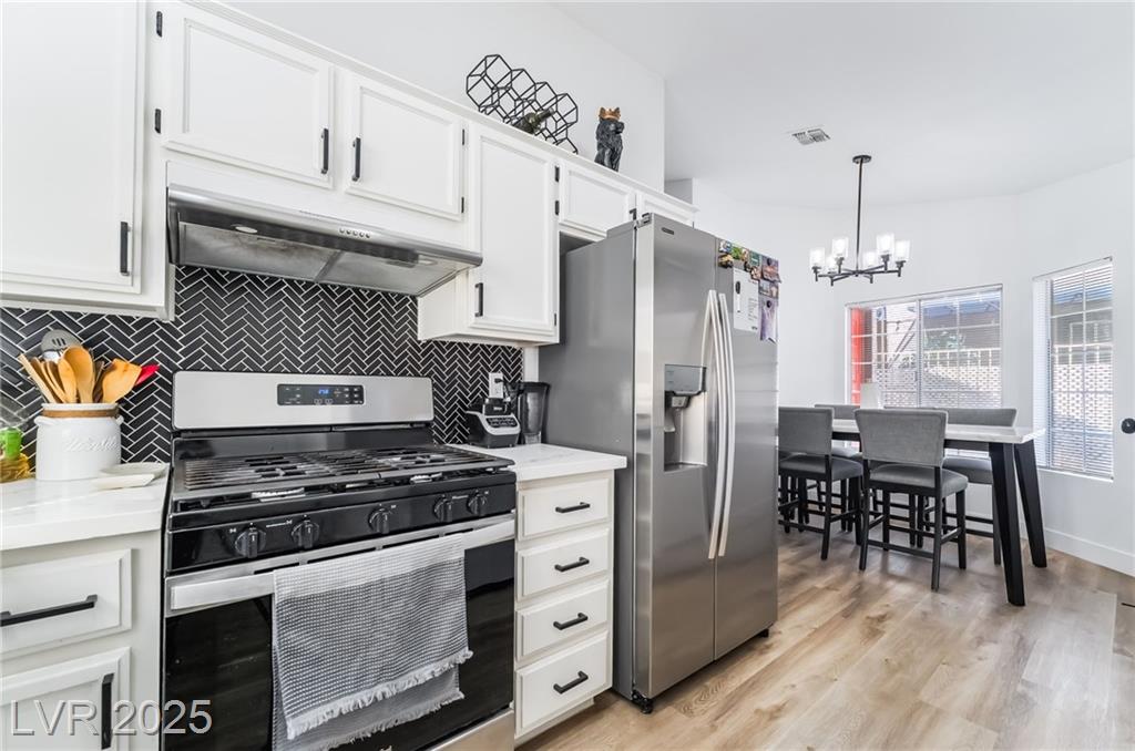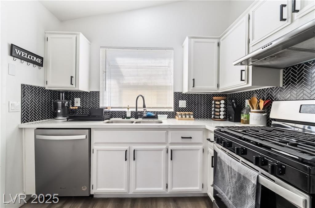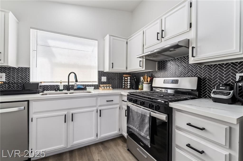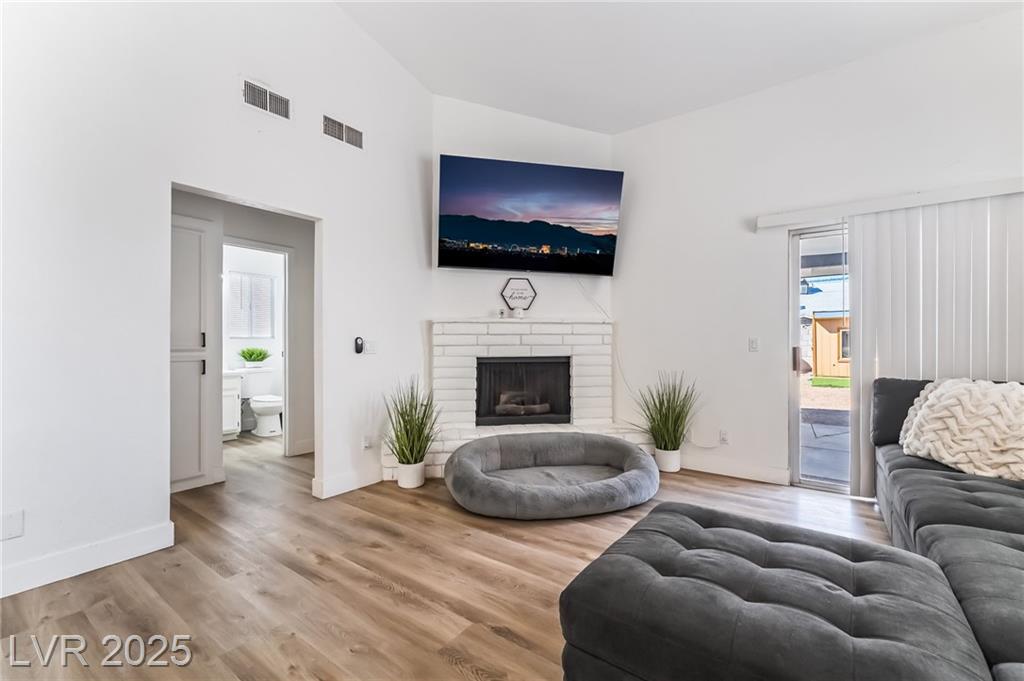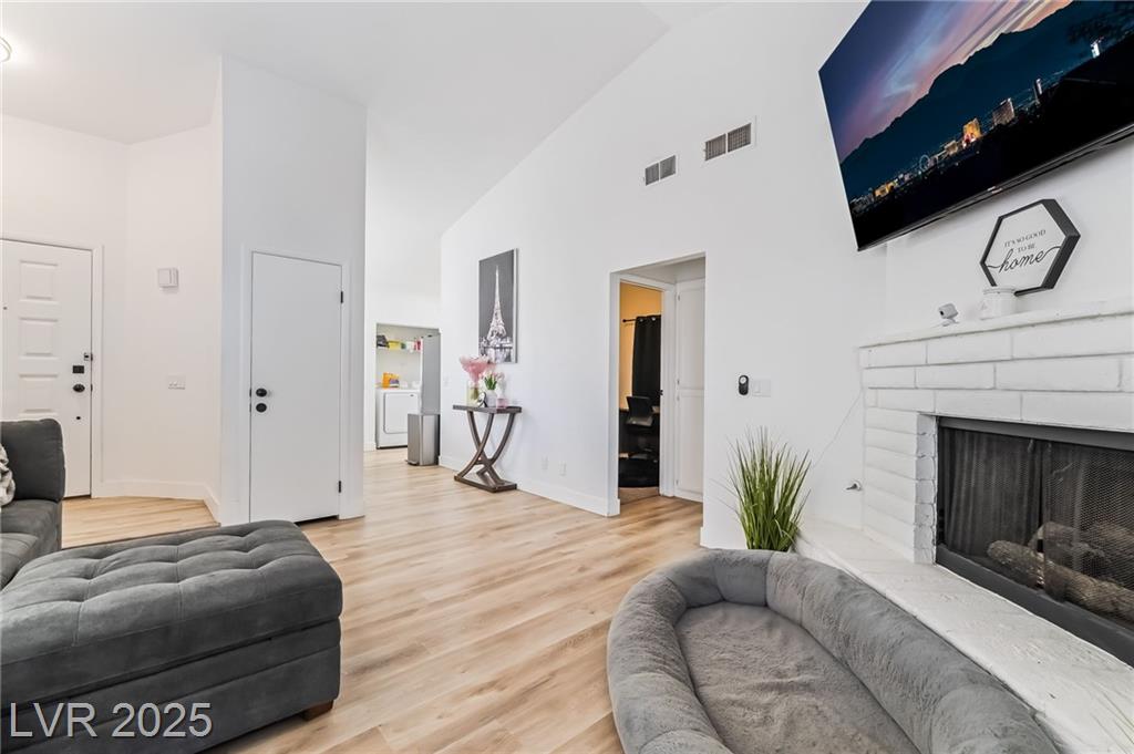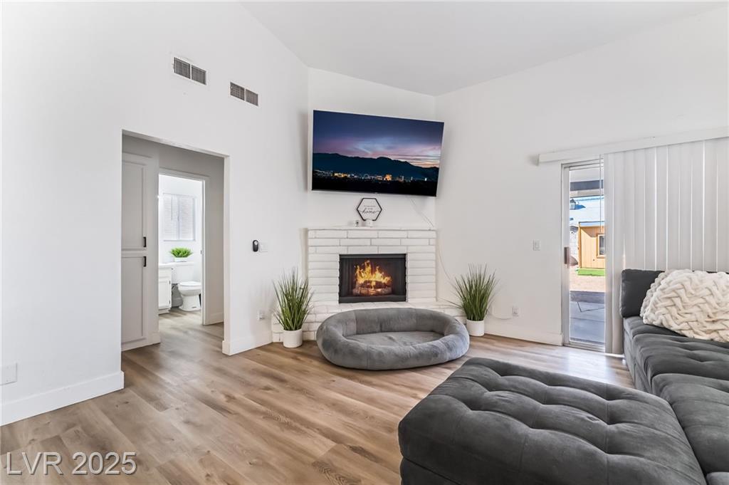 Step into this beautifully renovated 2-bedroom, 2-bath in the heart of Henderson single-family home Featuring gorgeous hardwood floors throughout the living room and kitchen, The inviting living area includes a cozy fireplace—ideal for relaxing evenings. Enjoy cooking in the stunning modern kitchen with sleek granite countertops, stainless steel appliances, and contemporary finishes. Both bedrooms are spacious and offer soft, plush carpeting for added comfort. The fully updated bathrooms showcase high-end fixtures and elegant tile work. With a 2-car garage, there’s plenty of space for parking and storage. Stylish modern furniture completes the look, making this move-in-ready home.