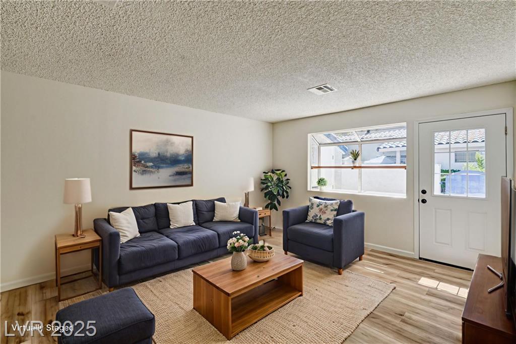 Welcome home to this charming and newly refreshed 2-bed, 2-bath single-story townhouse in the heart of Las Vegas! This home features bright, open living areas, a functional kitchen with ample cabinet space, spacious bedrooms with convenient full baths, fresh paint, and new LVP flooring. Neutral finishes create a clean, move-in-ready backdrop. Enjoy low-maintenance living with HOA-maintained landscaping and exterior care, plus easy parking. Located near shopping, dining, schools, and major roadways for quick valley-wide access. Comfort, convenience, and value all in one! Newer AC system and water heater.