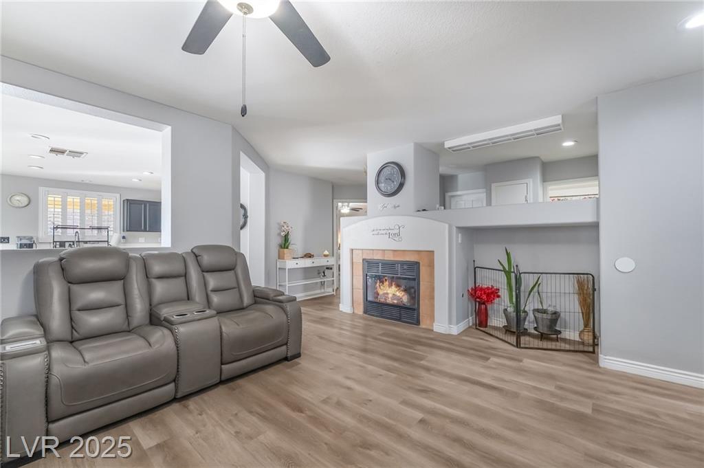 Welcome to this charming single-story home in the desirable Timber Creek community near Durango & Hacienda. Offering 3 bedrooms, 2 bathrooms, and 1,264 sq. ft. of living space on a 4,792 sq. ft. lot, this property has been beautifully updated within the last five years. Enjoy brand-new sinks, countertops, laminate flooring, elegant wood plantation shutters throughout and new paint inside and out. This home features a spacious two-car garage, full-length covered patio, and a large fully fenced backyard—perfect for entertaining, pets, or play. With its modern updates and inviting layout, this move-in ready home is the perfect starter or investment opportunity.