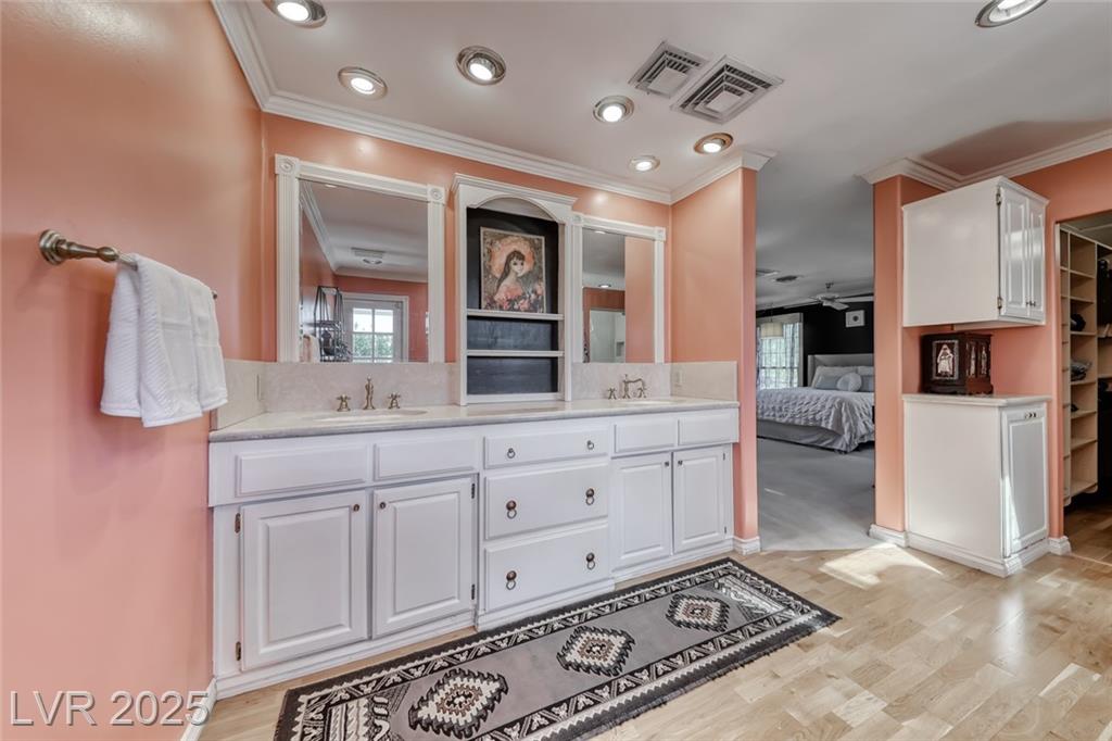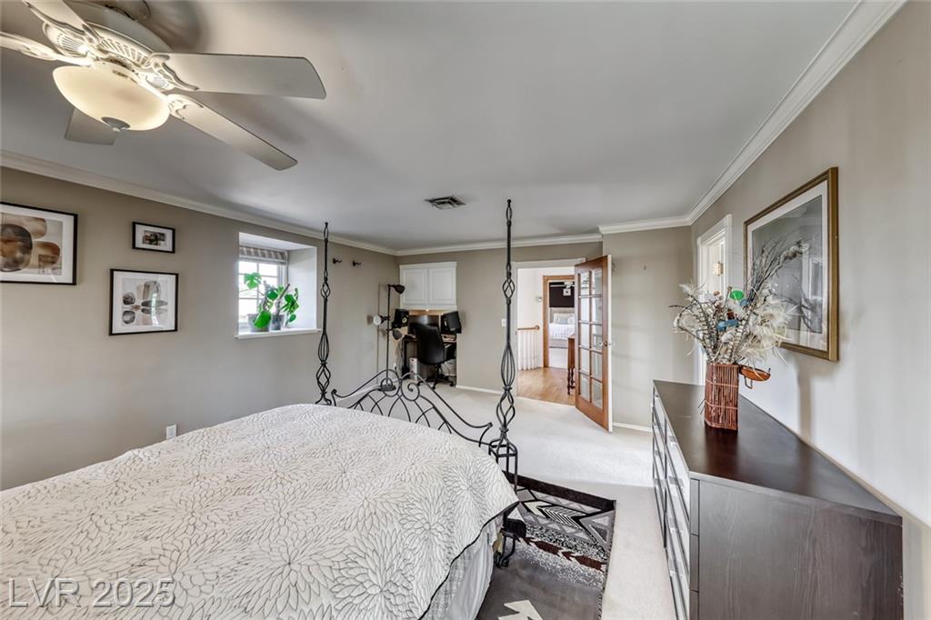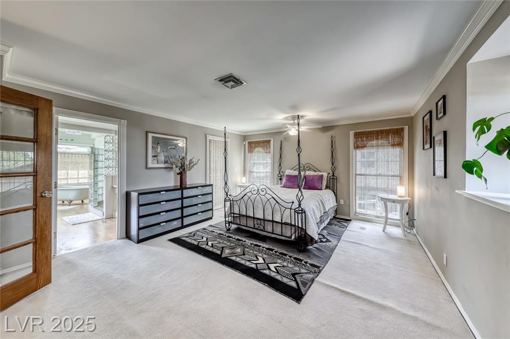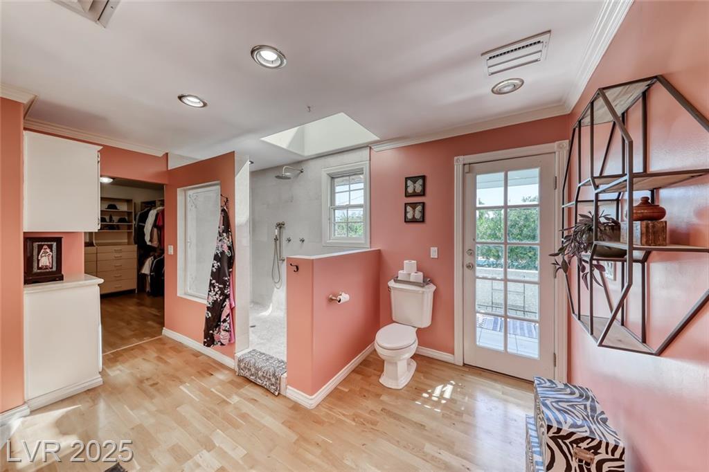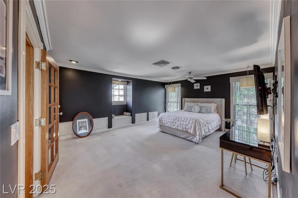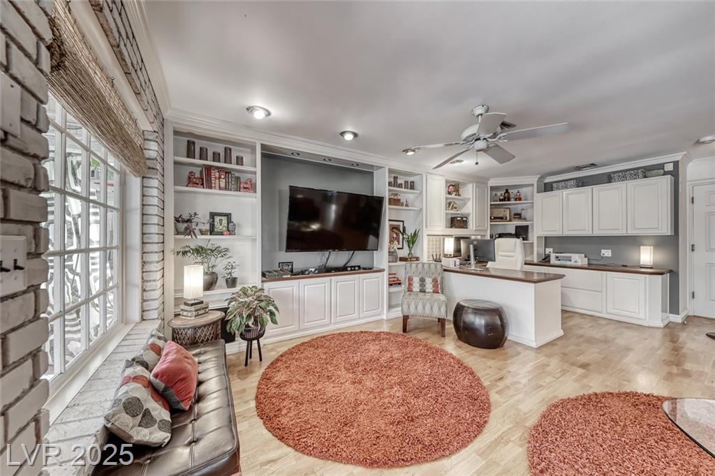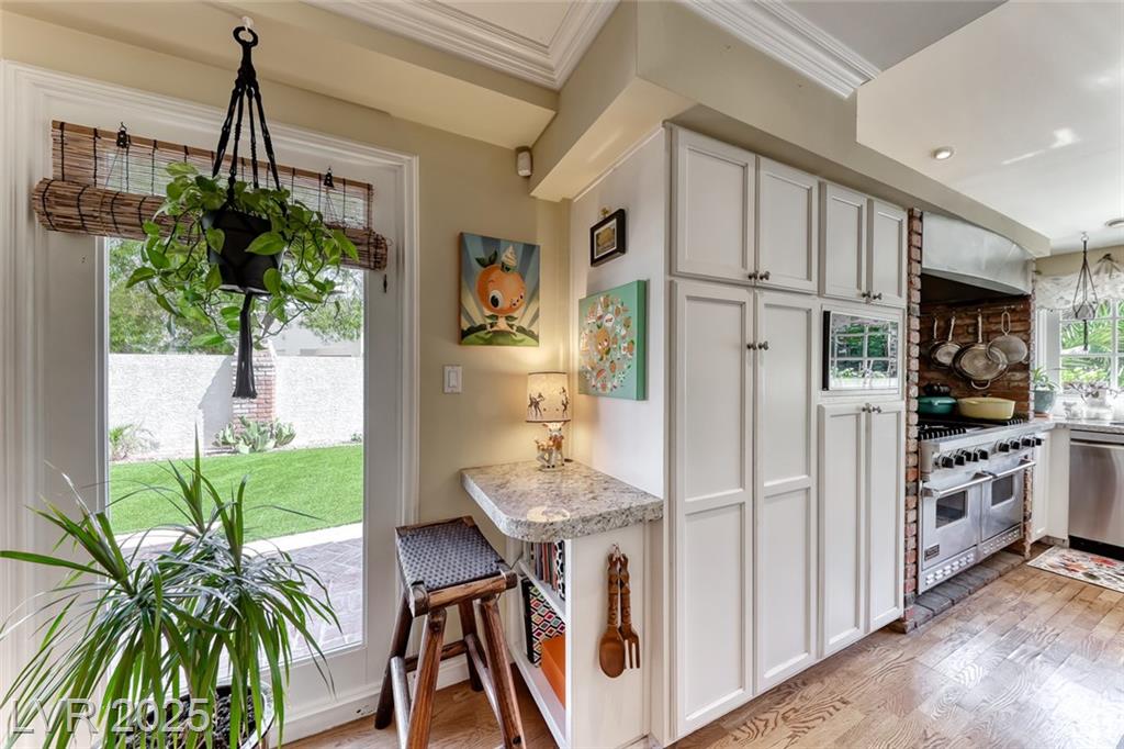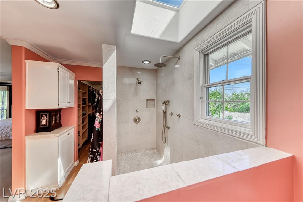 Vintage Cape Cod charm meets Las Vegas living! This 2,679 sq. ft. home blends timeless character with modern comfort. Two spacious primary suites feature spa-like bathrooms and a private balcony—perfect for morning coffee or evening sunsets. The chef’s kitchen boasts a commercial-grade stove/oven and large brick island with butcher block counter, ideal for culinary adventures. The huge family room invites gatherings with its cozy wood-burning fireplace, built-in bookcases, convenient desk, and nearby half bath. Step outside to your own private resort with a sparkling pool, an expansive covered patio for entertaining, and a 10x14 tough shed transformed into a tiki bar for year-round fun. There is an outside area perfect for furry friends at one end, and on the opposite end of the home an area for rv parking and toys. There are roof mounted solar electric panels for energy efficiency! A rare find offering personality, versatility, and endless possibilities in the heart of Las Vegas!