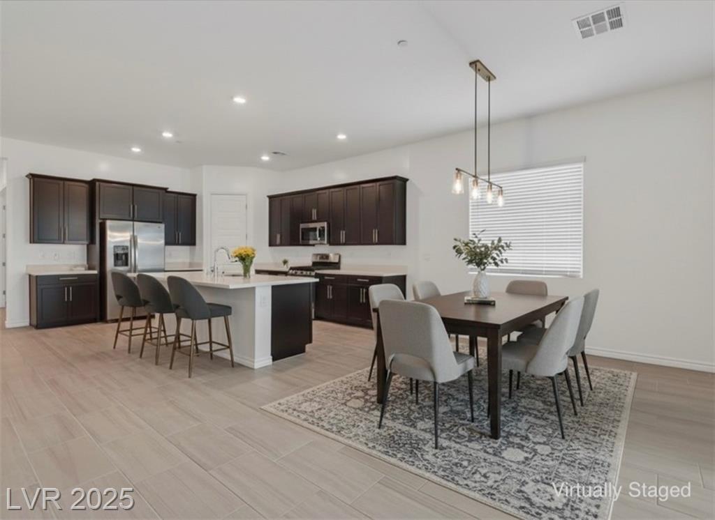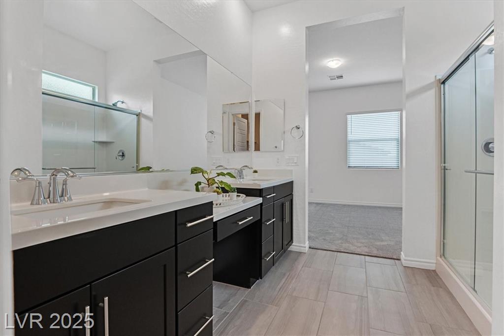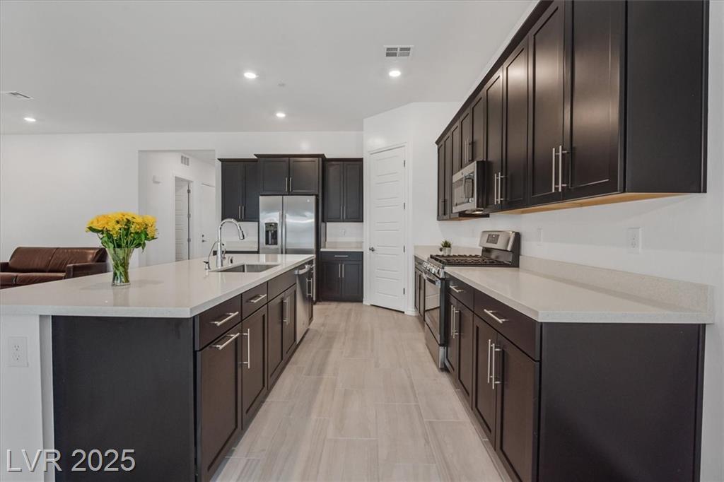 Welcome to this beautiful 3-bedroom, 2-bath single-story home in the vibrant 55+ community of Heritage, located within the highly desirable Cadence master plan in Henderson, NV. This thoughtfully designed floorplan features a spacious, open-concept living room, dining area, and kitchen with soaring ceilings. The kitchen offers stunning quartz countertops, a large breakfast island, and a generous walk-in pantry. Thelaundry room includes built-in cabinetry and connects conveniently to the primary suite's expansive walk-in closet with additional access through the main hallway. Spacious backyard features covered patio,synthetic grass, and pavers with seperate entrance to and from Primary Bedroom. Enjoy all that Heritage has to offer, including indoor/outdoor pools, pickleball courts, a clubhouse, fitness center, café, social clubs, and a full calendar of events. Just minutes from Lake Las Vegas, Lake Mead National Recreation Area, Downtown Henderson, shopping, dining, and more!