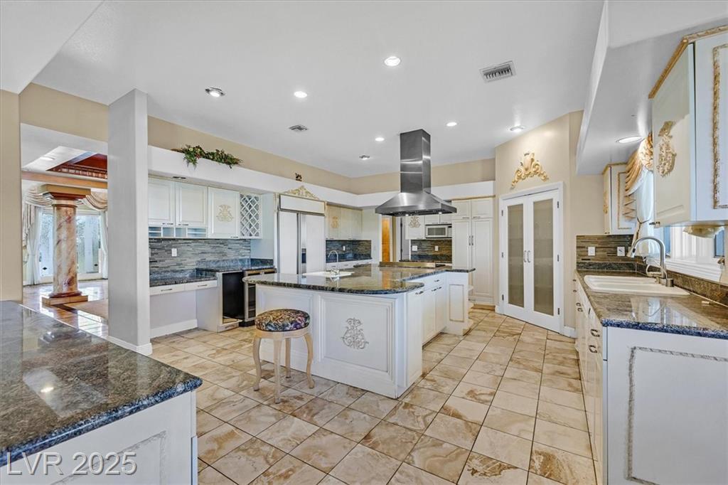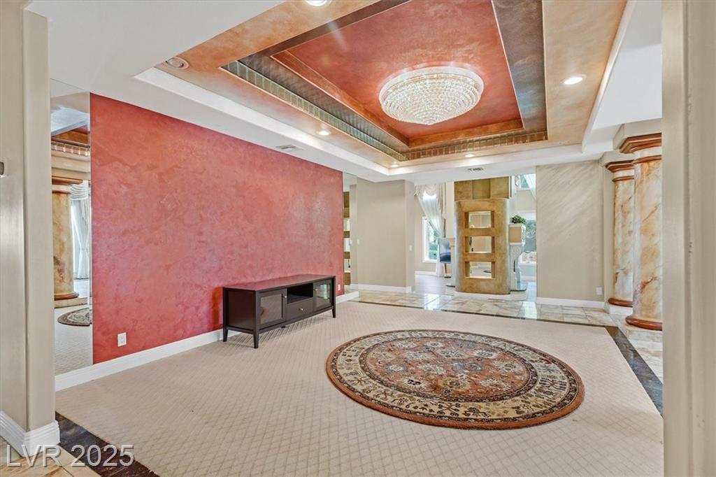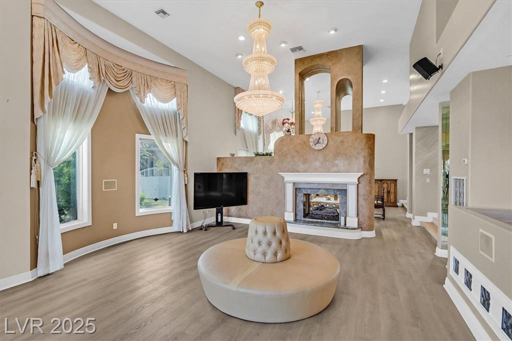 Dreams come true Live like royalty Experience luxury beyond compare in this magnificent custom-built castle-style multi-million $ home with stunning Strip and Mountain View’s. Sprawling over 5600 sq ft on a half-acre lot with $200K upgrades and landscaping, this 7-bedroom masterpiece features monumental statue, grand columns, majestic chandeliers, and hand-painted murals. Enjoy new high-end luxury vinyl and marble floors. Top-of-the-line appliances, brand new refrigerator,solar panels for energy efficiency, a vast yard with a sparkling pool and built-in kitchen, gated entrance ensures tranquility and privacy, quiet and convenient location within 10 minutes from the Strip and walking distance to top rated private school the prestigious Date school and restaurants. Indulge in the epitome of lavish living in this extraordinary residence. Walking distance to prestigious Las Vegas day school. Owner invested hundreds of thousands in premium upgrades and renovations New luxury vinyl flooring