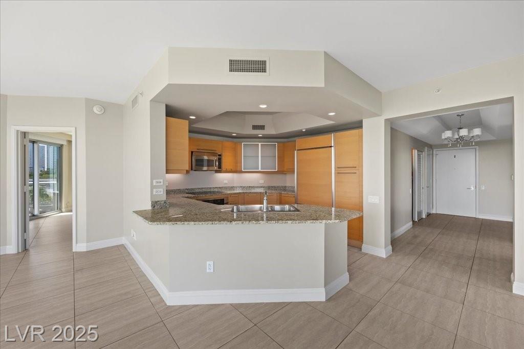 TURNBERRY TOWERS - RESORT STYLE LUXURY LIVING Discover one of the most sought after luxury high rise communities in Vegas. This desirable two bedroom plus den residence offers one of Turnberry's most sought after floor plans, featuring floor to ceiling windows that frame stunning views. Freshly painted and move in ready, this unit combines modern elegance with resort style amenities. Residents enjoy access to sparkling pools with waterfalls, state of the art fitness centers, tennis courts, pet parks, BBQ areas, concierge service, valet, and a full calendar of community events. Experience elevated living at Turnberry Towers this home is sure to impress
