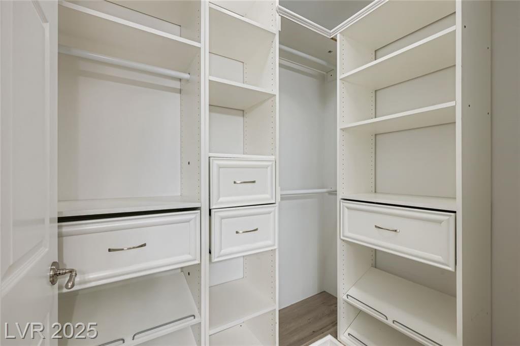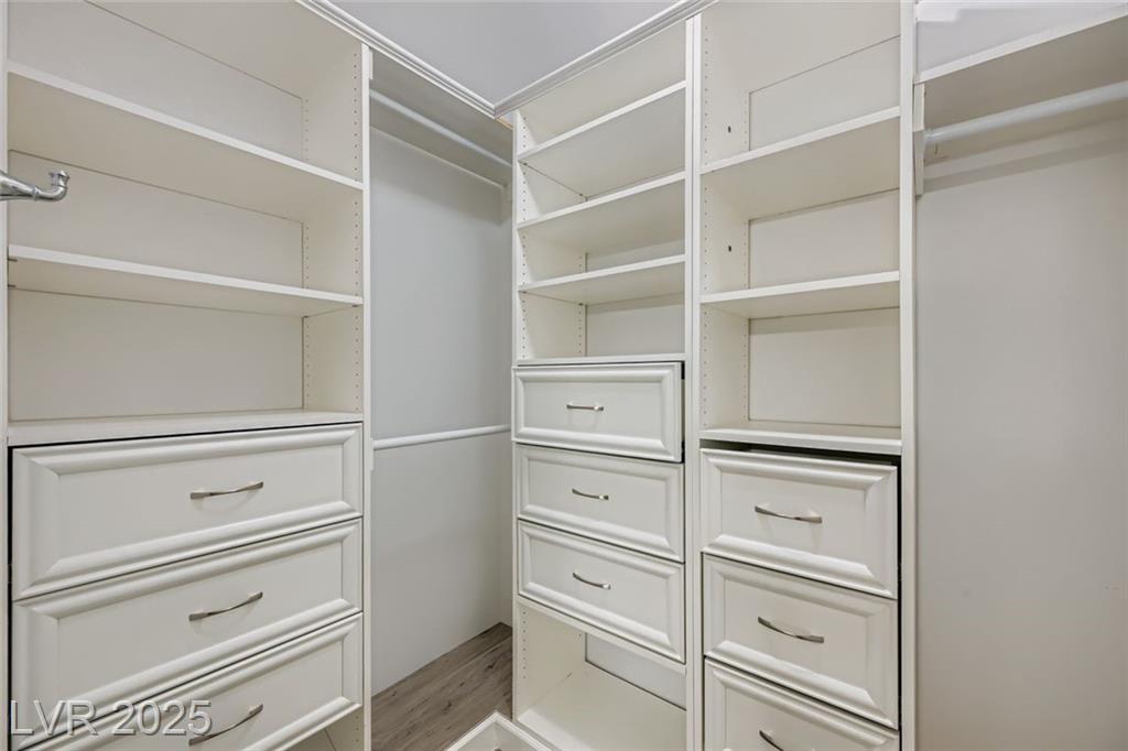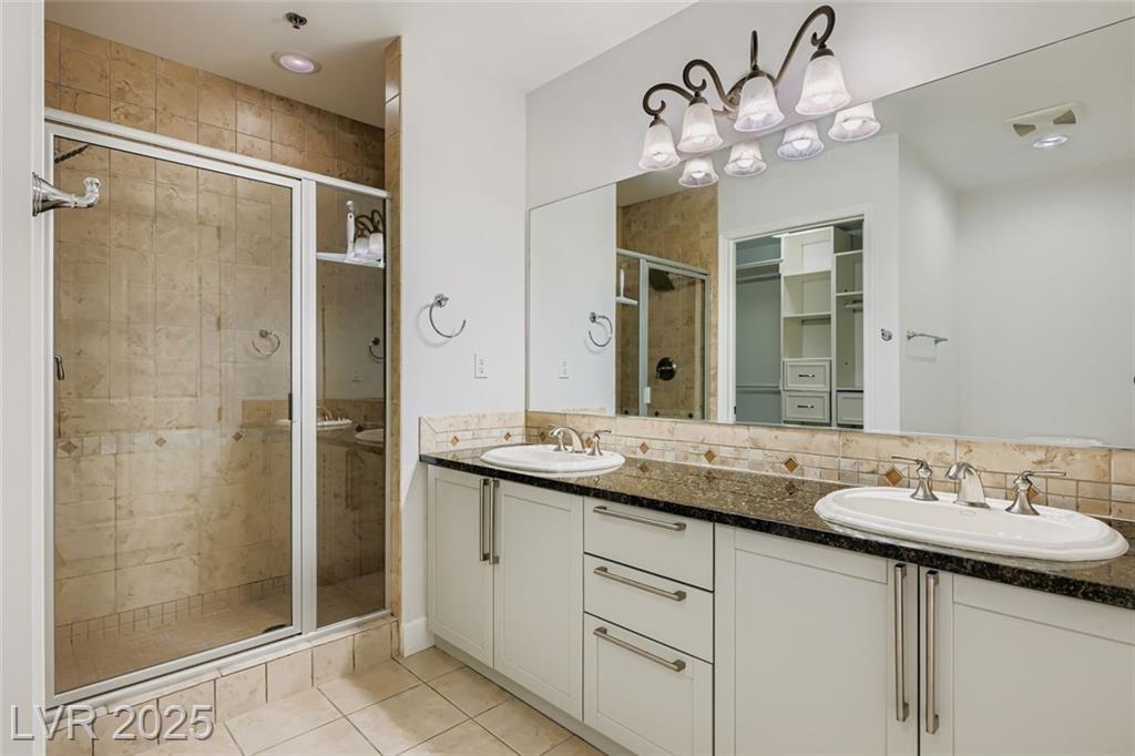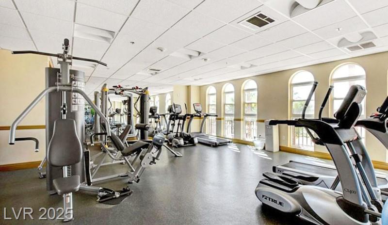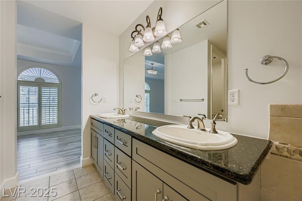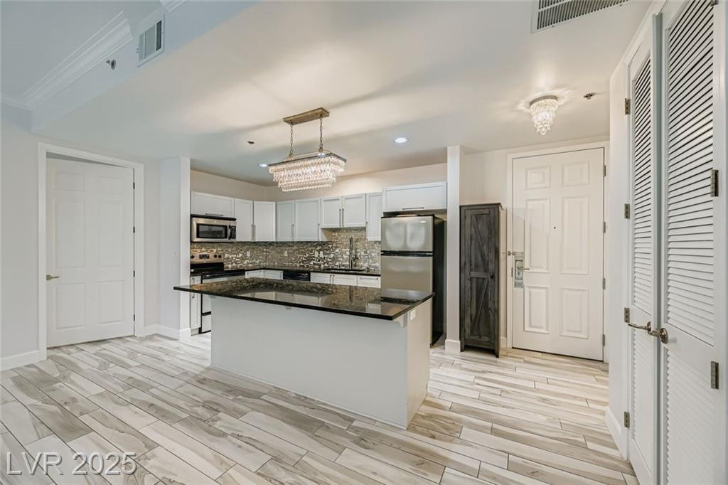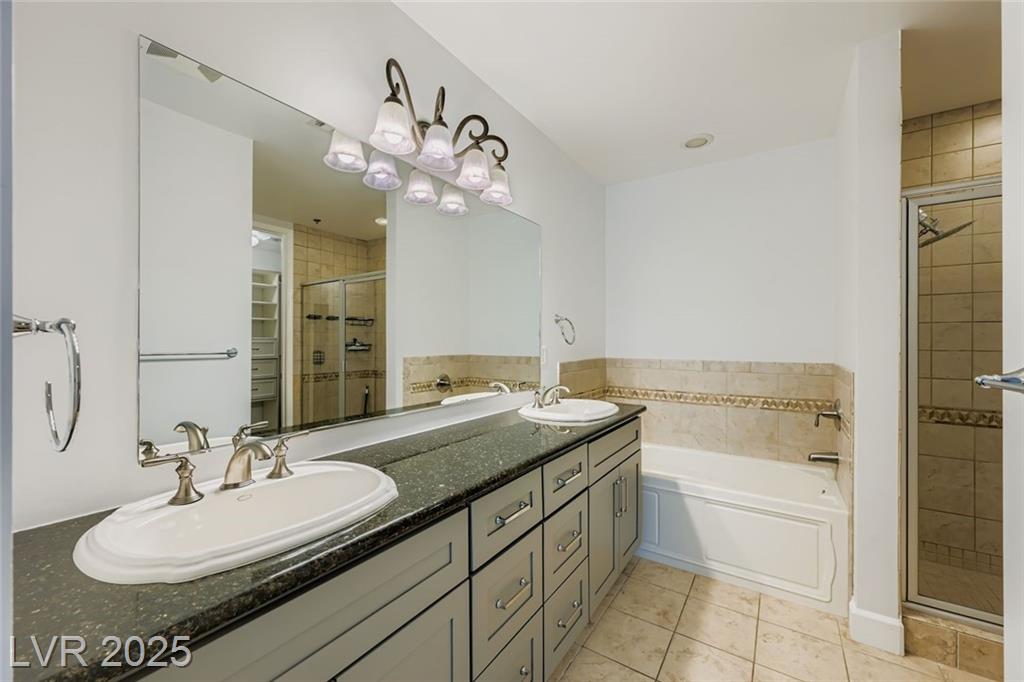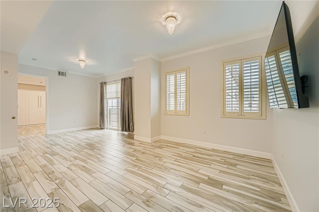 Fantastic move in ready 2 bedroom condo - 1196 SF @ Boca Raton conveniently located on the south end of the Las Vegas Strip. Enjoy updated kitchen w/ island, stainless steel appliances & modern wood-look porcelain tiles throughout. 2 full primary bedrooms w/ walk-in customized closets. 2 spacious primary bathrooms. One of the primary bedrooms has built in king size Wilding Murphy bed allowing for office by day and bedroom at night. LED light fixtures & Plantation shutters throughout. HVAC installed in 2022 w/ air purifying system. Wash/dryer combo in closet. 24/7 guard gated entry, fitness center, pool with cabanas, 2 spas, steam & massage room, BBQ areas, dog park, computer/theater rooms & conceirge services. Near I-15 & 215 freeways, shopping less than 4 minutes away and close to airport. 3 mounted 50" plus Televisions, located in the living room & both primary bedrooms, included in the sale of the property. Condo was being rented at $1800 monthly - great investment opportunity.