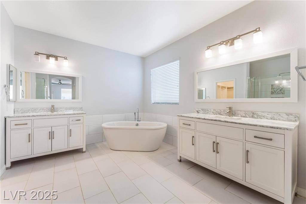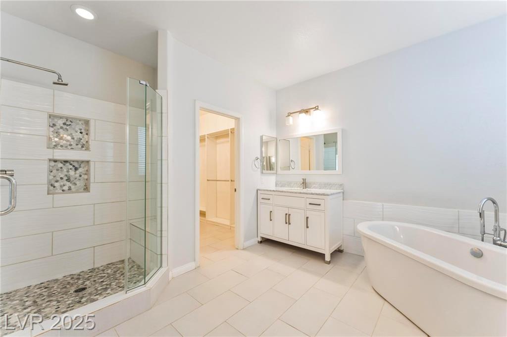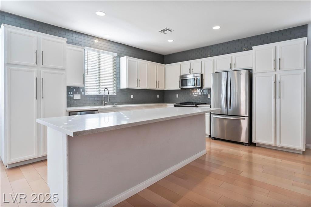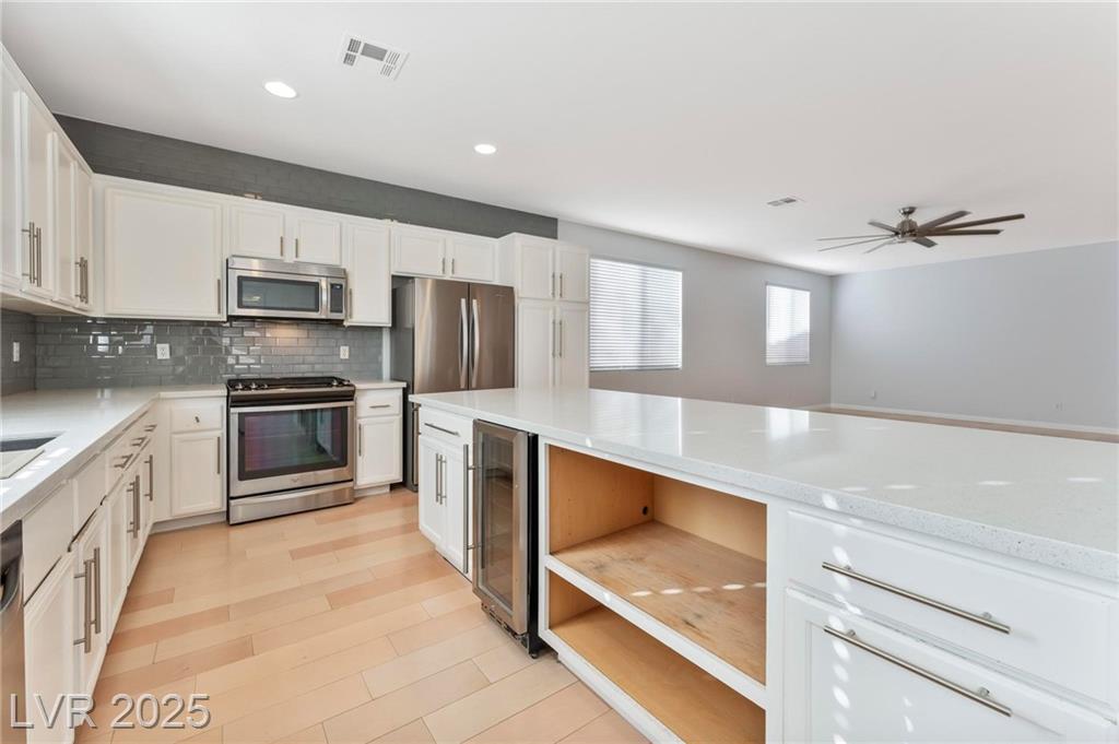 Welcome to the highly coveted Green Valley Ranch! This single-story gem, boasting over 2850 SF, is situated in an ideal location with easy access to The District's shopping, dining, movies, and gaming. Green Valley Ranch offers acres of great schools, parks, paths, and playgrounds, making it a perfect choice for those seeking a vibrant and active lifestyle. Recently renovated, with four bedrooms, three bathrooms, and a three-car garage, this home offers both comfort and convenience. The large primary bedroom boasts a sizable walk-in closet with custom built-ins. The wide open kitchen features stainless steel appliances and glass backsplash. Additional features include ceiling fans, window coverings, and garage storage cabinets.