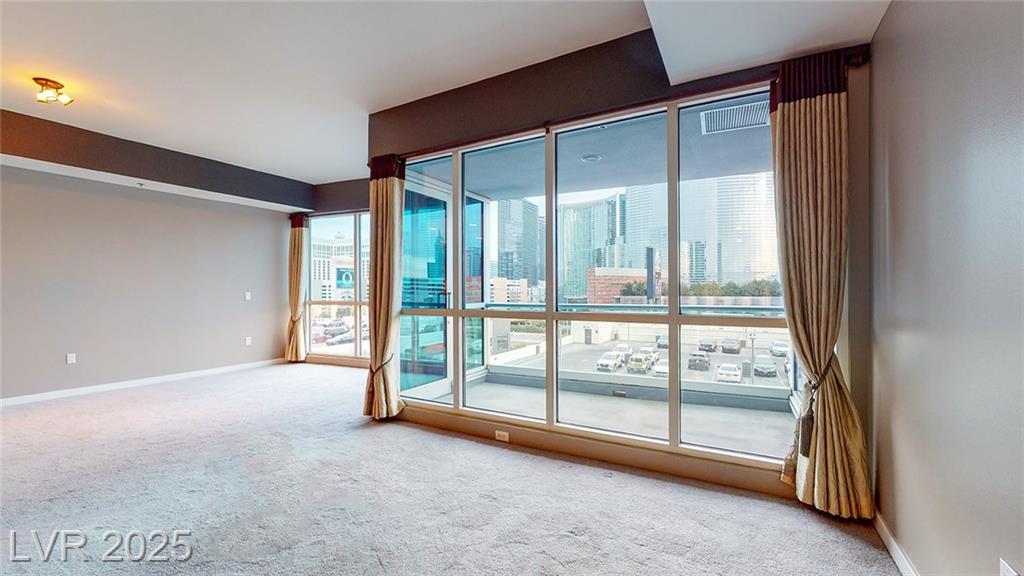 Enjoy breathtaking Strip views from this highly sought-after floor plan featuring two spacious en-suite bedrooms, each with its own full bath. The primary suite offers two walk-in closets, while the expansive great room showcases the city lights through floor-to-ceiling windows. The kitchen includes stainless steel appliances, a large island with breakfast bar, and a separate dining area. Offered under $650,000, this residence is priced to reflect its original finishes, making it one of the best values in Panorama Towers. Amenities include concierge service, complimentary limo transportation, fitness center, racquetball, theater and recreation room, BBQ area, pet park, conference room, and 24-hour security. All just minutes from the Strip and one mile from Allegiant Stadium.