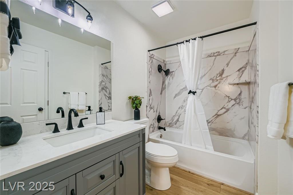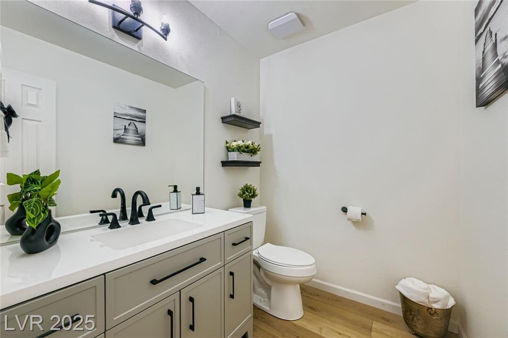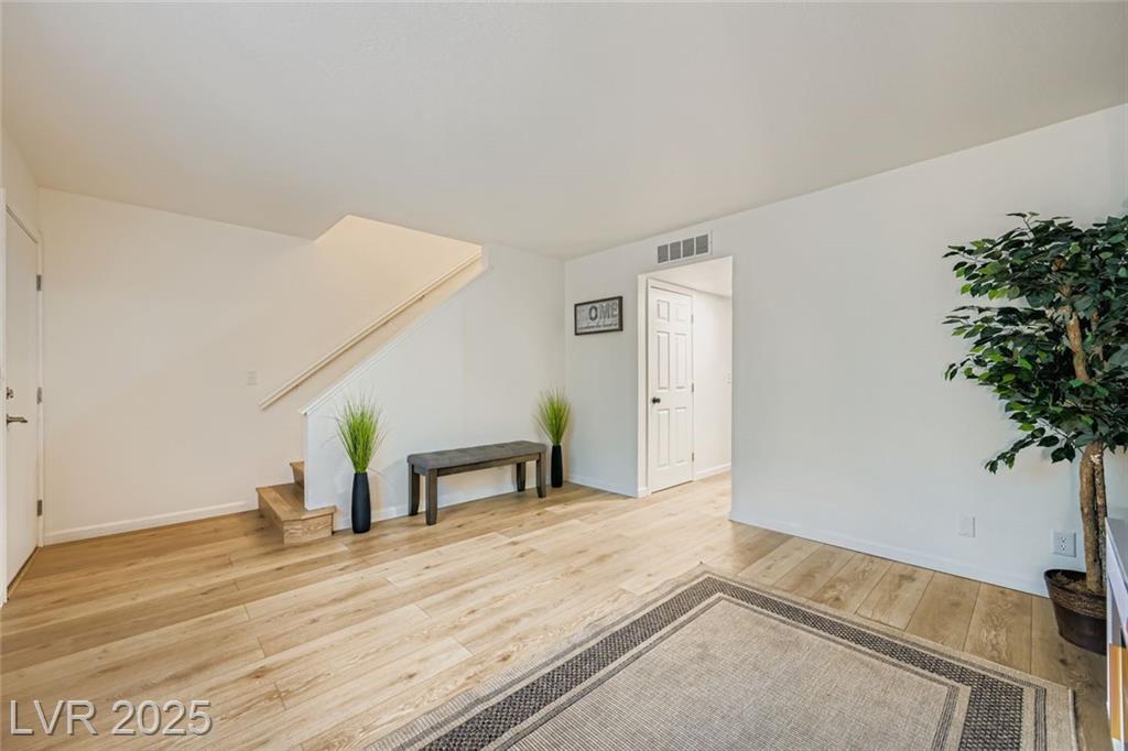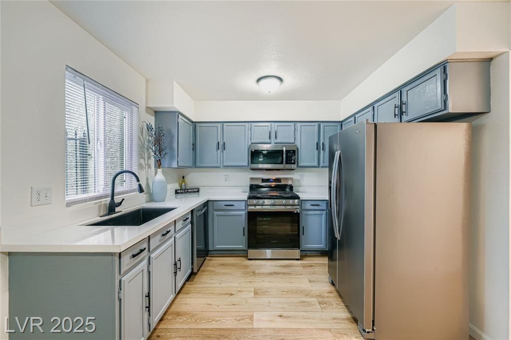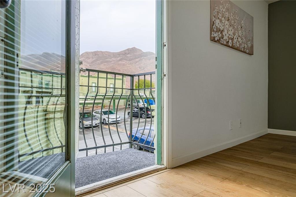 Don't miss this turn key condition townhouse! It was just FULLY renovated with an attention to detail rarely seen at this price point. New luxury laminate flooring throughout, fresh paint, new stainless steel appliances, new sink & quartz countertops, new lighting & hardware, new electric fireplace, full bathroom remodels and more!!! This townhome has balconies with mountain views off of BOTH bedrooms upstairs as well as a gated courtyard off the kitchen with laundry room. Minutes from Nellis AFB and walking distance to Sunrise Mountain, this community has a pool, spa, basketball court and playground. You will be pleasantly surprised by how nice this is!!!