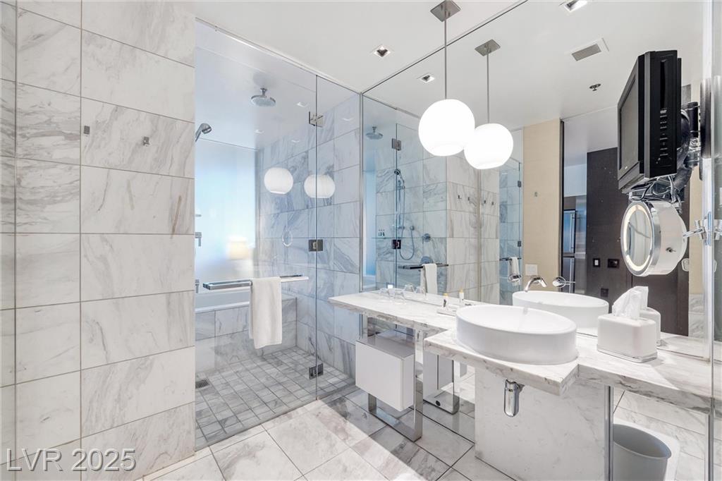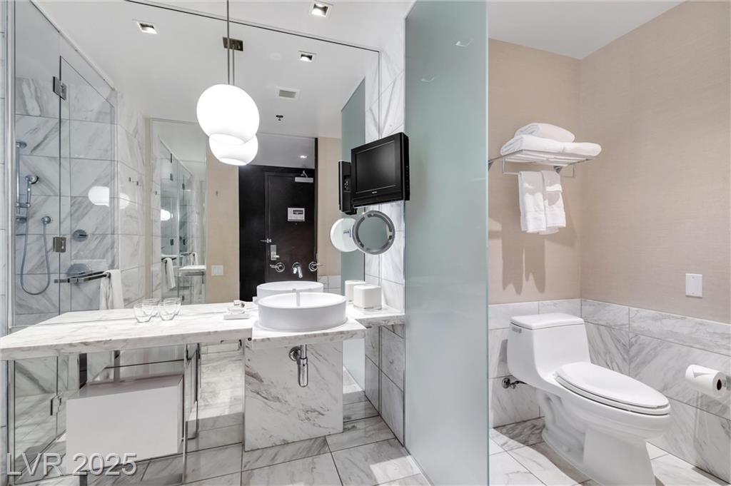 34th floor Strip View Studio, located in AAA Four Diamond Palms Place Resort & Spa. 1.2 miles from the Strip, centrally located with easy access to dining, shopping and entertainment. World class amenities including spa, fitness center, & onsite dining. Fully furnished with king bed, sleeper sofa, 2 TV's rainfall shower, jetted tub, and kitchen w stainless appliances.