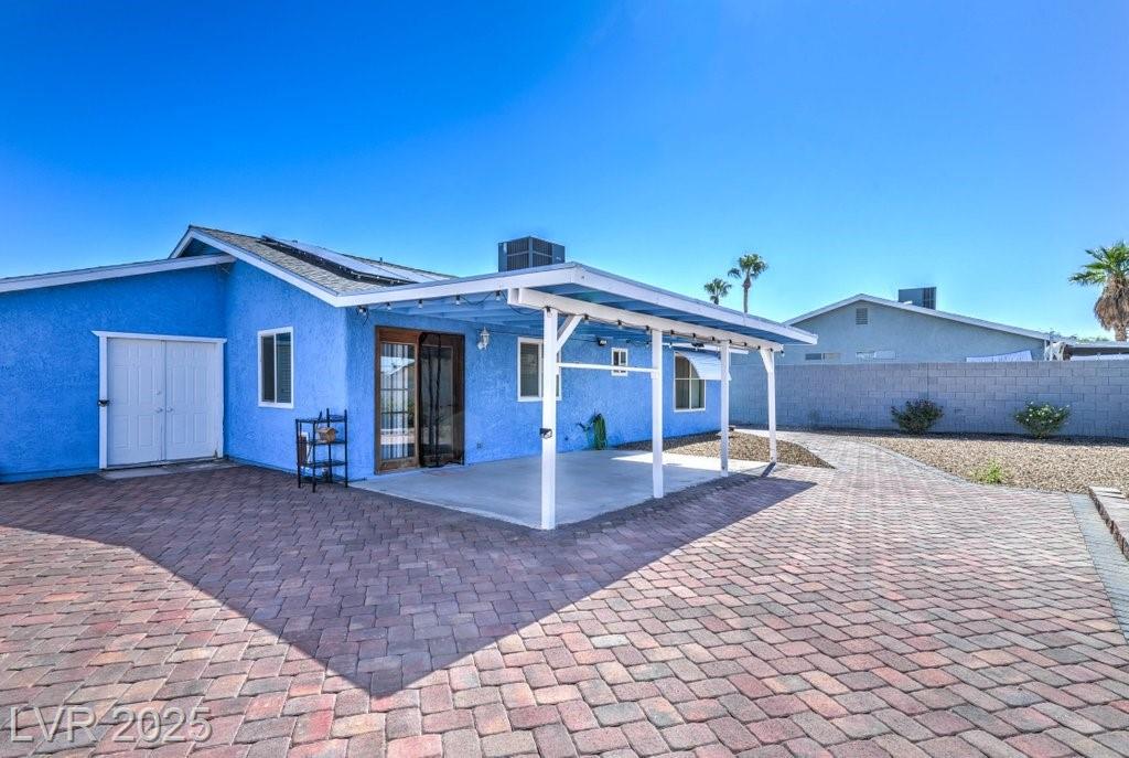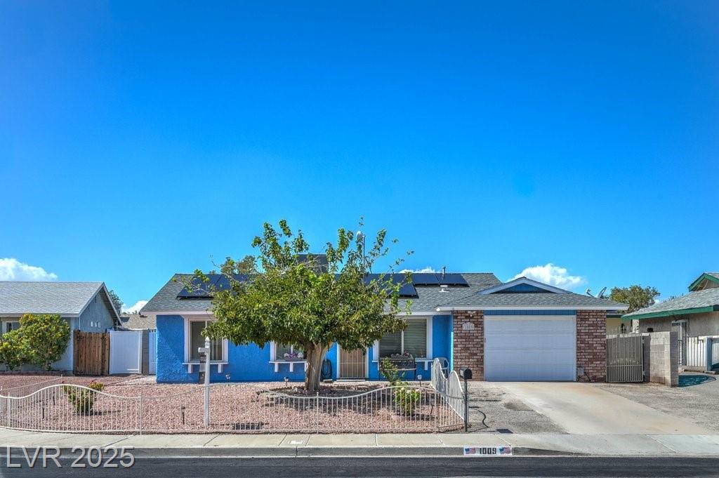 REDUCED PRICE, UPDATED PHOTOS! This cozy 3-bedroom, 2-bathroom home with an attached garage is nestled in a quiet cul-de-sac with no HOA fees! It’s got some awesome updates, like a brand-new roof from 2022 with a 50-year warranty, a new HVAC system, and a 50-gallon gas water heater—also all from 2022. Plus, it comes with a washer, dryer, and refrigerator! The garage even has a split A/C system to keep things cool. The backyard is great for hanging out, featuring block fencing, low-maintenance desert landscaping, and a covered patio for those outdoor gatherings. You’ll love the nice curb appeal from the wrought iron fencing out front! Inside, there are energy-efficient dual-pane windows and window coverings. And let’s not forget the solar panels installed in 2022—they're a great way to save on energy costs (you’ll just need to take over the PPA lease balance). This place is worth a look to envision the details to make it your own.