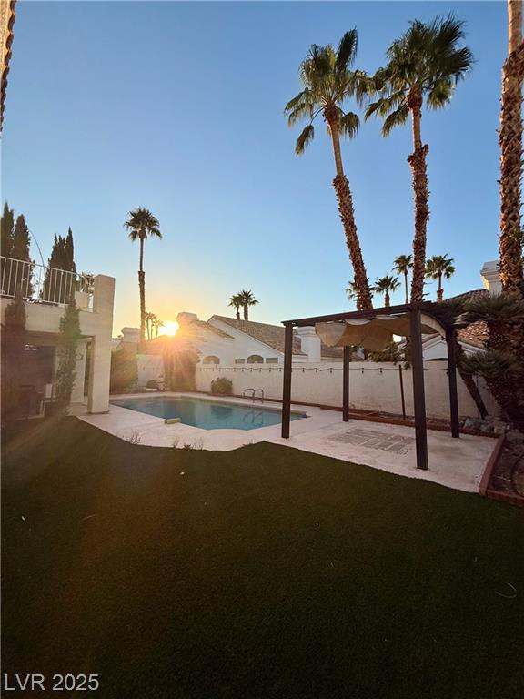 Beautiful 4 bedroom/3 bath pool home in Desert Shores. Minutes away from 4 lakes, where you can find fishing, paddle boats, kayaks & a sandy beach lagoon. Nearby are fabulous restaurants and many amenities. Open layout & vaulted ceilings offer towering space. Kitchen features granite countertops, an island cooktop with modern downdraft, and a garden window. Family Room opens to casual dining area. Formal Living Room features fireplace & abundant natural light shining into the adjacent Formal Dining Room. Downstairs Bedroom with Queen Murphy bed + Bathroom. Upstairs has 2 Guest Beds + Bath. Spacious Primary Suite with balcony, 2-way fireplace, barn-door, large soaking tub, separate shower, and walk-in custom closet. Backyard boasts a sparkling saltwater system pool. Large covered Patio and Gazebo with retractable shade – perfect for entertaining. Fridge, washer, and dryer included.