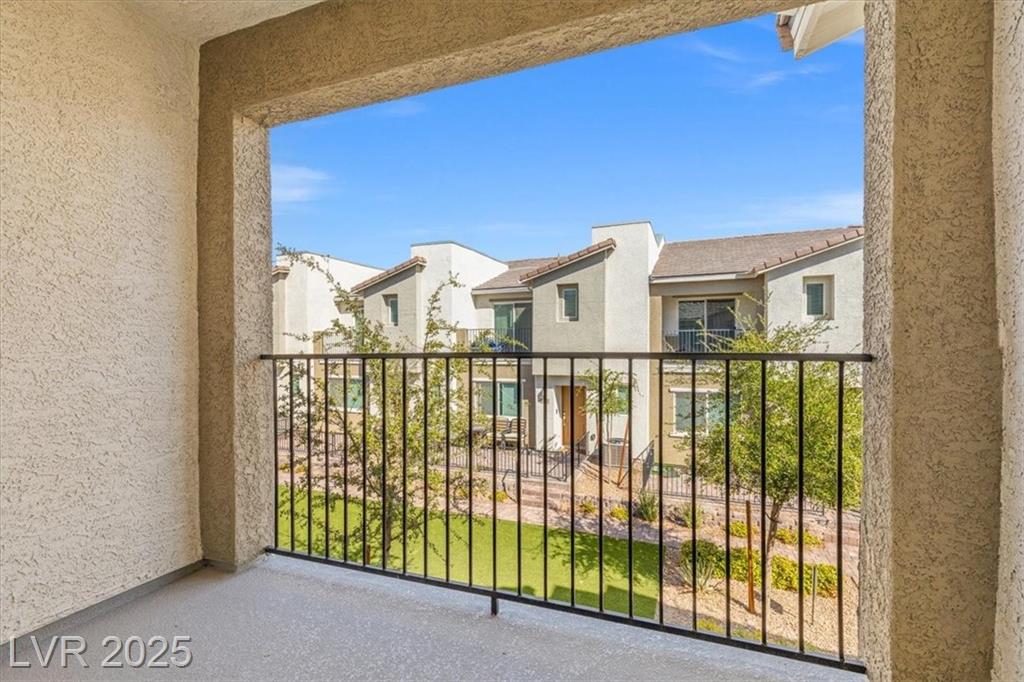 The Watercolors Townhouse within a gated community offers a pool, spa, BBQ area, and large parks. The residence has an open-concept design with 1,373 square feet of space, comprising of 3 bedrooms, 2 bathrooms, and a 2-car-attached garage with entry into the home. There is a separate living room, a private balcony above a patio, and a kitchen with modern cabinetry, granite countertops, a custom granite backsplash, and bar counter seating. The first floor features an oversized primary bedroom with an ensuite bathroom and walk-in closet. Two additional guest rooms provide extra living space. Appliances are included, along with window treatments. The property is located close to various restaurants, shopping centers, bike trails, parks, schools, and other amenities.