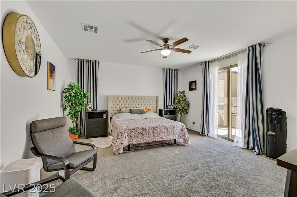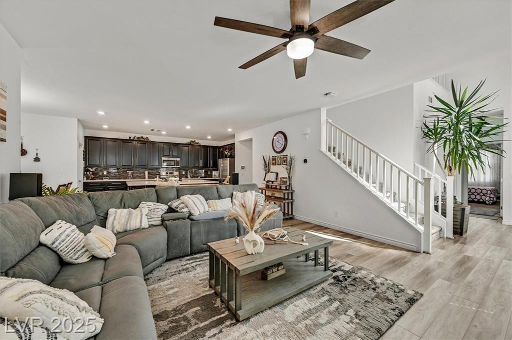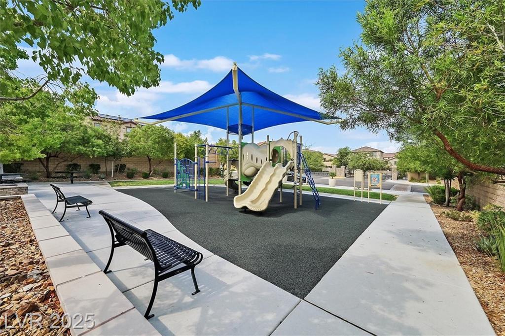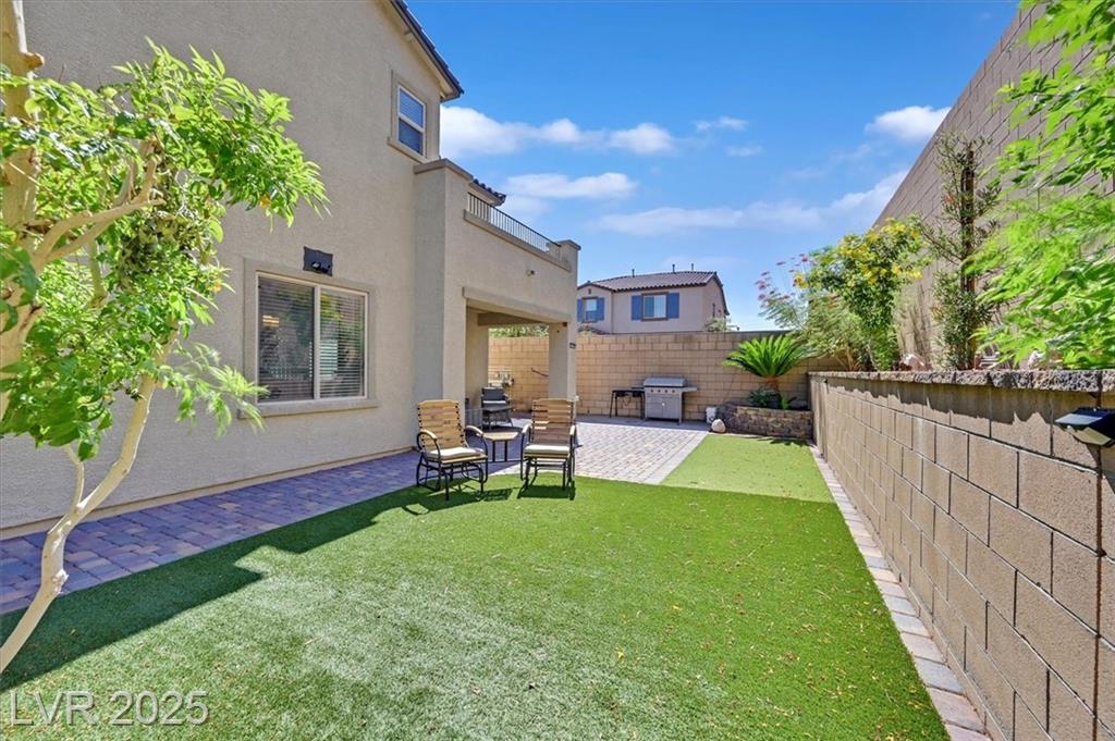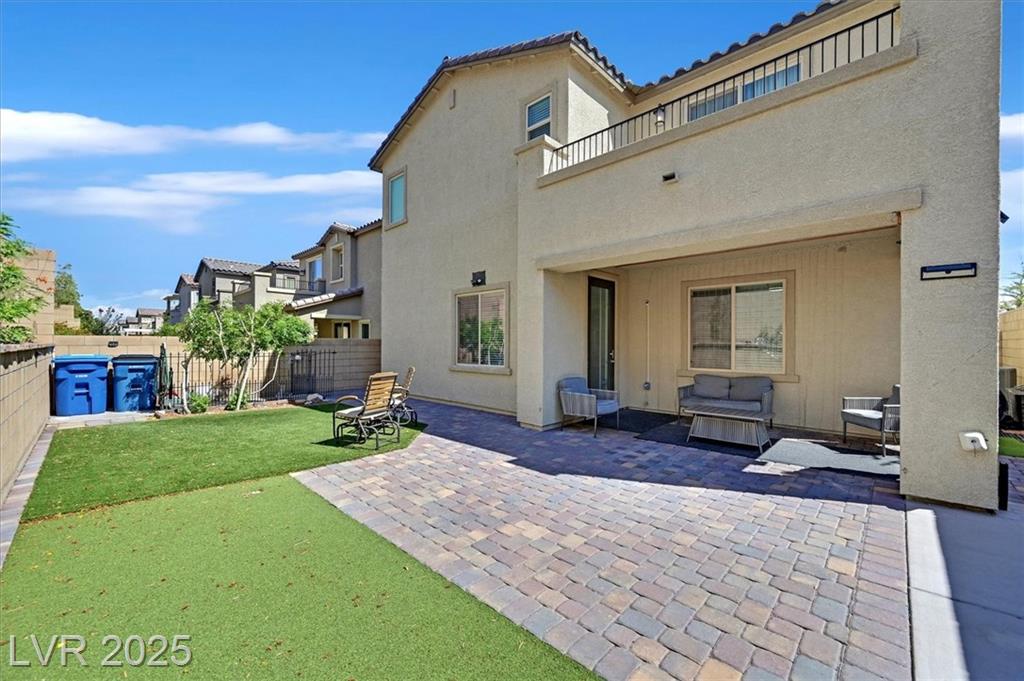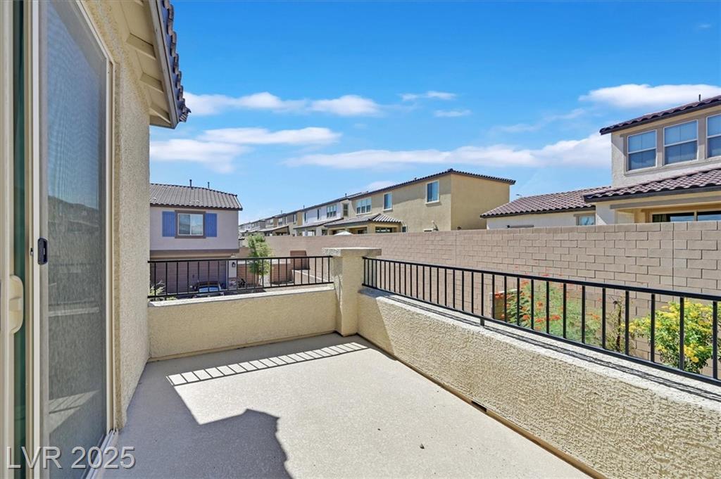 Pride of ownership! Look no further than this desirable corner lot home in gated community located in the heart of Skye Canyon! This home features 4 bedrooms and 3 bathrooms with 1 bedroom located on the first floor! Upon entry you're greeted with soaring ceilings and an abundance of natural light leading you to an open floor plan! The kitchen offers quartz countertops, tile backsplash, stainless appliances, large kitchen island and a walk-in pantry! Upstairs the primary en-suite is separate from the other bedrooms and boasts an expansive bathroom with walk-in shower, soaking tub, double vanities, walk-in closet plus a private balcony! Additionally you have the secondary bedrooms with shared bathroom, dedicated laundry room and large loft! The backyard features a covered patio, synthetic grass, dog-run with drain and mature landscaping! Smart home tech equipped, 2-car attached garage with EV charger! Community amenities include resort-style pool, fitness center, clubhouse and parks!