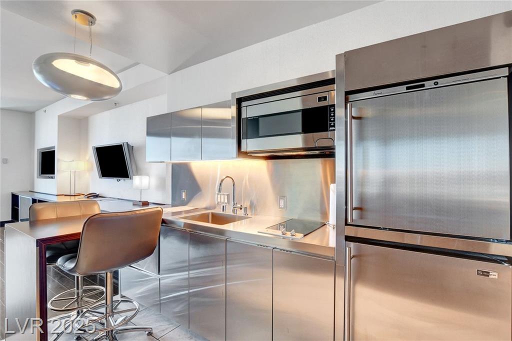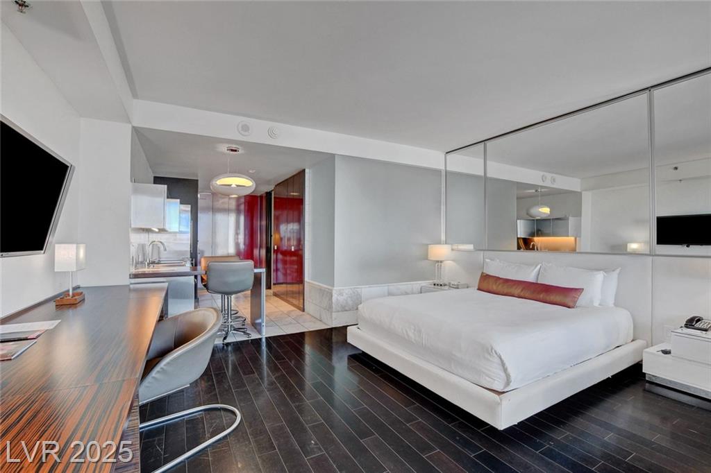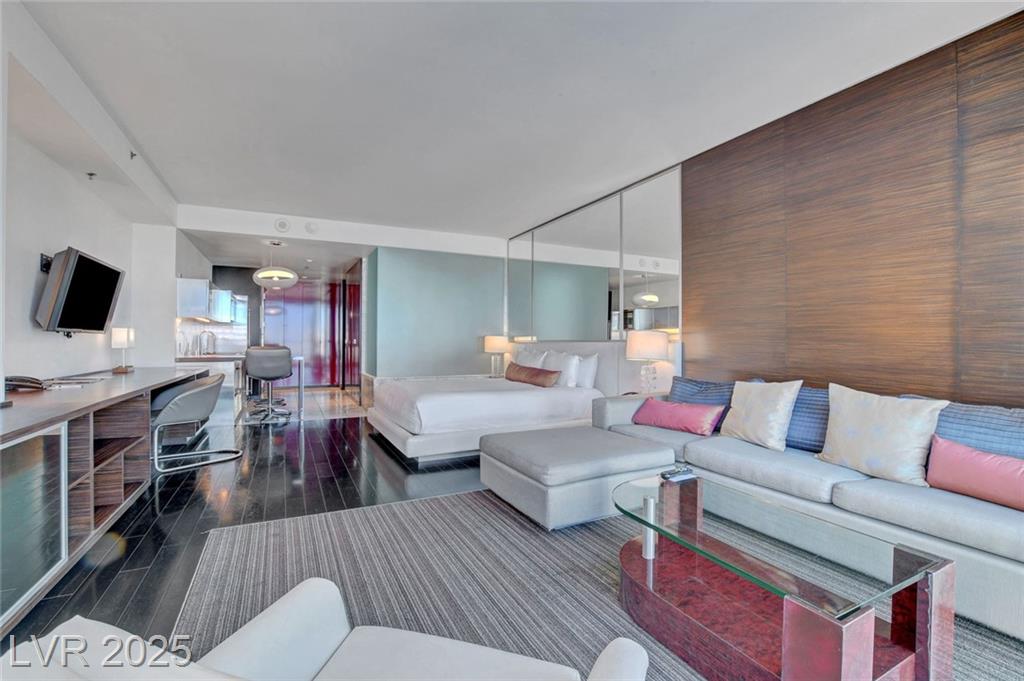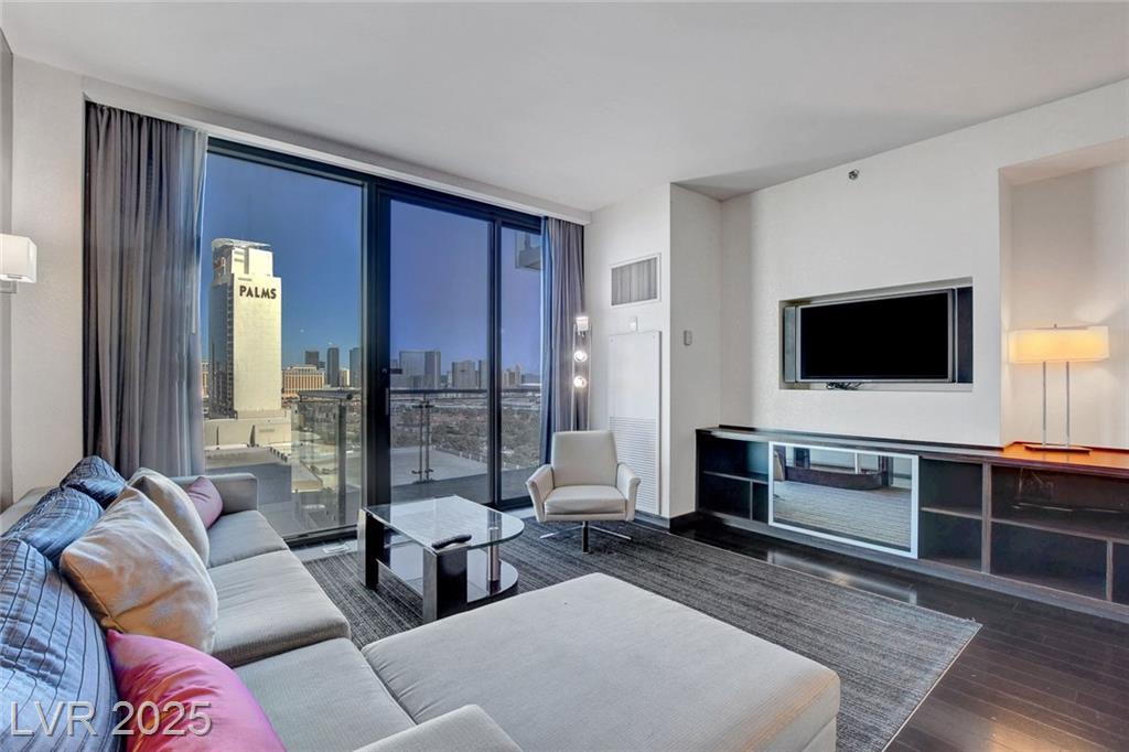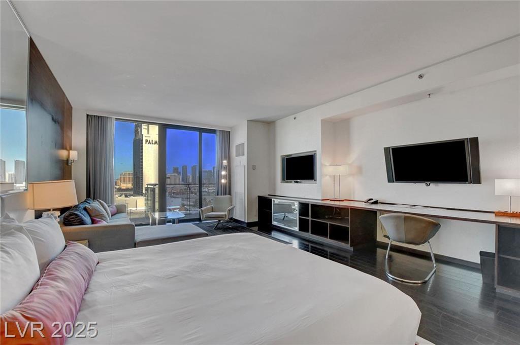 Fully furnished studio unit with BALCONY facing the Las Vegas Strip! Upscale modern decor with king bed, queen sofa sleeper, stainless steel appliances, two flat screen TVs, hardwood and marble floors, plus a large bathroom with rainfall shower and soaking tub. Enjoy resort-style living with world-class amenities including pool, spa, on-site dining, concierge, movie theater, and direct access to the Palms Casino. Fantastic ownership discounts and privileges! Ideal as a primary residence, second home, or short-term vacation rental. Palms Place is a condo hotel—owners may participate in the hotel rental program, rent through a third party, or keep it private. High-rise luxury just minutes from the Strip!