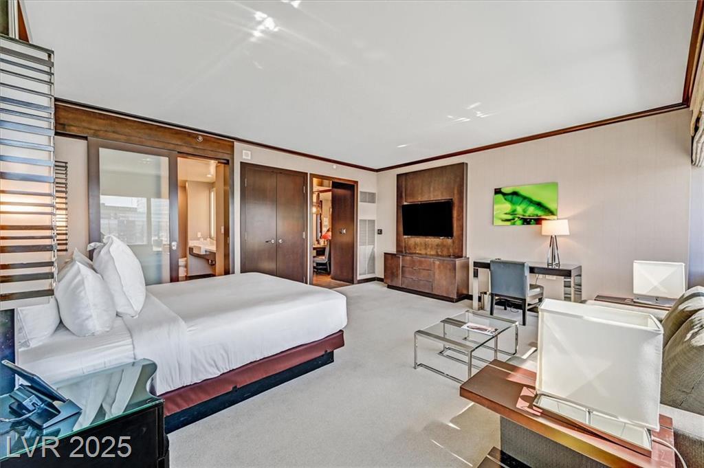 Stunning 22nd-floor residence at Vdara in CityCenter! Fully furnished, non-smoking & non-gaming condo-hotel with a striking curved glass façade. World-class amenities include a two-level spa & salon, resort-style pool with cabanas, 24-hour concierge, and direct access to ARIA, Bellagio, and The Shops at Crystals. Flexible ownership with Airbnb/third-party rental program available. HOA covers cable TV, internet, water, sewer, trash, and valet parking. Conveniently located near T-Mobile Arena, Allegiant Stadium, and the Sphere.