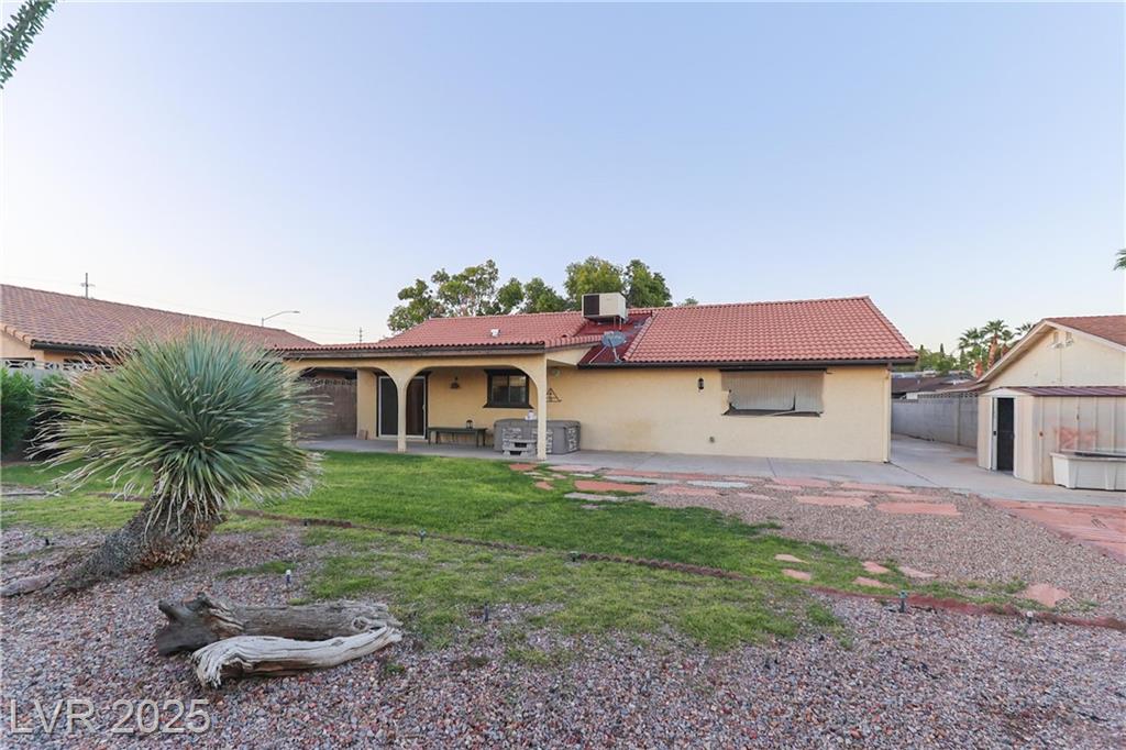 Custom home located in Historic Boulder City! Large lot with RV parking on the East side of the home. Large backyard with covered patio, mountain views, and a storage shed. The living room, dining room, and kitchen share an eating area with a vaulted ceiling. Mature landscape in a park-like setting. Not a drive-by
