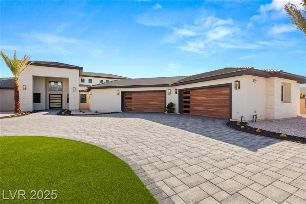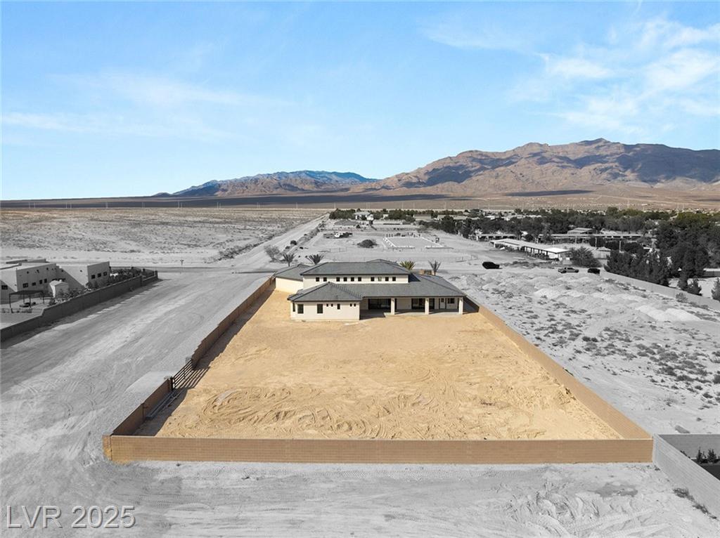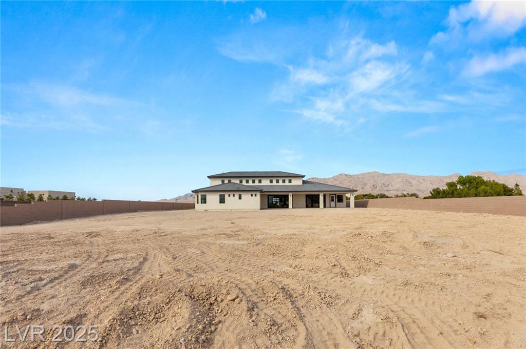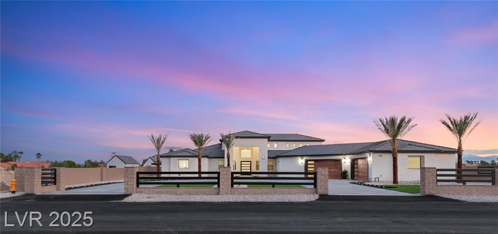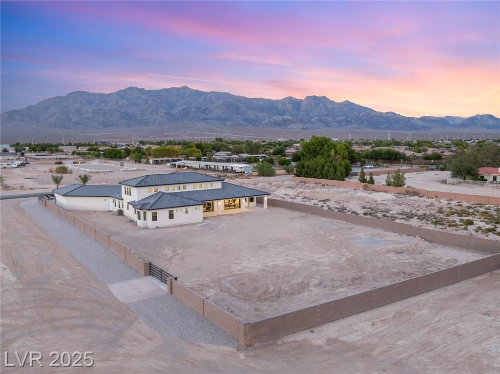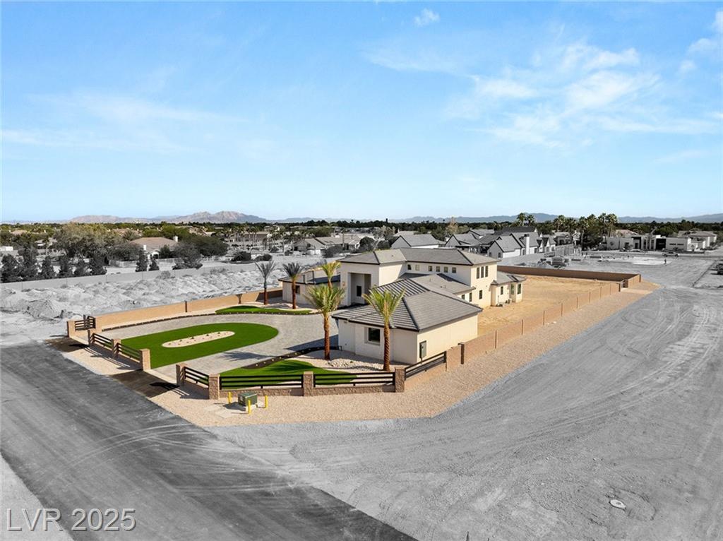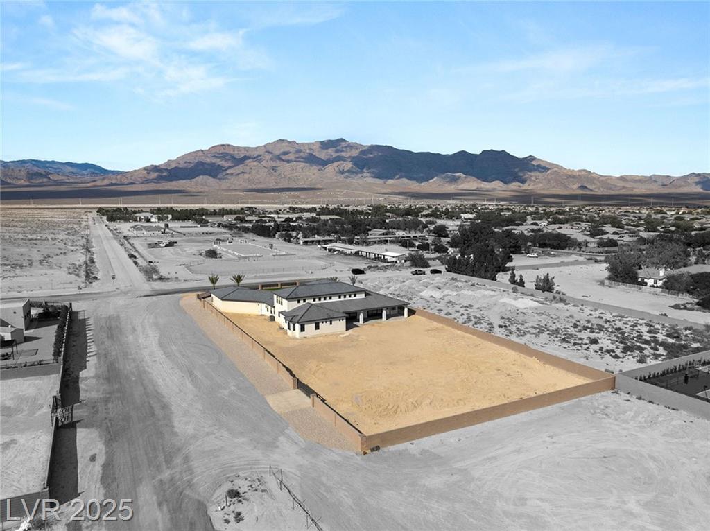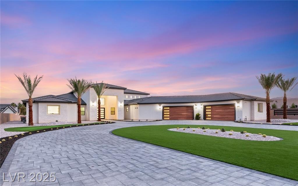 A rare Las Vegas find—this newly built custom estate spans 5,307 sq ft on a gated 1.06-acre lot, zoned for horses with no HOA. Designed for elegance and comfort, it offers single-level living with a loft and half bath. The great room impresses with 22’ vaulted ceilings, while 10’ ceilings carry throughout. Five bedrooms each feature en suite baths and individual mini-split AC units for personalized comfort. The gourmet kitchen showcases Thermador appliances, quartz counters, and a 15’x14’ butler’s pantry. The primary suite includes a sitting area, spa-like bath, 12’x13’ custom closet with island, and backyard access. Entertain under a 54’x15’ covered patio with wood ceiling. The 1,847 sq ft 4-car garage offers unmatched utility with tankless water heaters and 7’ clearance doors. With dual 18 SEER A/C units and energy-efficient features, this estate blends modern efficiency with timeless luxury. The backyard awaits your vision—horses, pool, or gardens.