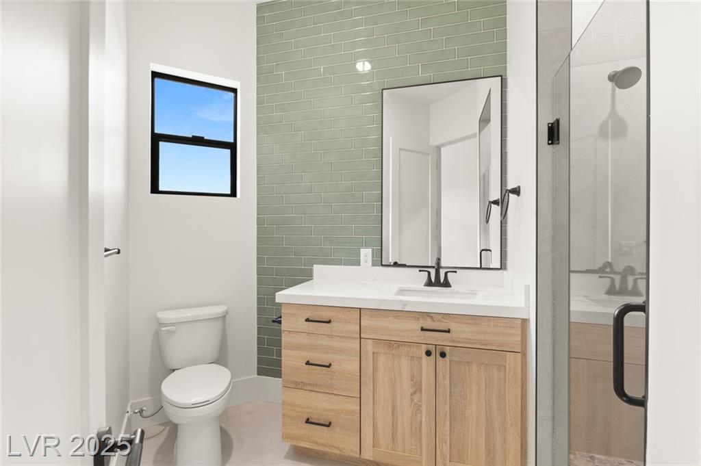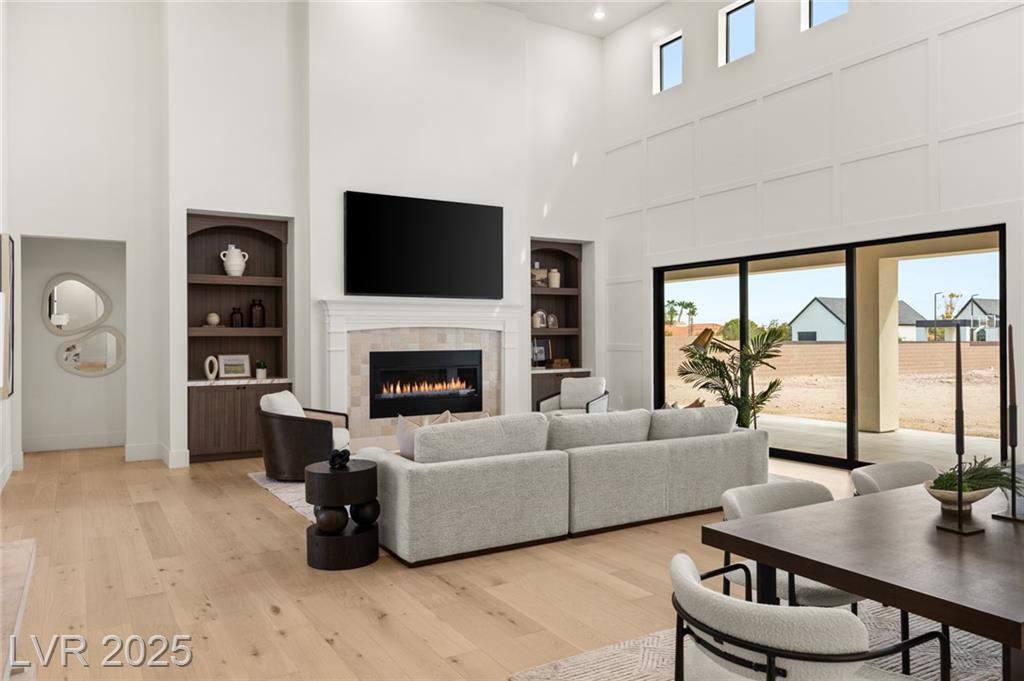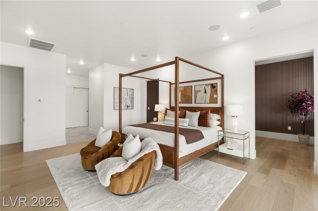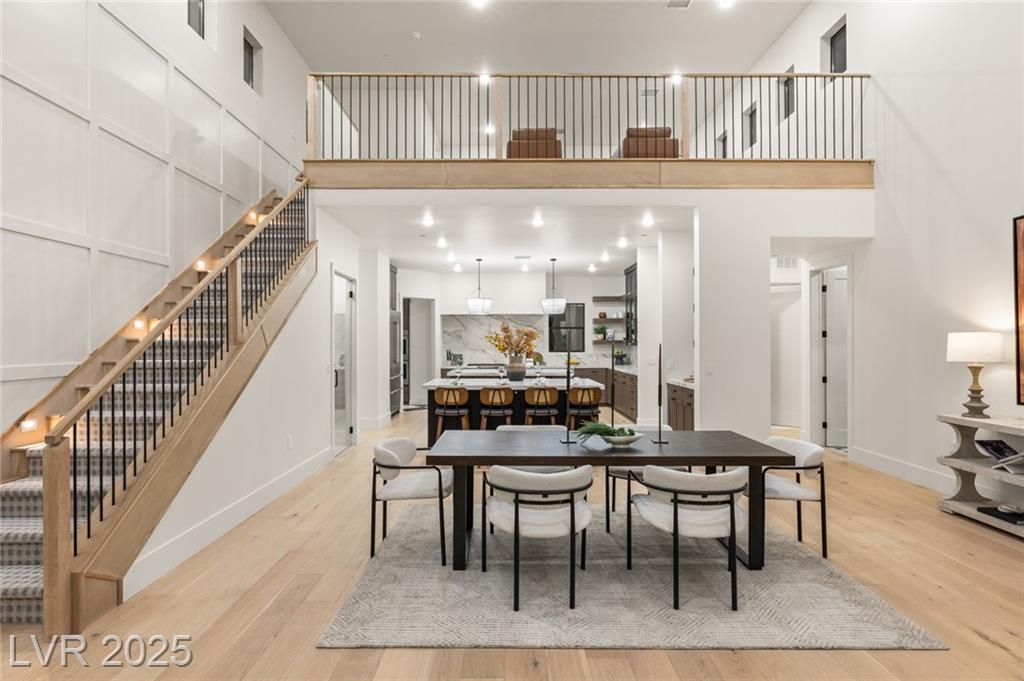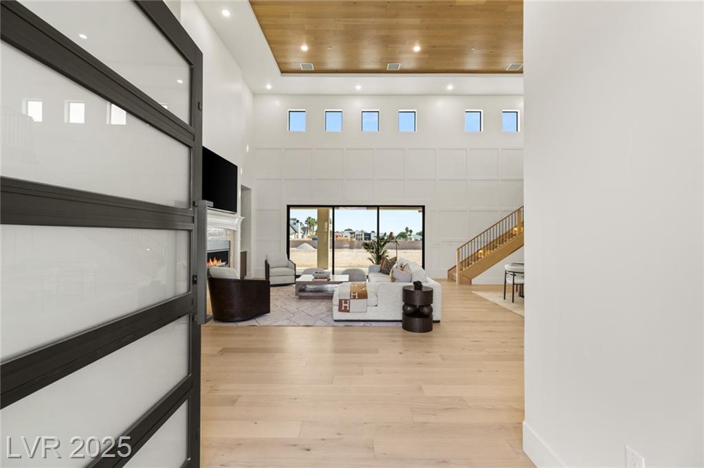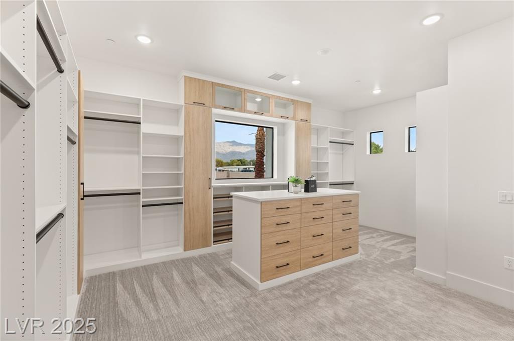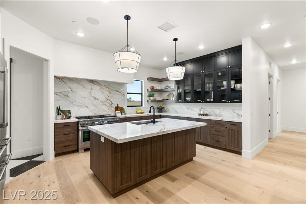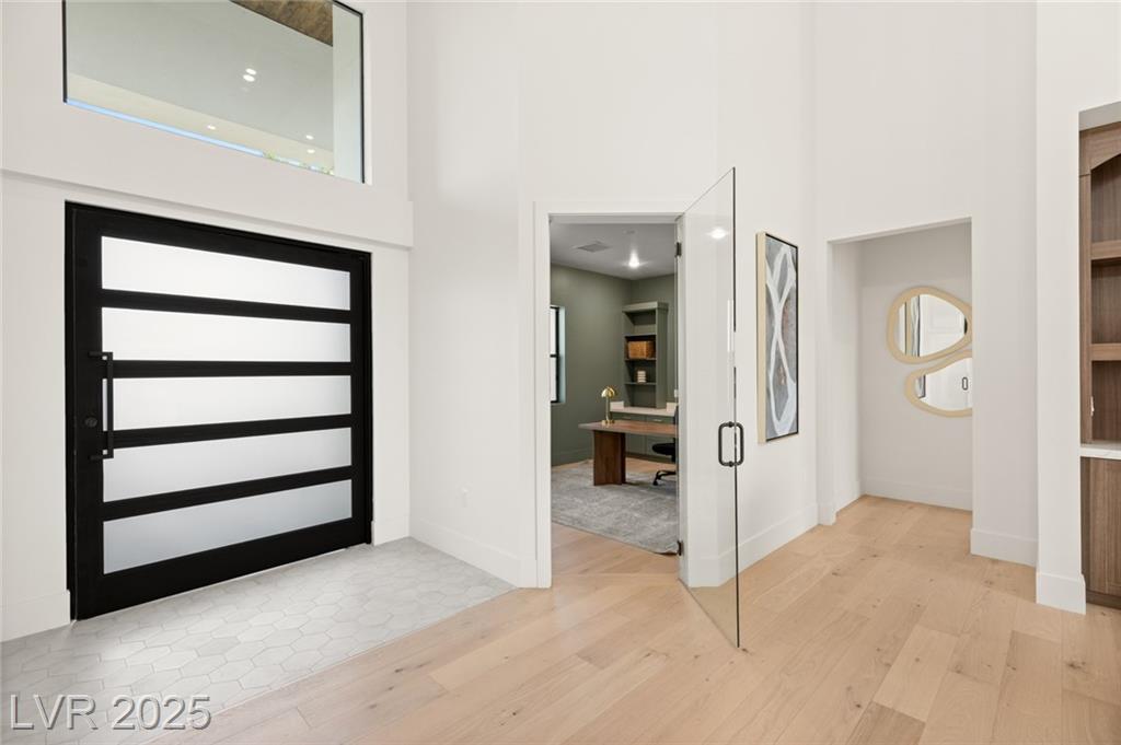 A rare Las Vegas find—this newly built custom estate spans 5,307 sq ft on a gated 1.06-acre lot, zoned for horses with no HOA. Designed for elegance and comfort, it offers single-level living with a loft and half bath. The great room impresses with 22’ vaulted ceilings, while 10’ ceilings carry throughout. Five bedrooms each feature en suite baths and individual mini-split AC units for personalized comfort. The gourmet kitchen showcases Thermador appliances, quartz counters, and a 15’x14’ butler’s pantry. The primary suite includes a sitting area, spa-like bath, 12’x13’ custom closet with island, and backyard access. Entertain under a 54’x15’ covered patio with wood ceiling. The 1,847 sq ft 4-car garage offers unmatched utility with tankless water heaters and 7’ clearance doors. With dual 18 SEER A/C units and energy-efficient features, this estate blends modern efficiency with timeless luxury. The backyard awaits your vision—horses, pool, or gardens.