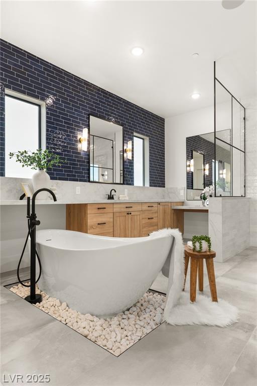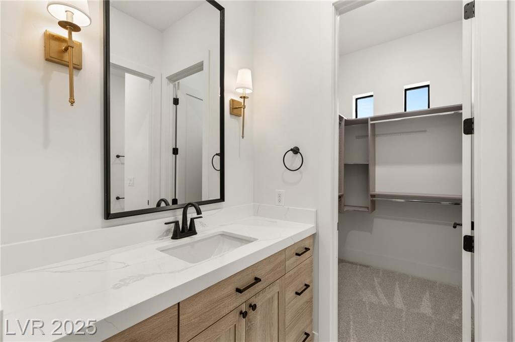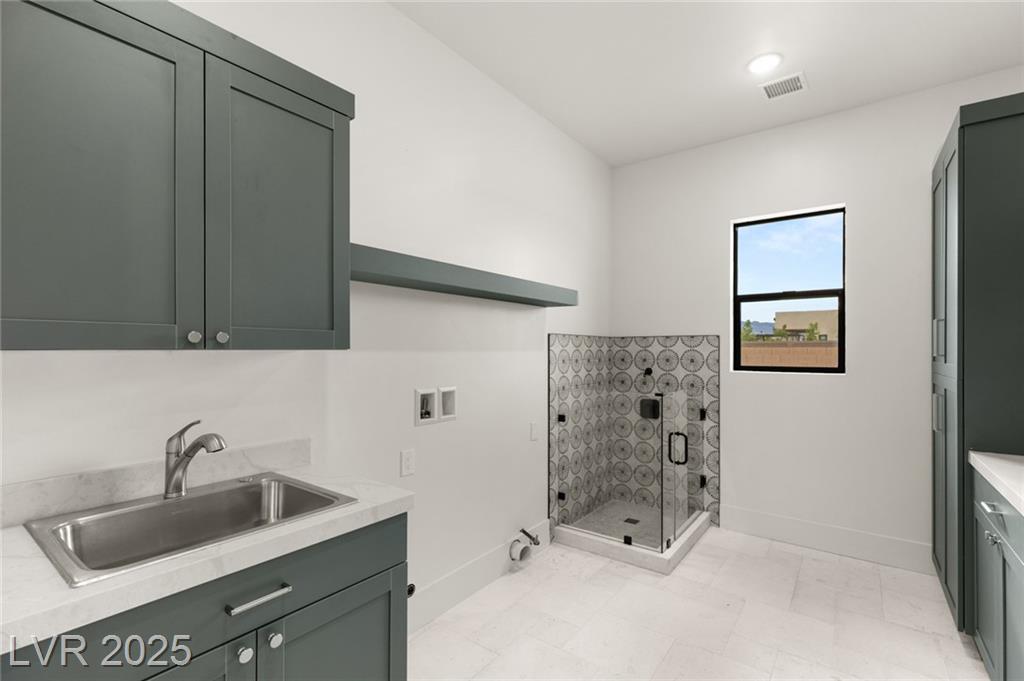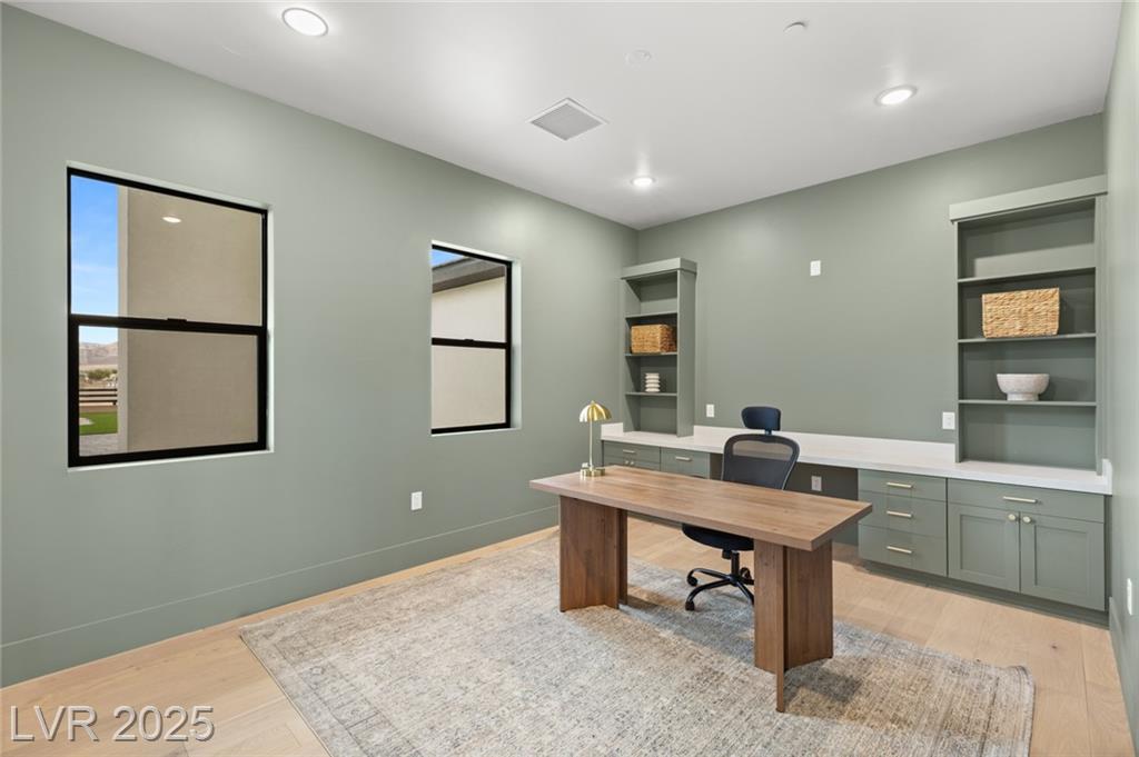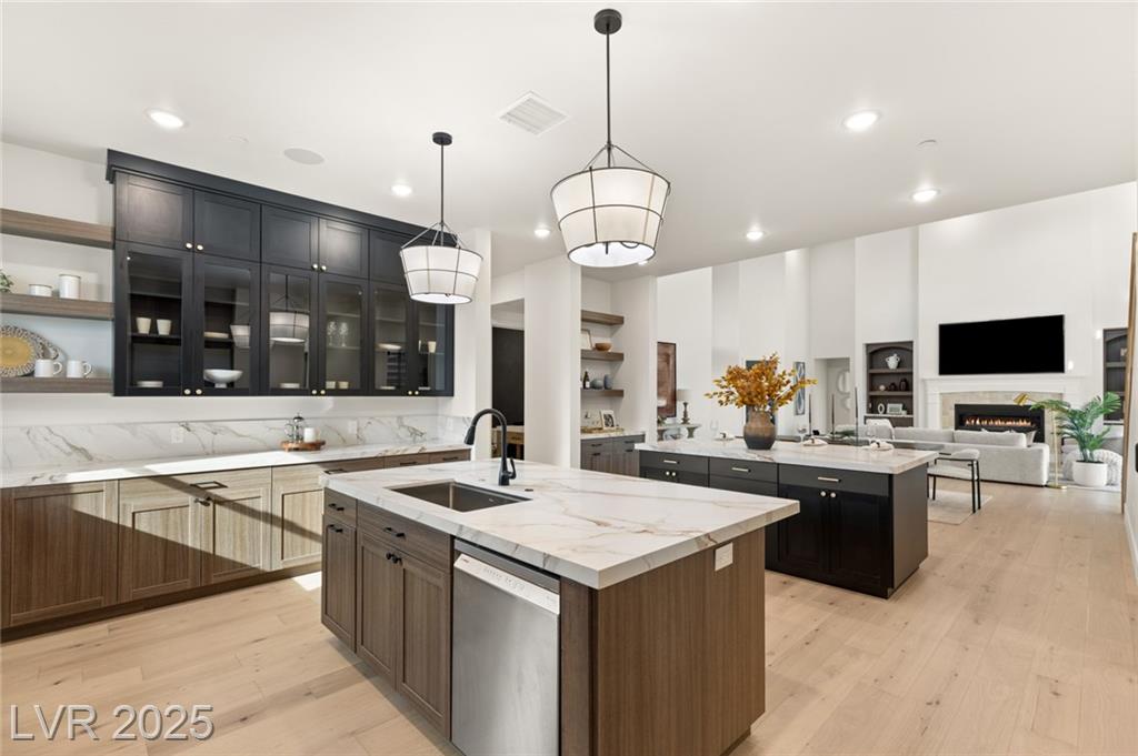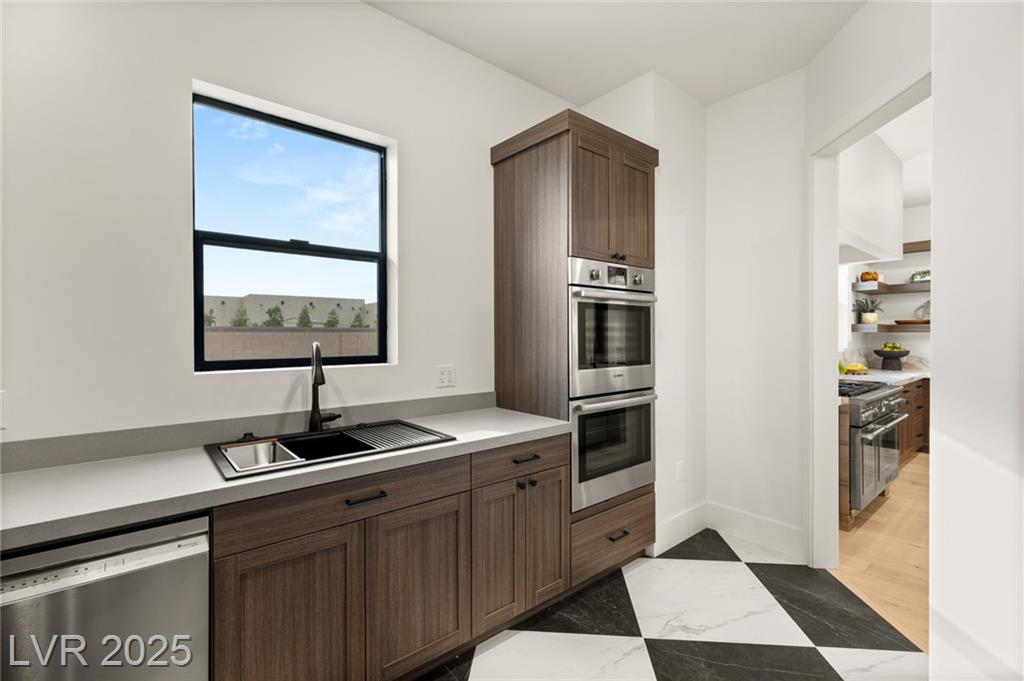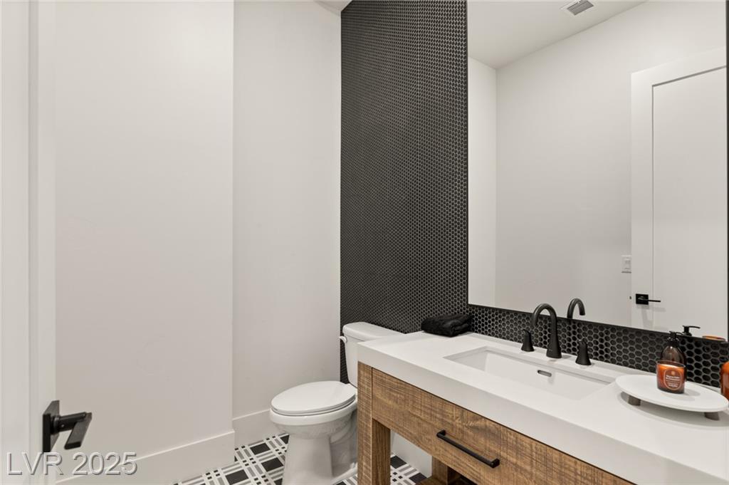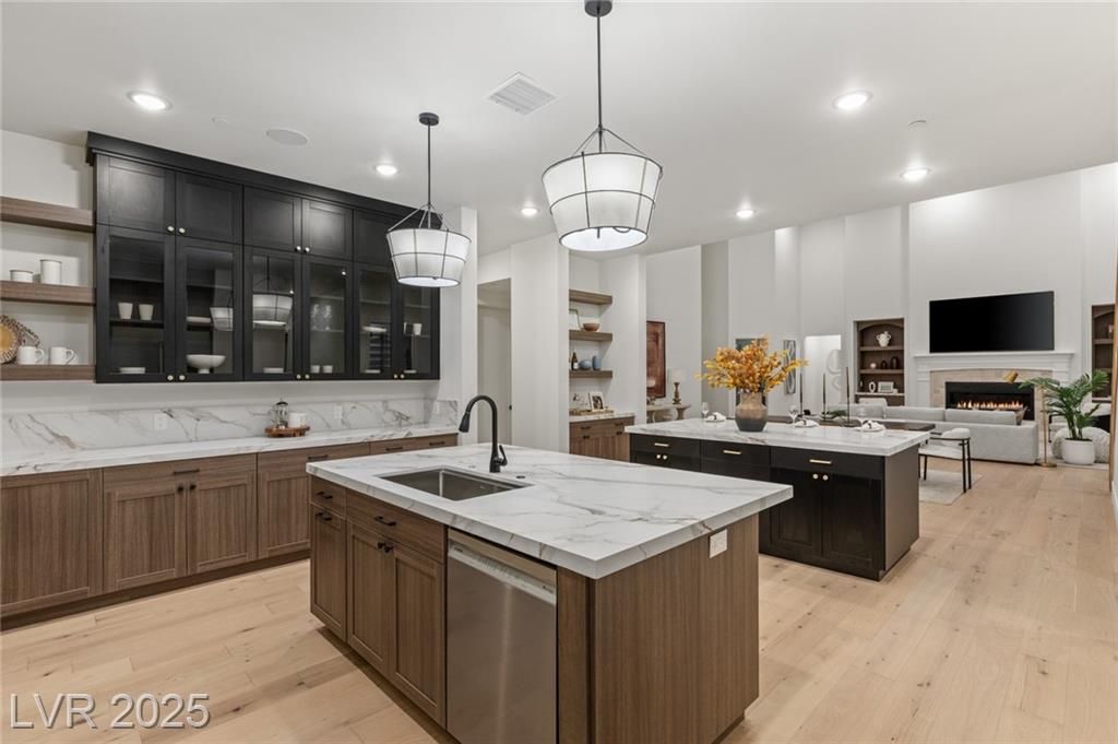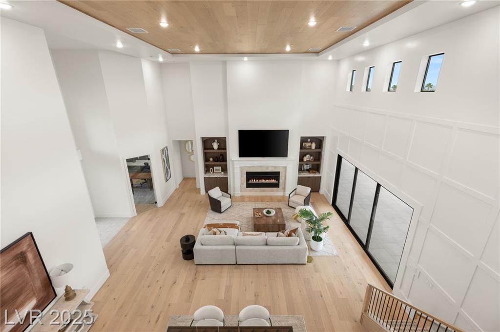A rare Las Vegas find—this newly built custom estate spans 5,307 sq ft on a gated 1.06-acre lot, zoned for horses with no HOA. Designed for elegance and comfort, it offers single-level living with a loft and half bath. The great room impresses with 22’ vaulted ceilings, while 10’ ceilings carry throughout. Five bedrooms each feature en suite baths and individual mini-split AC units for personalized comfort. The gourmet kitchen showcases Thermador appliances, quartz counters, and a 15’x14’ butler’s pantry. The primary suite includes a sitting area, spa-like bath, 12’x13’ custom closet with island, and backyard access. Entertain under a 54’x15’ covered patio with wood ceiling. The 1,847 sq ft 4-car garage offers unmatched utility with tankless water heaters and 7’ clearance doors. With dual 18 SEER A/C units and energy-efficient features, this estate blends modern efficiency with timeless luxury. The backyard awaits your vision—horses, pool, or gardens.