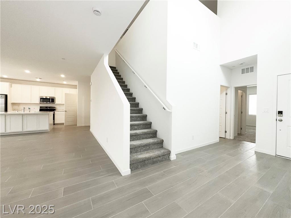 Welcome to this beautiful home with upgraded espresso cabinets, stunning Calacatta Monoco quartz kitchen countertops, and a blend of ceramic tile and plush carpet flooring. The home comes complete with washer, dryer, and blinds included—plus Lennar’s signature Everything’s Included package, offering stainless steel kitchen appliances, ceiling fan pre-wires in all bedrooms and the living room, and so much more! Located in the sought-after Cadence master-planned community in Henderson, this home combines modern style with everyday convenience.*Owner will consider cats, no dogs **Monthly Base Rent: $2,395; Trash:$21; Total Monthly Rent: $2,416*