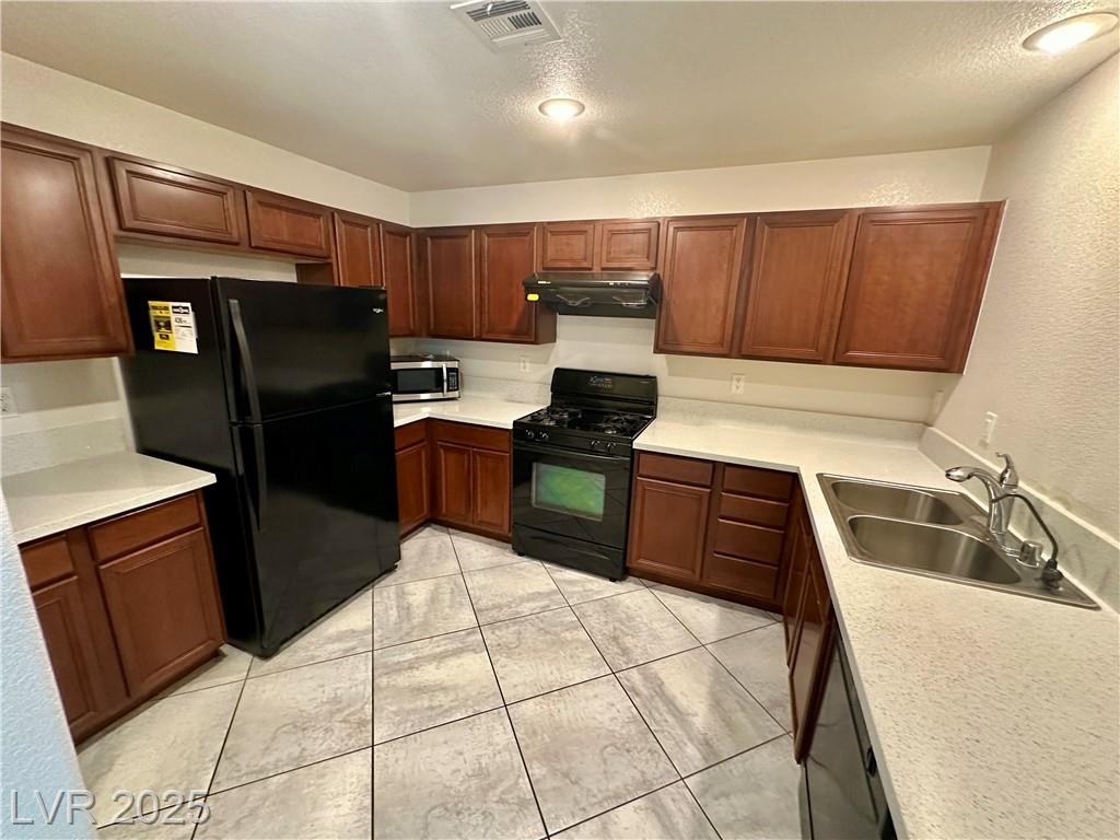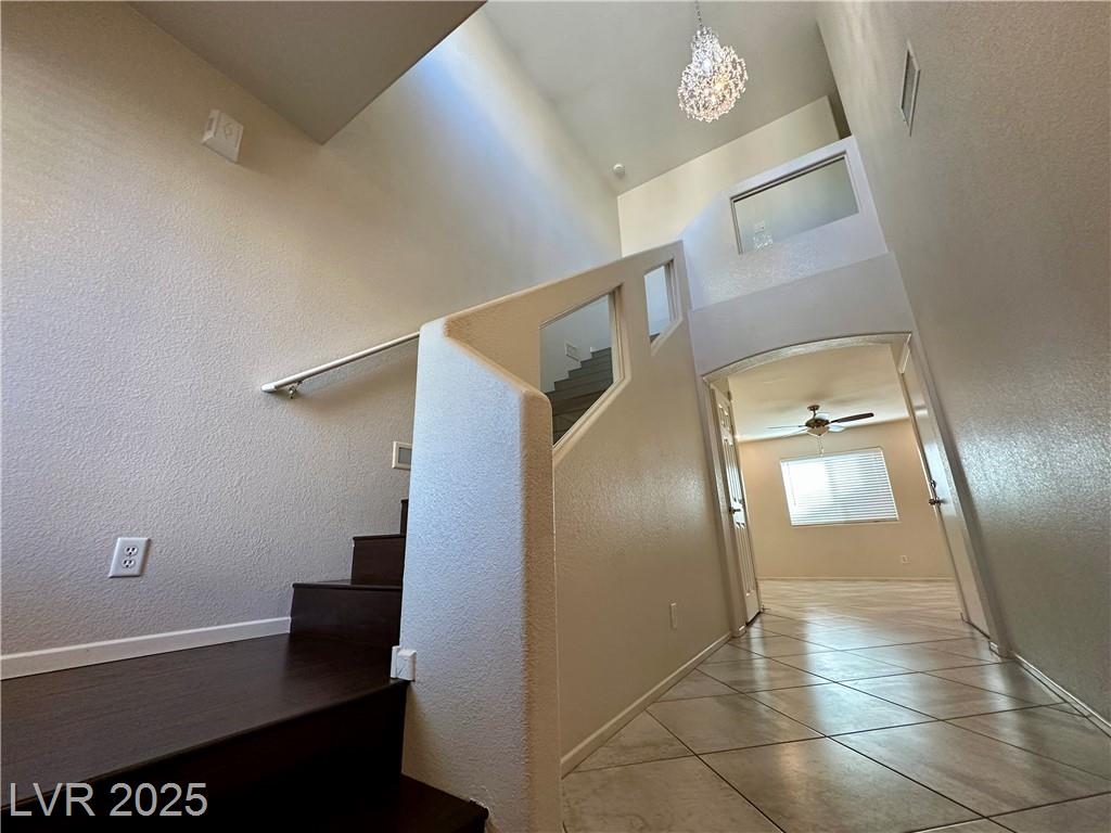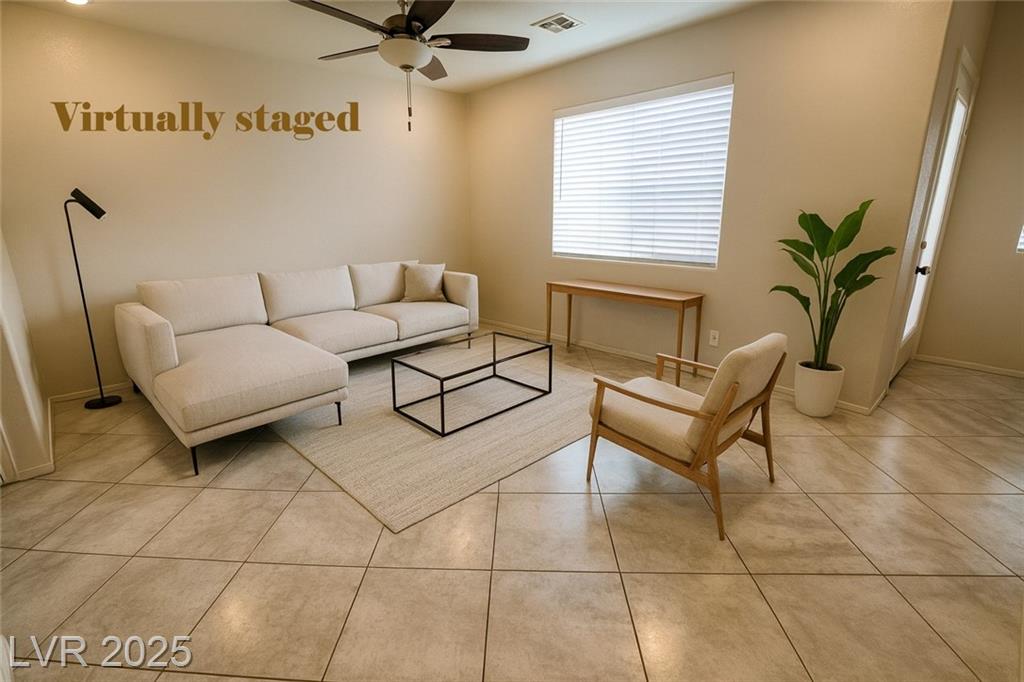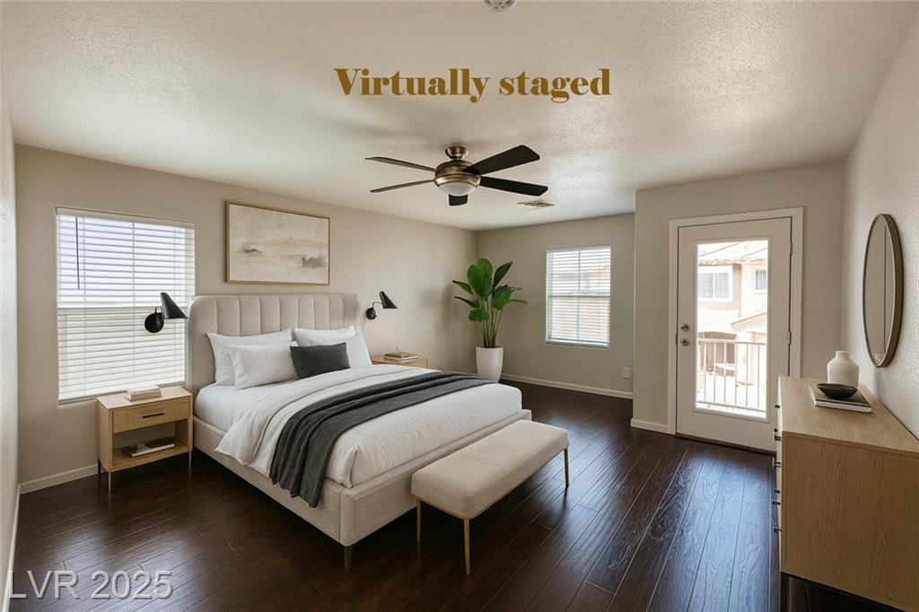 Welcome to this rare two-story corner-lot home in a gated Southwest Las Vegas community offering both privacy and premium upgrades. This 3-bedroom, 2.5-bath home features a spacious 2-car garage—an uncommon find in this neighborhood—plus access to additional guest parking. Downstairs boasts sleek tile flooring, while the stairs and second level feature low-maintenance laminate. The kitchen includes elegant quartzite countertops, a brand-new refrigerator, and all appliances stay—washer, dryer, microwave, dishwasher, and custom hood. The second-floor balcony and private backyard provide outdoor relaxation. Water heater replaced in 2023, and a water softener is included. HOA is $90/month and covers gated entry of community pool, and park. Power is on.