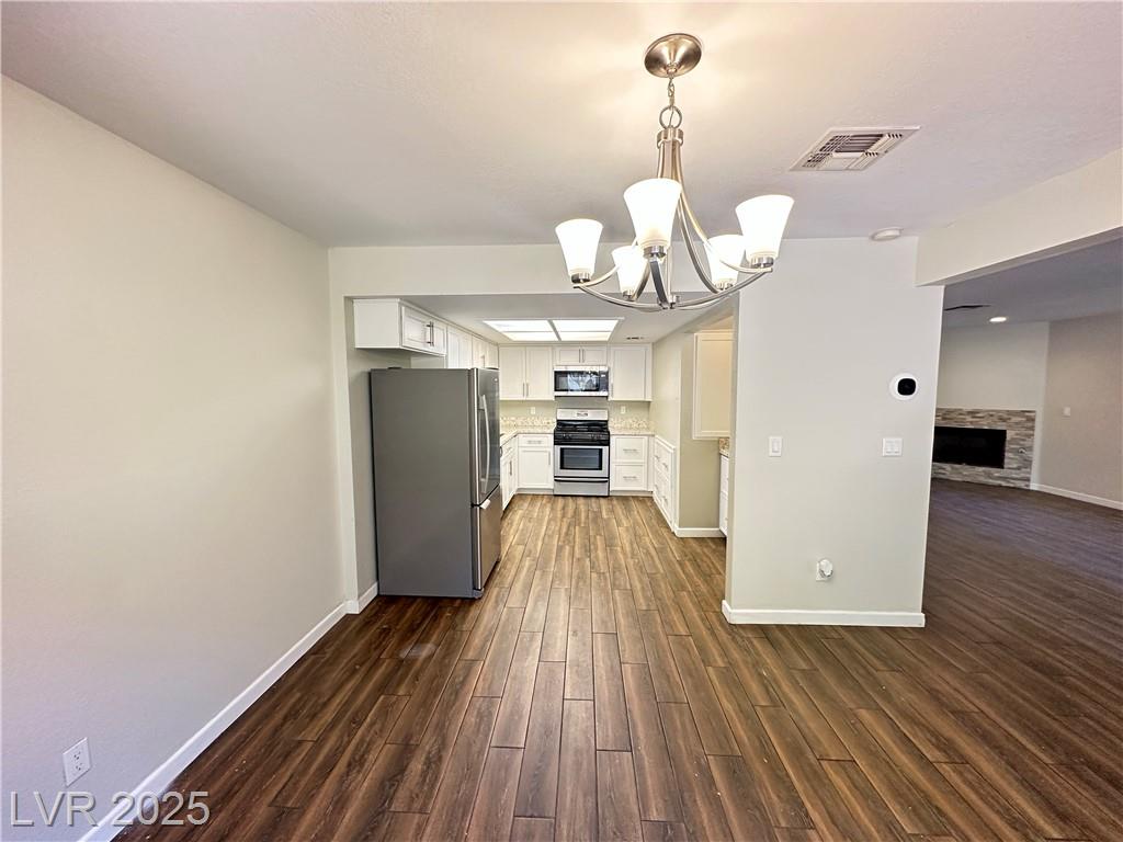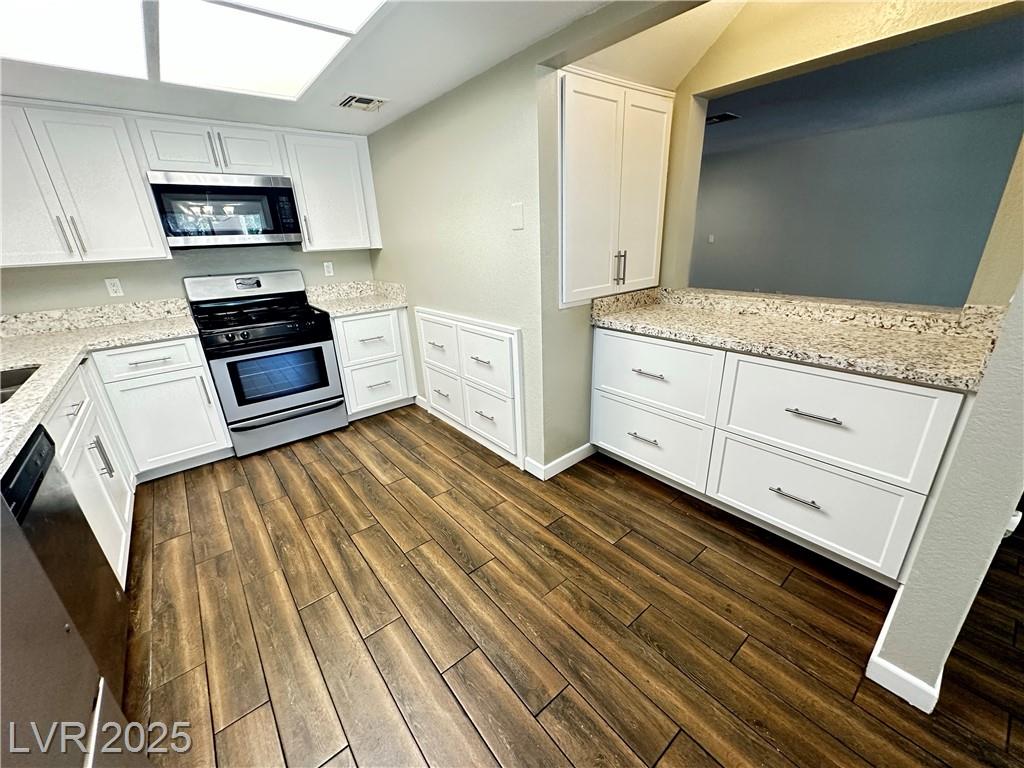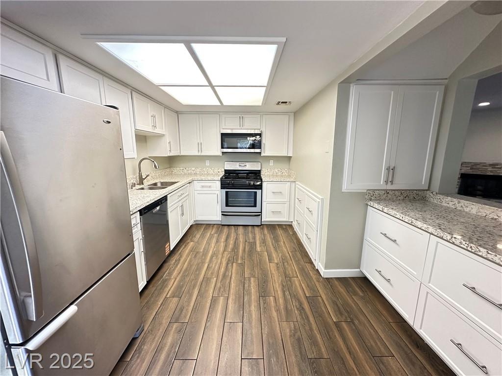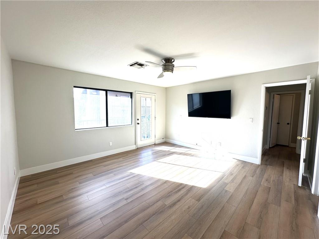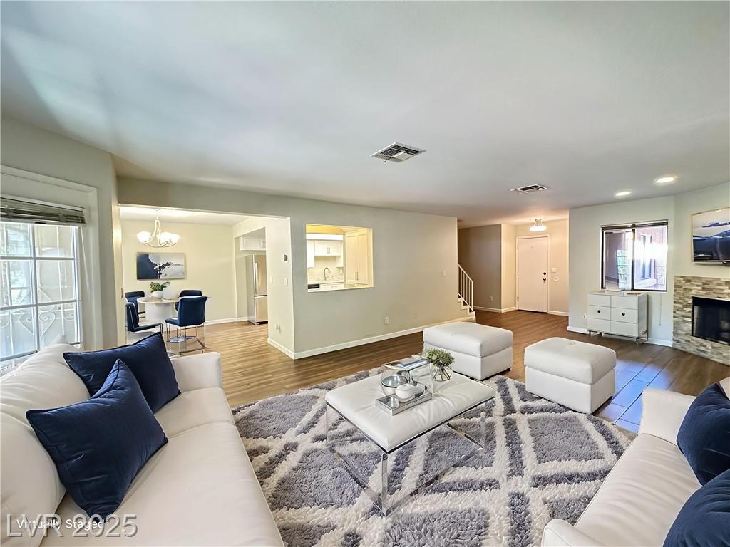 Move-In Ready Townhome in Prime Location! The townhome is Located in a quiet, gated community just minutes from the Strip, shops, restaurants, schools and other convenient amenities. This newly renovated townhome offers style, comfort, and convenience. Modern Flooring Throughout: Wood-look tile on the first floor and elegant vinyl plank upstairs—no carpet! Open floorplan: Spacious living room with fireplace and a door in the dinning area opens to a lush, mature landscaped back. Updated Kitchen: White cabinetry with soft closing draws, multiple deep drawers for pots & pans, and stainless steel appliances. Three Bedrooms Upstairs: Primary suite has walk-in closet & private balcony with new wood flooring. Guest rooms with large closets and modern ceiling fans. Recent replaced Dual AC units (2023 & 2024), brand new flooring for stairway and second level through out. Generous 2-car Garage with Full-length driveway. Community offers: Pool, spa, tennis courts, walking paths, and more...