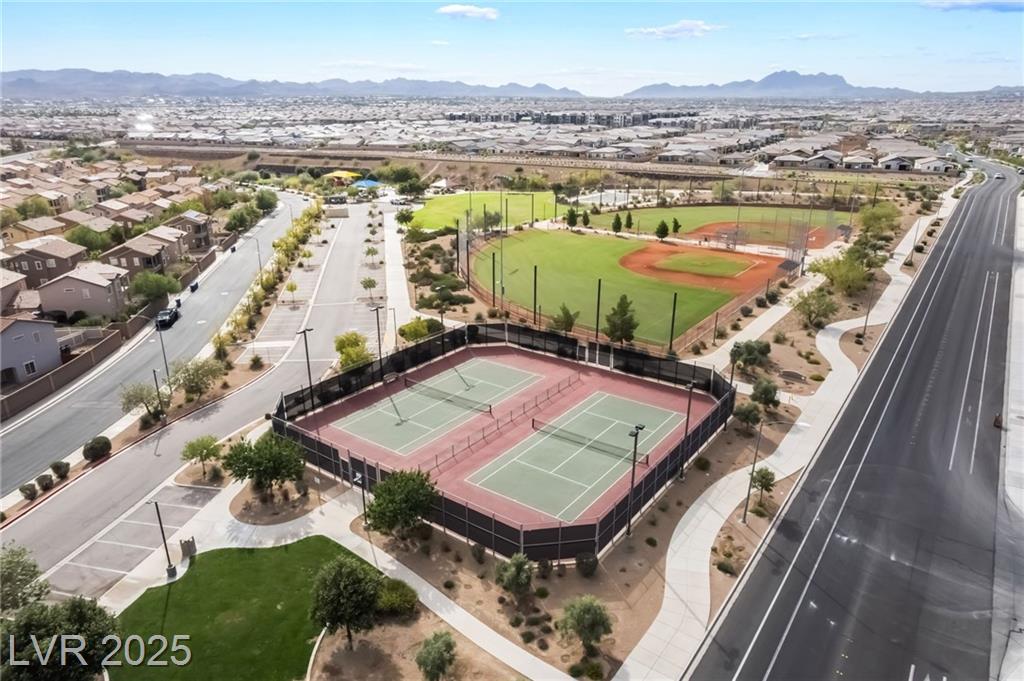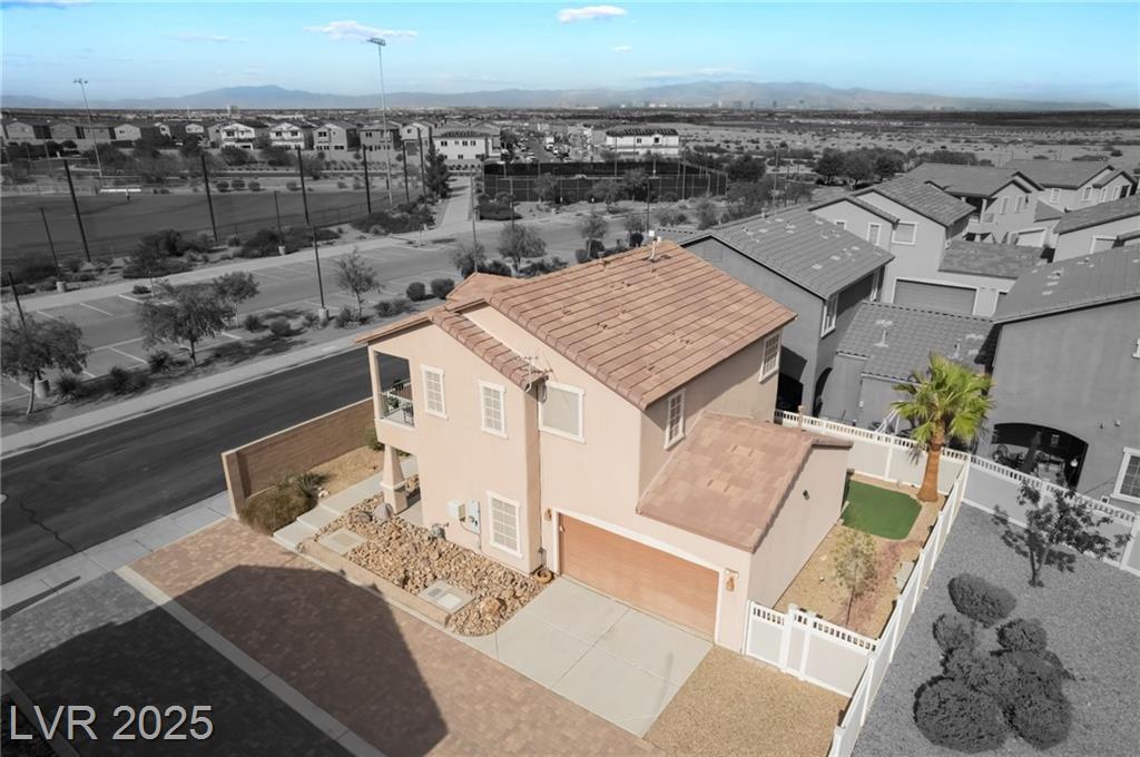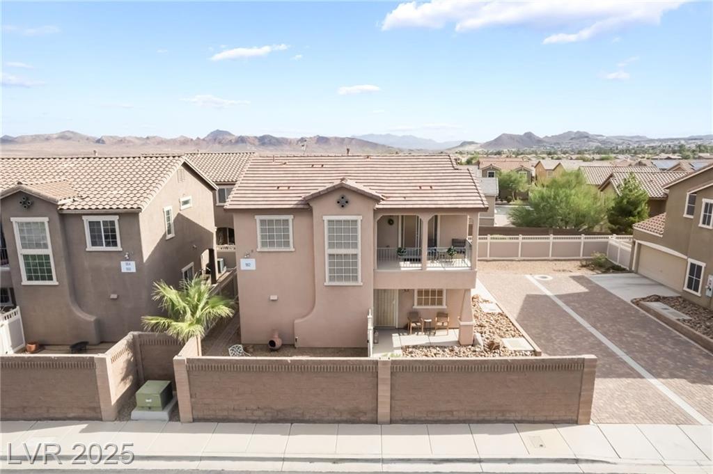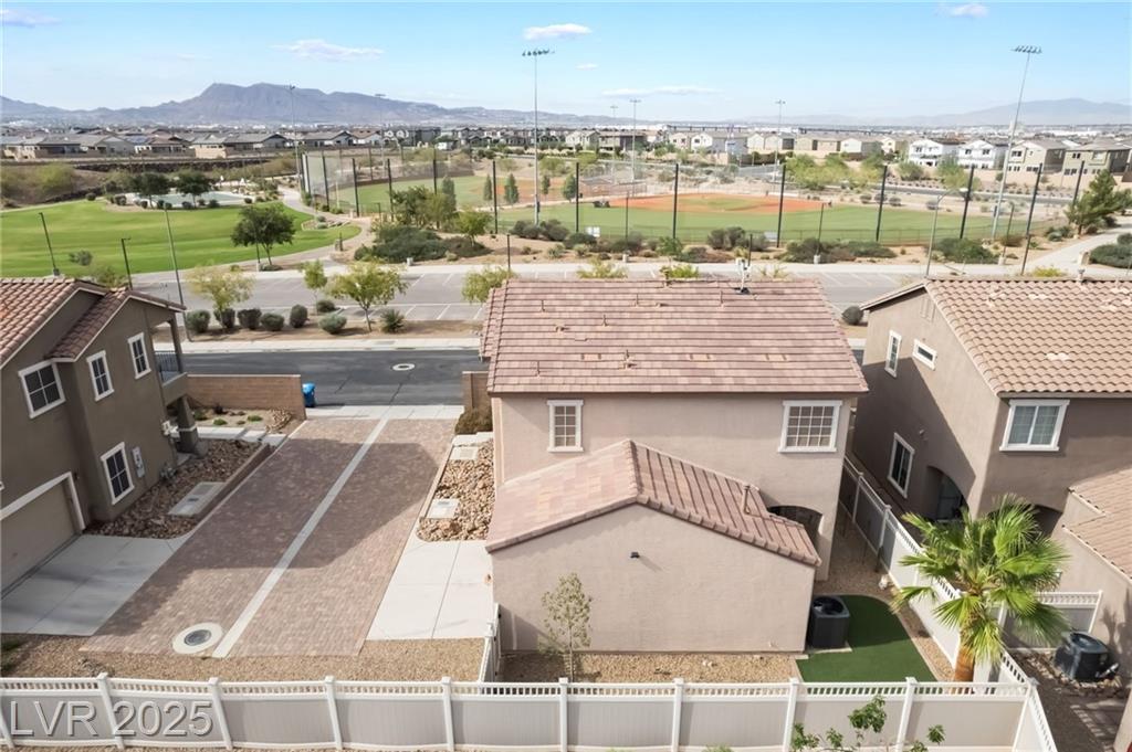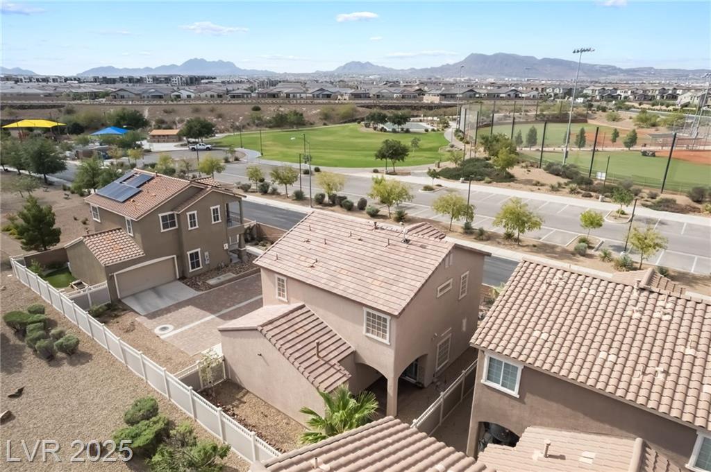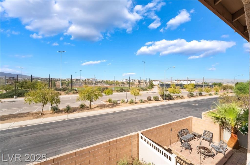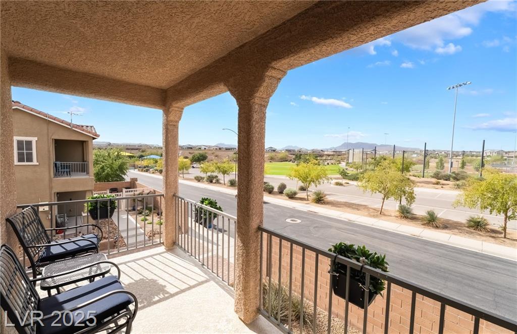 Beautiful sweeping views of city, park, mountains from upstairs balcony. New AC in 2024, new water heater in 2024, reverse osmosis at kitchen sink (filters recently changed), smart thermostat with remote access, newer carpet, water softener, all appliances included (stainless steel refrigerator, microwave, & dishwasher, washer, dryer, reverse osmosis, water softener). Beautifully landscaped backyard with pavestone walkway and patio, additional covered patio, artificial turf, 2 access gates, water conserving desert landscape.