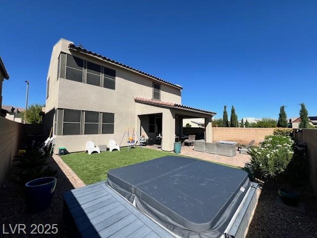 Tucked away in a quiet cul-de-sac, this stunning home features a modern open floor plan. A convenient downstairs bedroom with a nearby ¾ bath is perfect for guests. The oversized kitchen boasts abundant cabinet space, a walk-in pantry extending under the stairs, quartz countertops, and wood-like tile floors. Retractable honeycomb shades maximize comfort, while upstairs offers a laundry room, and a primary suite with a dual-head custom shower, Water softener, dual sinks, and a built-in organizer closet. The backyard is ideal for entertaining with a covered patio, ample pavers, low-maintenance turf and a partially inground hot tub. Your private retreat with style and convenience.