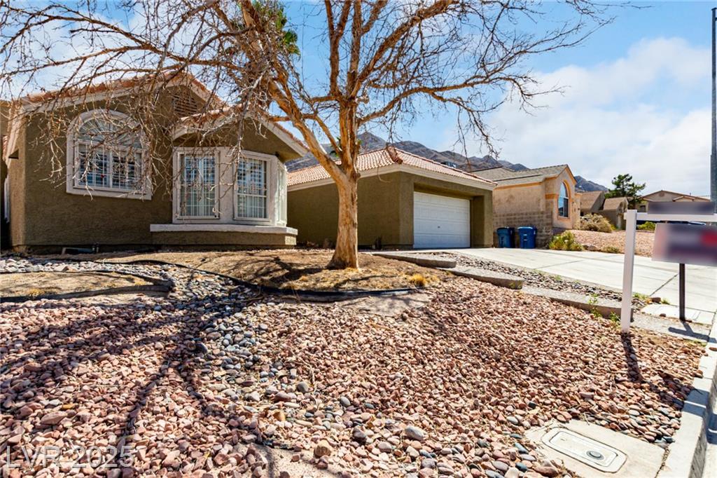 Charming single-story home with 3 bedrooms, 2 baths, and 1,444 sq ft of living space. Features include updated kitchen and bath cabinets, remodeled primary bath (2023), cozy gas fireplace, and RV/boat parking. Spacious backyard with no rear neighbors, block wall fencing, and mountain views. Located on a quiet cul-de-sac near schools and Lake Mead. No HOA!