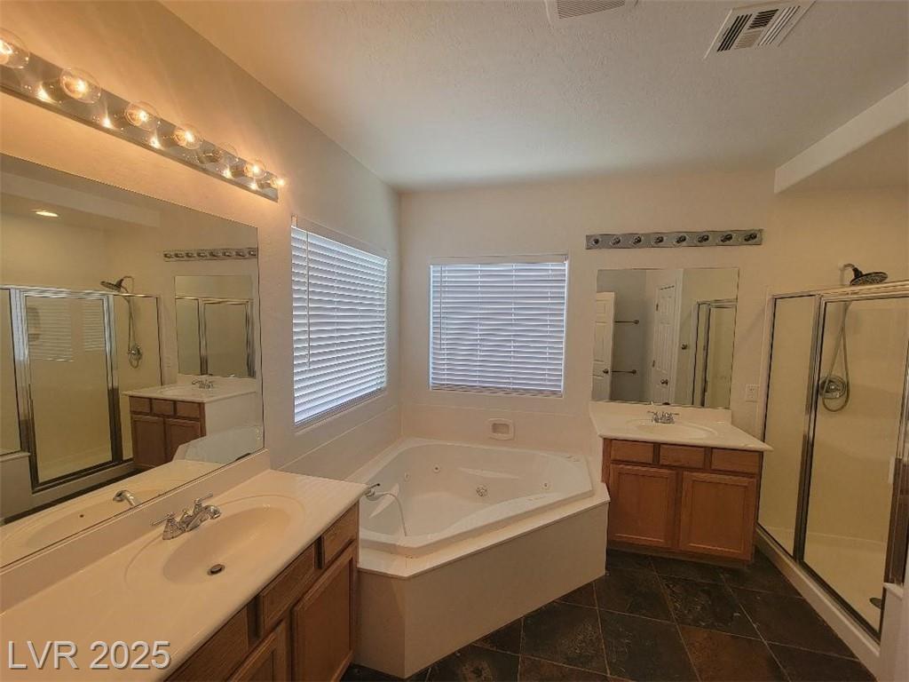 Beautiful upgraded, 3 bedrooms 2.5 bath, vaulted ceilings & plenty of natural light. Freshly painted, wood floors/tile (downstairs) plantation shutters, granite counters, stainless steel appliances, Jacuzzi tub, 8 ft slider & a large master with mountain views. Community features basketball/tennis, playground, community security. Driveway can fit 6 cars and RV if HOA allows RV parking. Convenient to restaurants, shopping, Nellis & Creech AFB, Floyd Lamb Park - Tule Springs, Mt Charleston. Must see