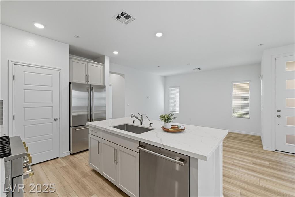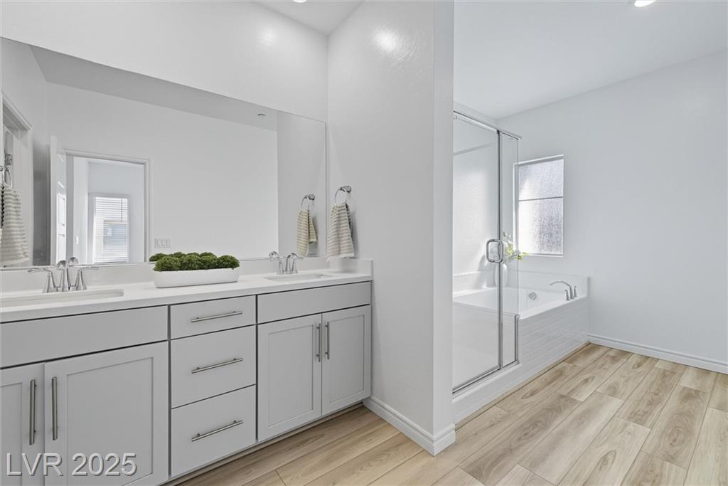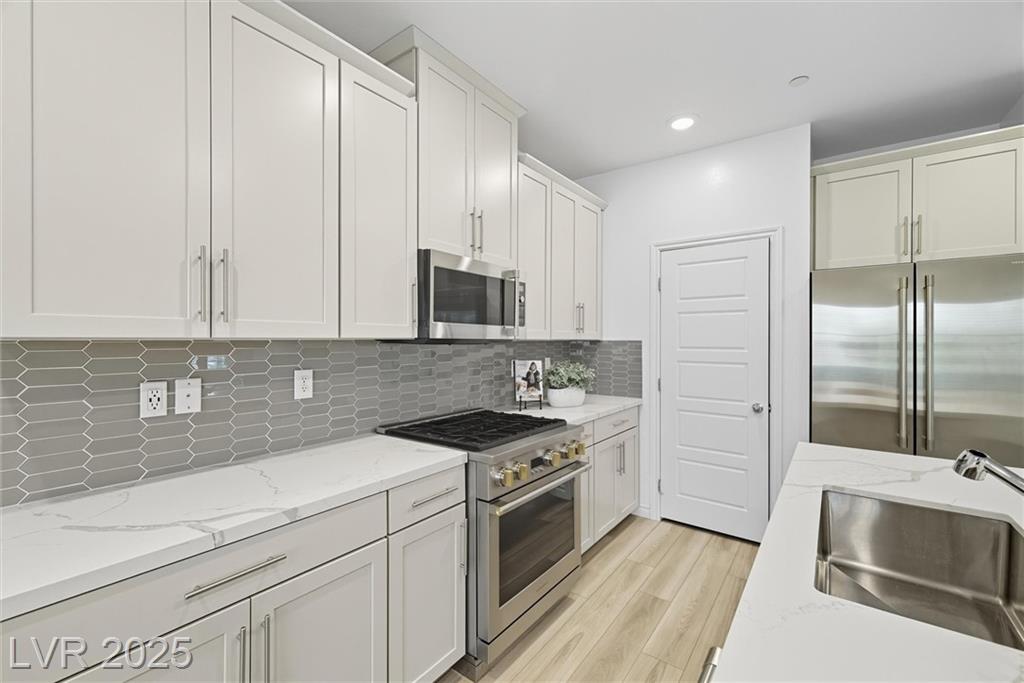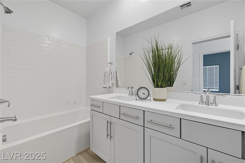 Location, location, location!, This stunning 4 bedroom and loft home is located in the heart of Summerlin. A bed and bathroom down are perfect for guest, family or an office. Upgraded kitchen with tile backsplash, stainless steel appliance, oversized island open to great room for ease in entertaining. Luxury Vinyl Plank downstairs and on the stairs for an elegant look. Upstairs offers 3 bedrooms and an oversized loft. The primary bedroom has a strip view, walk in closet, and the bathroom has 2 sinks and separate tub and shower. A courtyard entry with turf and landscaping greets you as you enter the home. A 2 car garage and additional parking adjacent to the home make it convenient for visitors. Amazing location in community with a playground area just outside this home. Don't forget about the community pool area with umbrellas and lounge chairs to relax. With the new parks and shopping coming soon this home is near the newest Summerlin Villages.
