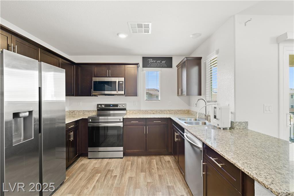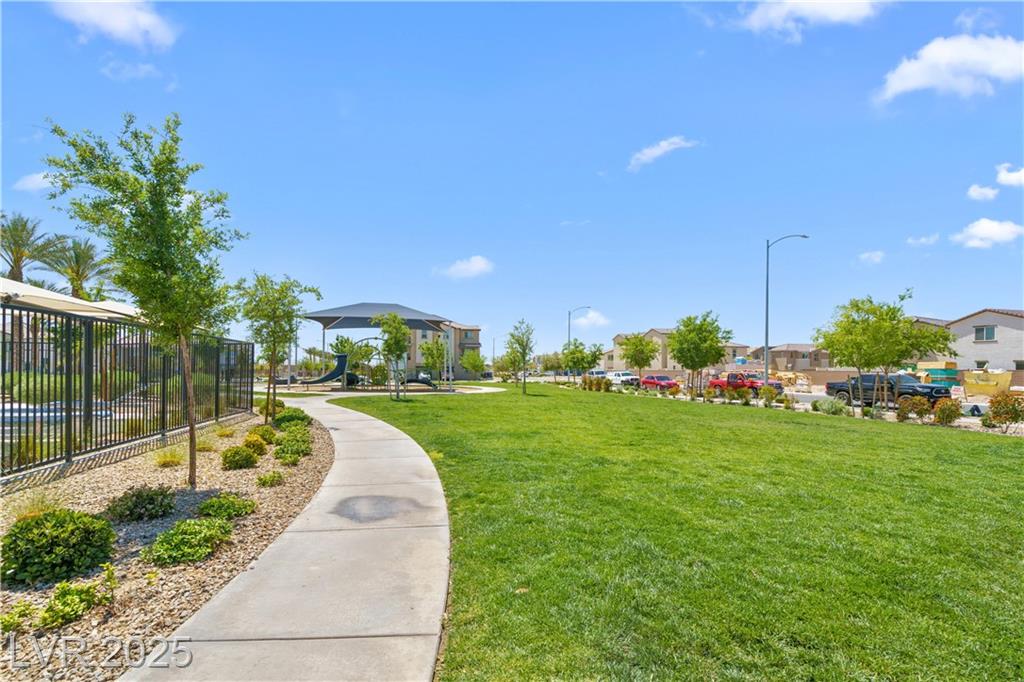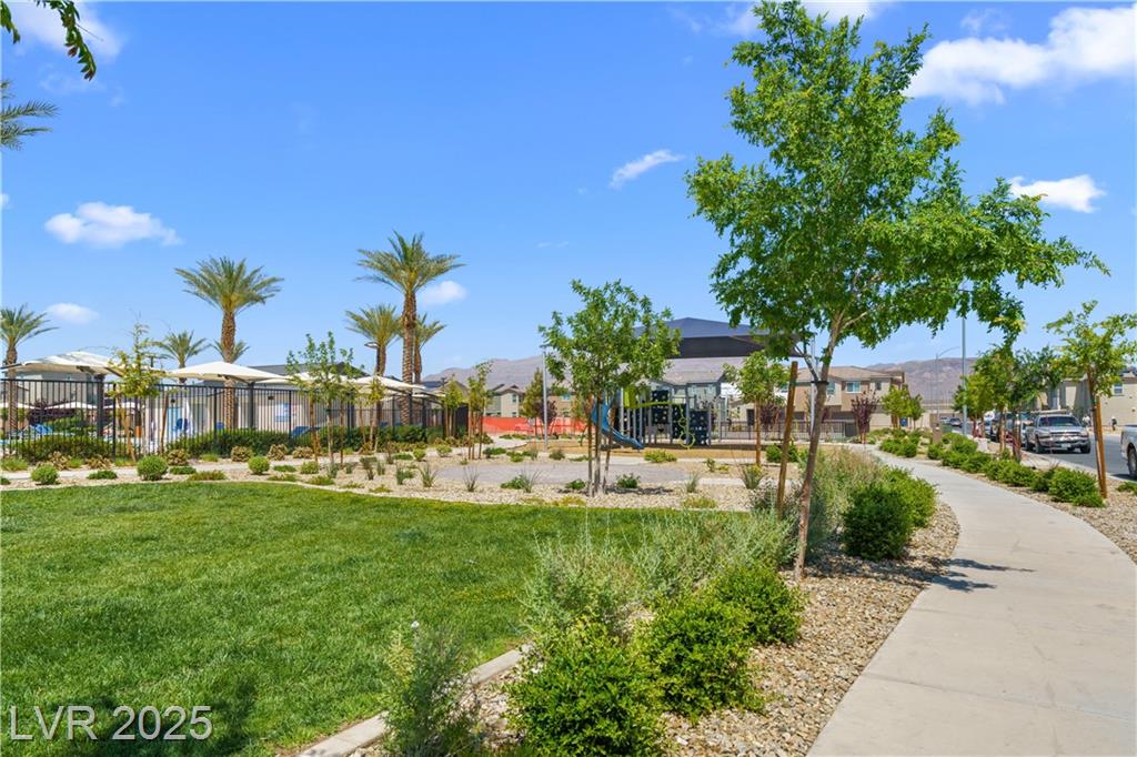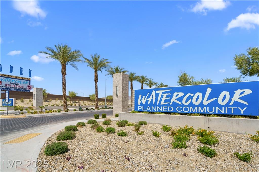 From I-215 & Losee Rd, South on Losee, Left on Deer Springs, Left on Watercolor Park (Gate), Straight Bright Sundays, Last home to the left, front door entry to the left. Use walkway to access the front door at 2677. Lockbox on the front gate rail.