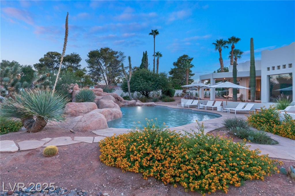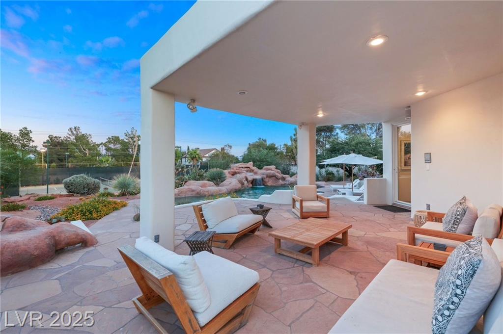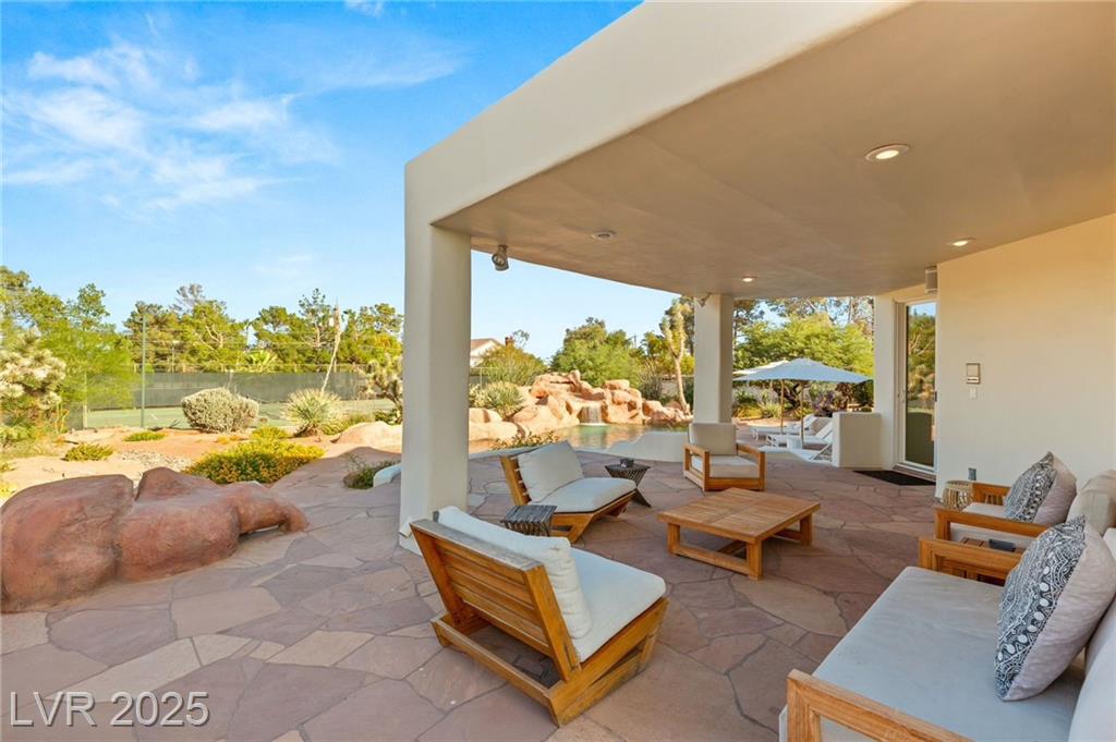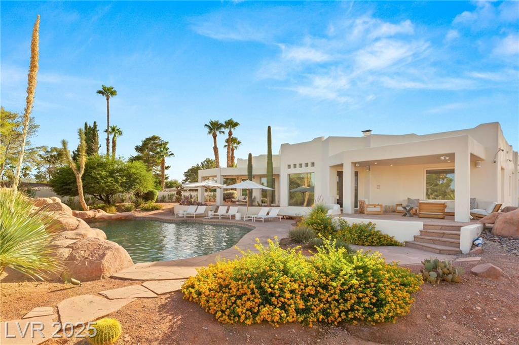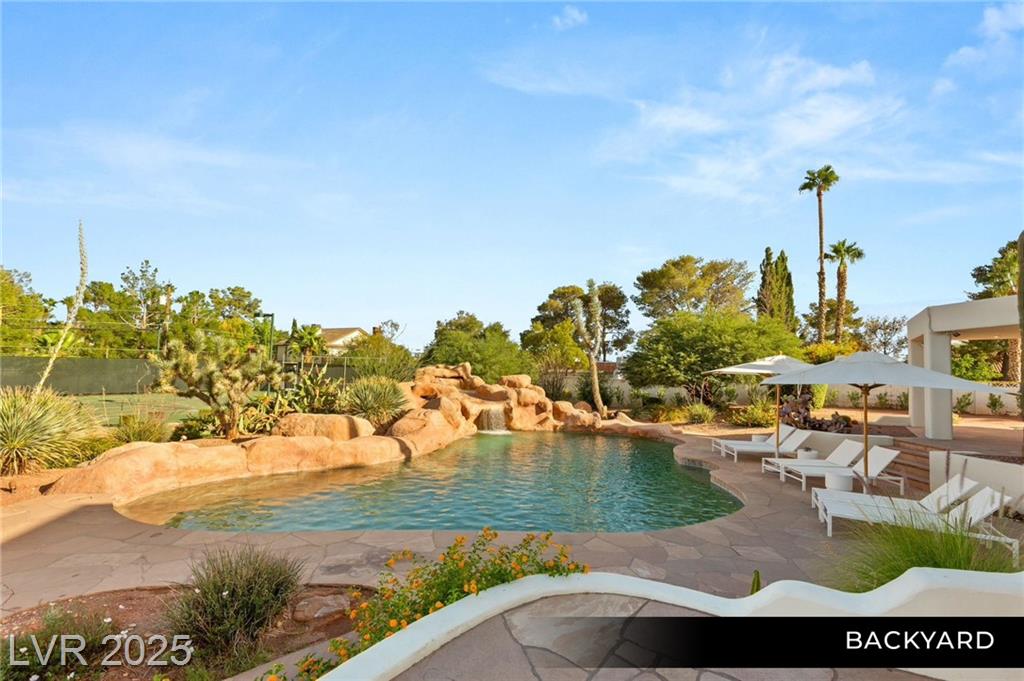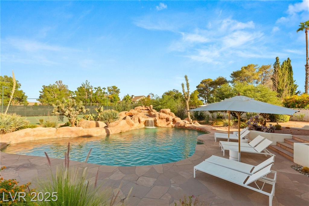 Welcome to your own private desert oasis located in the desirable Section 10 community. This sprawling single-story custom adobe home sits on nearly an acre of pristine land with no HOA restrictions—perfection for those who crave freedom. With 4,023 square feet of flawlessly designed space, 4 spacious bedrooms, and 3 full baths, this home offers a lifestyle of both privacy and entertainment. Whether you’re hosting a tennis match on your private tennis court, unwinding poolside next to your rock waterfall, or relaxing under the desert stars, every inch of this property spells luxury. The home also features a large 3-car garage for convenience, RV access, and additional storage. Centrally located in Las Vegas with easy access to major roads, entertainment, and shopping, this architectural masterpiece offers the relaxation of the suburbs without sacrificing the benefits of city life. Don’t miss out on an opportunity to own this unique desert escape.