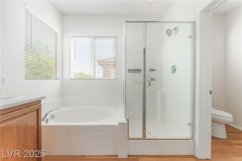 WHOA NELLY! Welcome to this rare gem with low HOA! This beautifully upgraded home is nestled in a quiet Northwest Las Vegas neighborhood, offering comfort, style, and convenience throughout. Features include granite countertops, a kitchen bar, pantry, and new refrigerator and dishwasher. Fresh interior paint and new laminate flooring create a clean, modern aesthetic. New blinds have been installed throughout, along with updated toilets, sinks, and faucets. The spacious loft provides flexible living space, while the large primary suite boasts vaulted ceilings, dual closets, and a luxurious bath with separate tub and shower. Upstairs laundry includes a new dryer. Outdoor living shines with a covered patio and elegant stone pavers. Additional enhancements include a Ring doorbell and ADT wiring. Located near parks, schools, and shopping. A turnkey opportunity with thoughtful upgrades and timeless appeal. This is a must-see — DON'T DELAY, SCHEDULE TODAY!