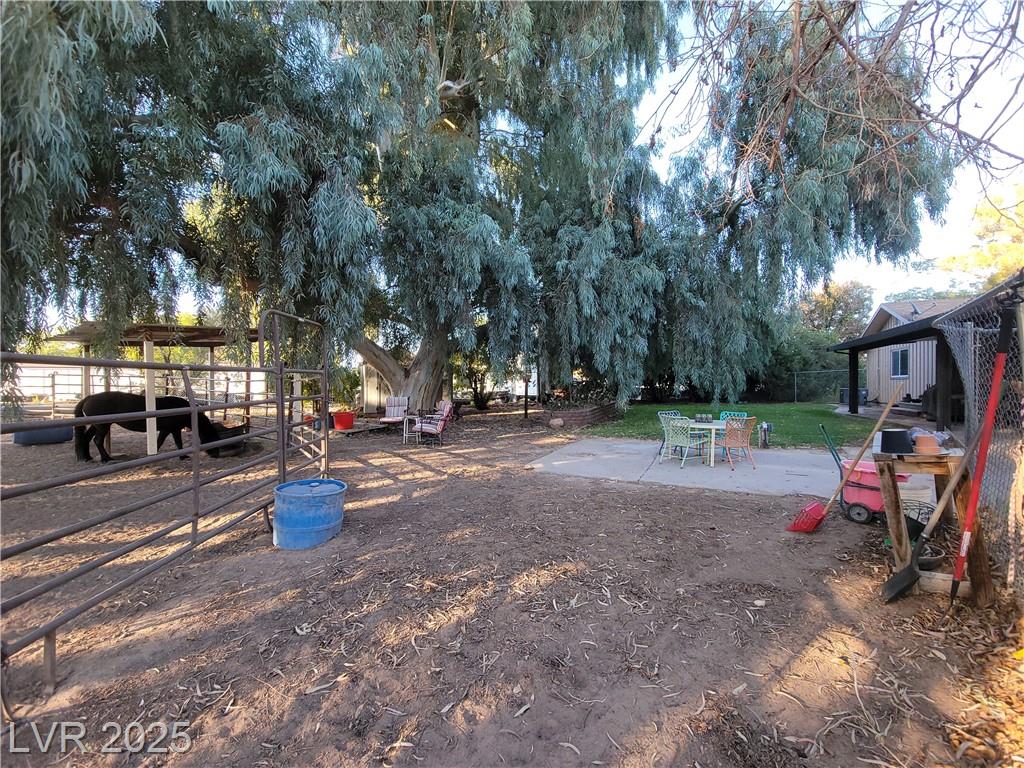 Bring your horses to this park-like oasis at the end of the street. There are a variety of mature trees throughout the front and back yards, a large patio cover out back, a perfect lawn in the back yard with a huge metal shade along with a storage shed. The home has been updated and well kept! Come take a look at this beautiful home with an open floor plan, 3 bedrooms along with a 10'x12' den, and separate laundry room.