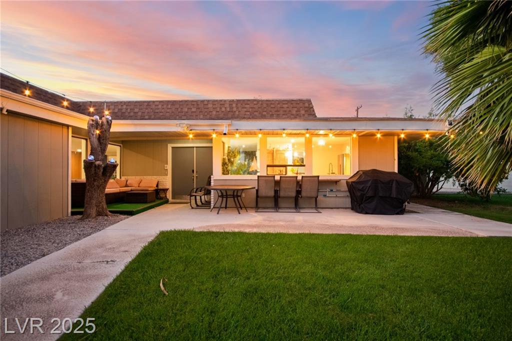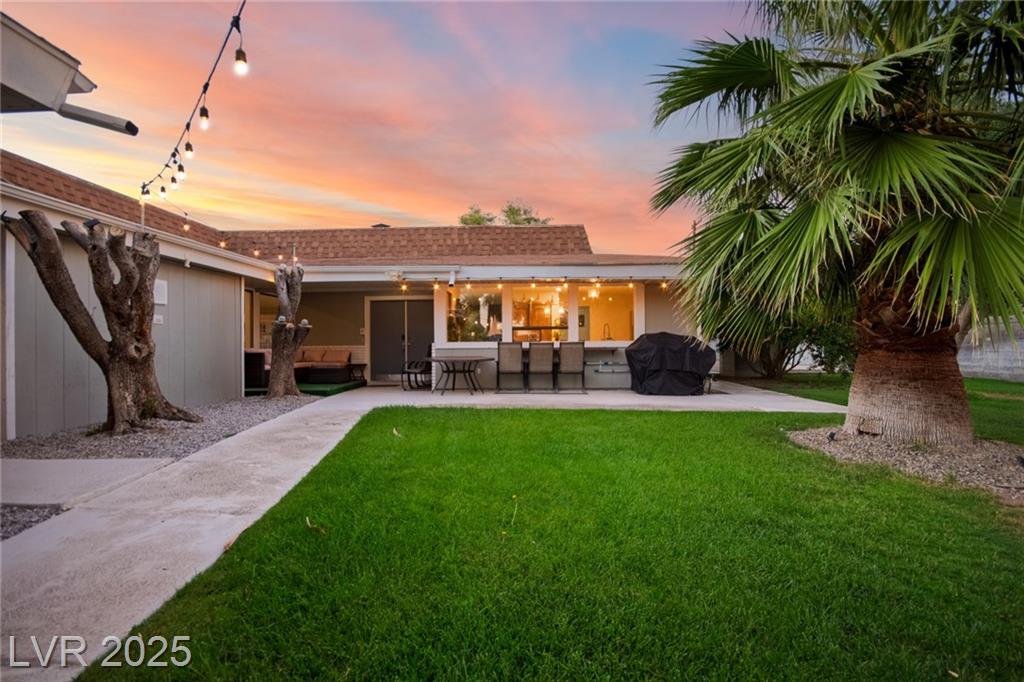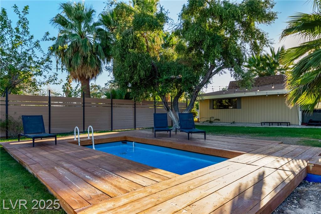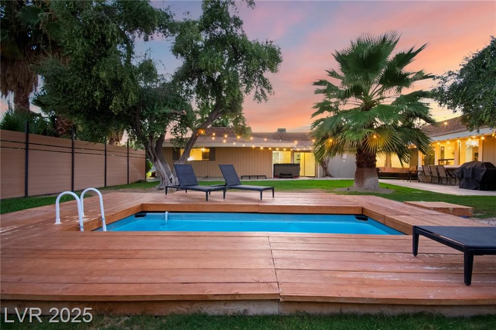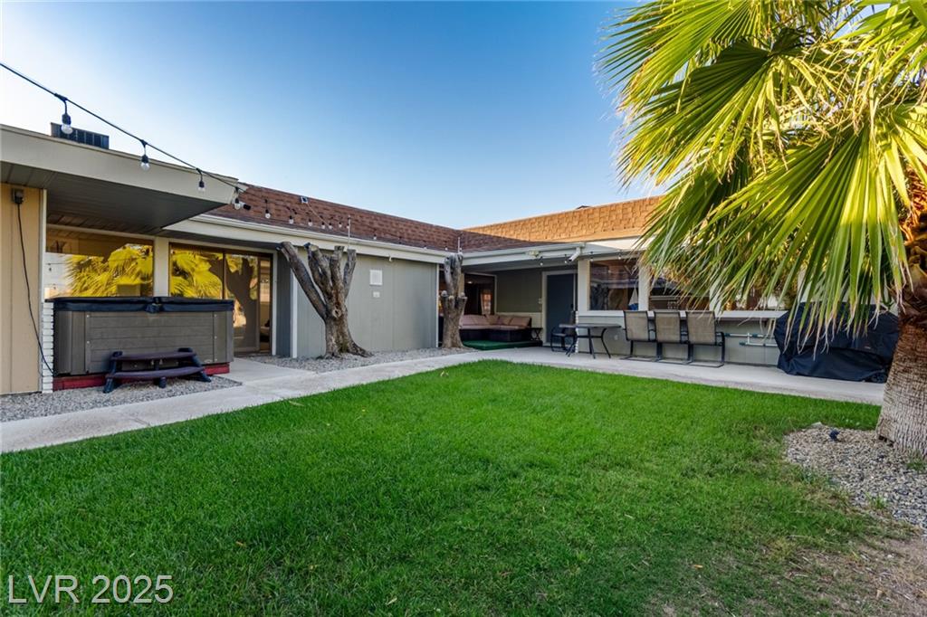 A Private Vegas Oasis on Nearly Half an Acre, Tucked inside Hillcrest Manor, 1 story estate blends timeless architecture w/resort-style outdoor living. Set on an expansive 0.43-acre homesite,residence unfolds across roughly 2,786 sq ft w/ 3 generous bds & 3 stylish bths, creating a chic, single-level w/ flow for entertaining. Inside spacious great rm centers on a statement fireplace, while kitchen & dining areas open to wide views of the grounds, perfect for hosting intimate dinners or weekend gatherings. Luxe primary suite is a serene retreat, complemented by secondary bds that offer flexibility for guests, an office, or glam rm. Outdoors, your private backyard escapes the ordinary, a sparkling drop-in pool invites sun-splashed afternoons, an above-ground hot tub turns evenings into a spa-like ritual under desert stars. Mature landscaping,room for lounge cabanas, a sizable 616-sq-ft garage complete the picture.This hm delivers the coveted Las Vegas lifestyle,and resort like amenities