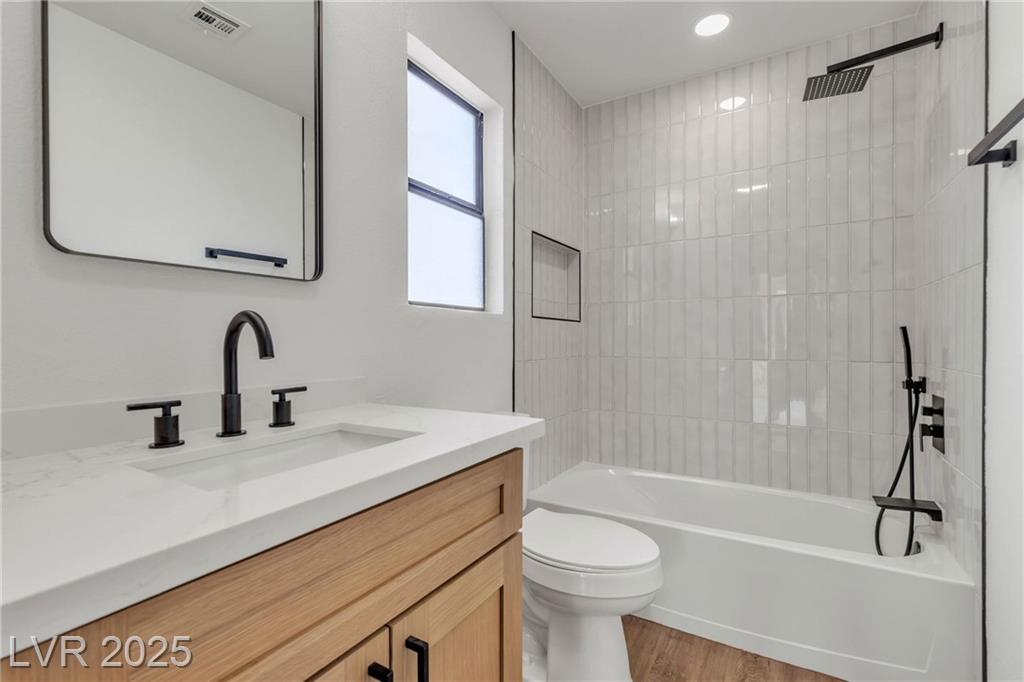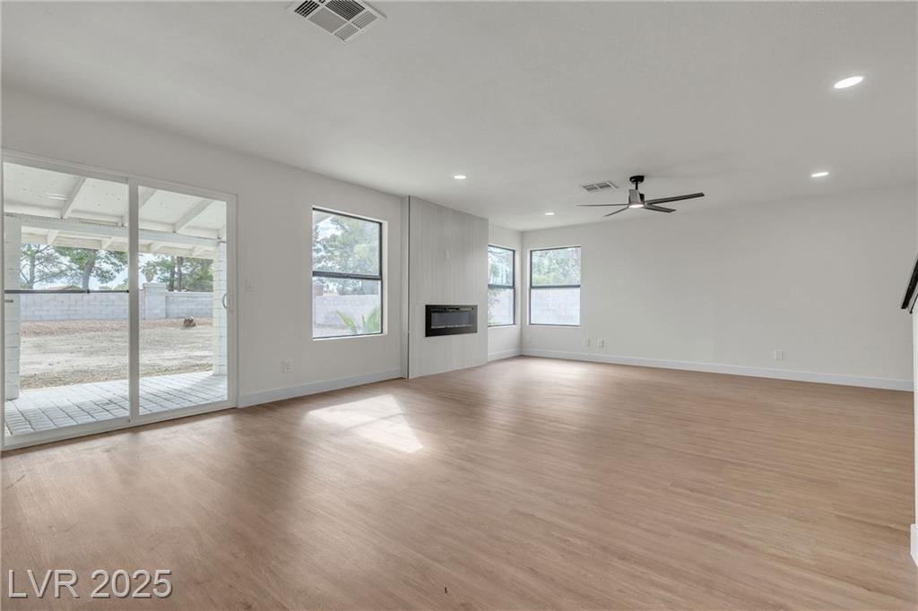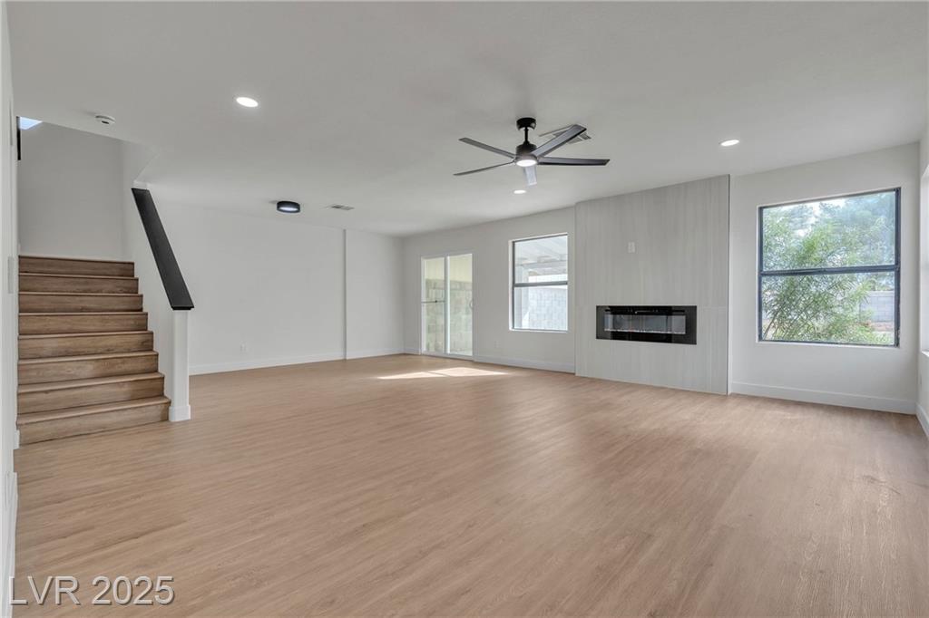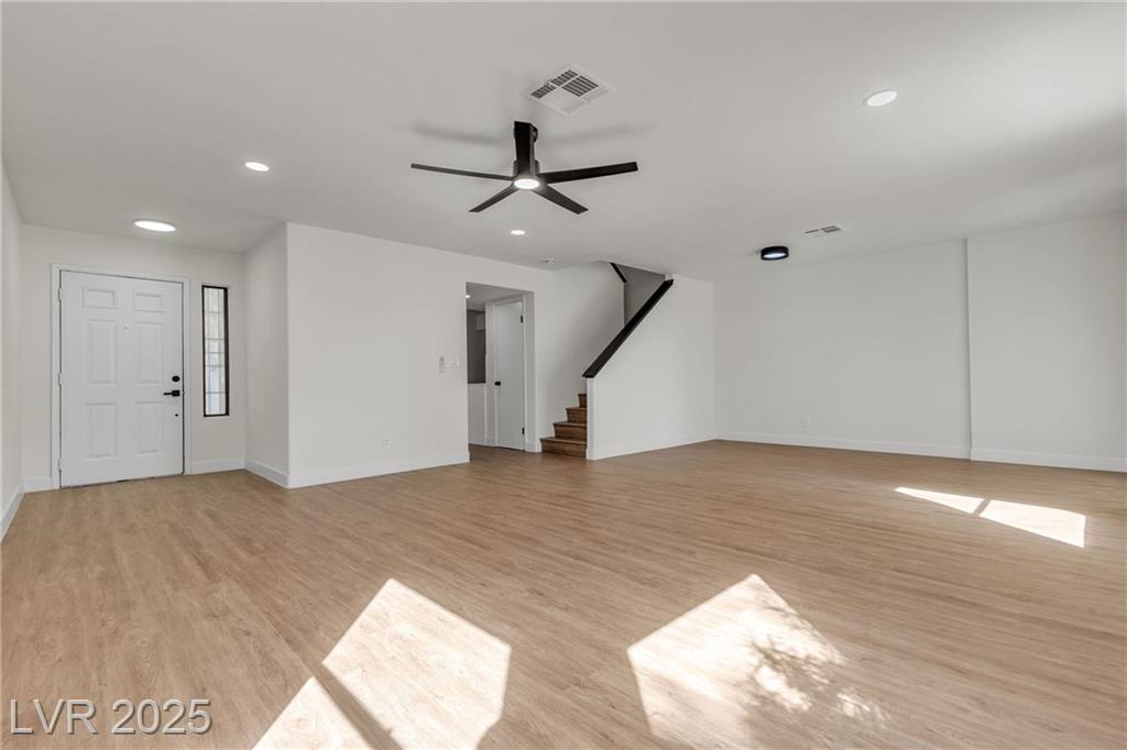 This beautifully renovated corner lot home has been upgraded from top to bottom—no detail overlooked. Step into spacious, open-concept living areas featuring hardwood-style laminate flooring throughout. The living room is highlighted by a sleek modern fireplace, adding warmth and a stylish focal point. The brand-new kitchen boasts custom cabinetry, stainless steel appliances, and a contemporary design perfect for any home chef. Upstairs, all bedrooms feature modern black ceiling fans and ample natural light. Every bathroom has been completely remodeled with spa-inspired finishes, creating a relaxing, luxurious feel. The backyard is a blank slate—currently finished with dirt and rock, ready for your personal touch to make it your own outdoor oasis. Don't miss this move-in ready modern gem!