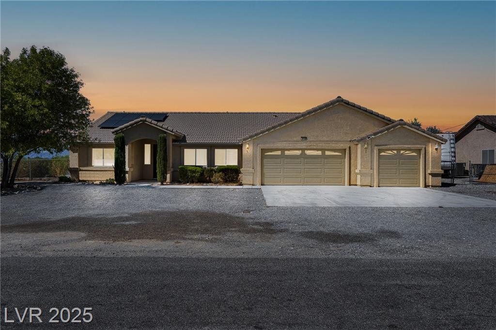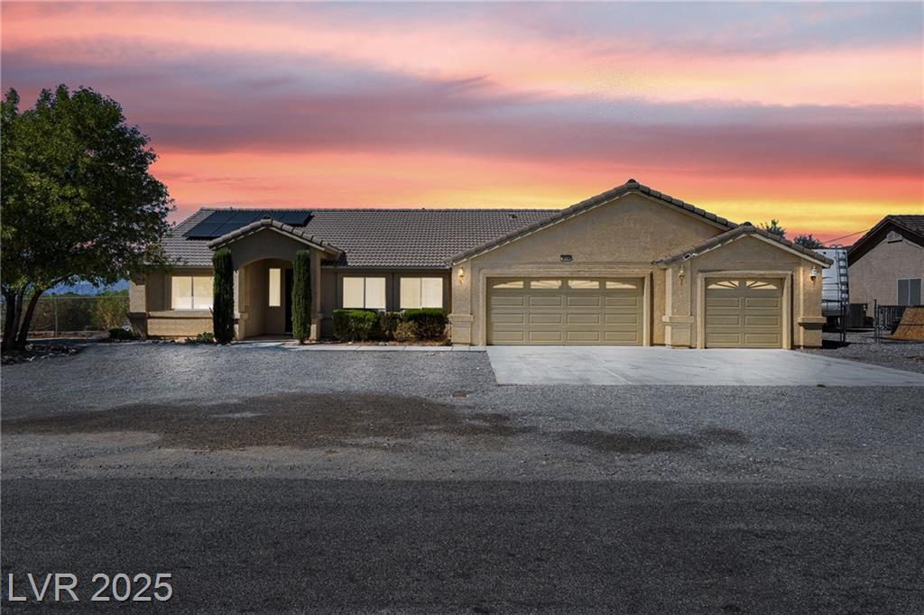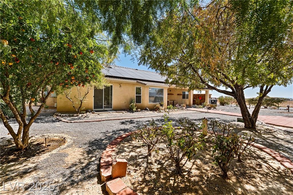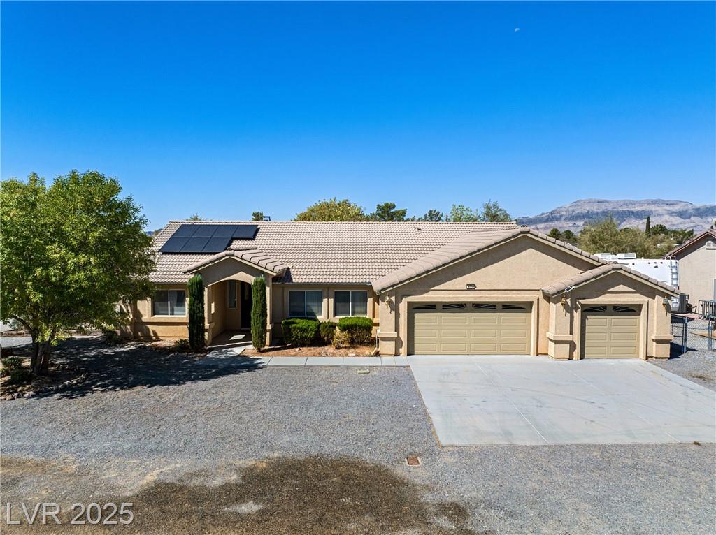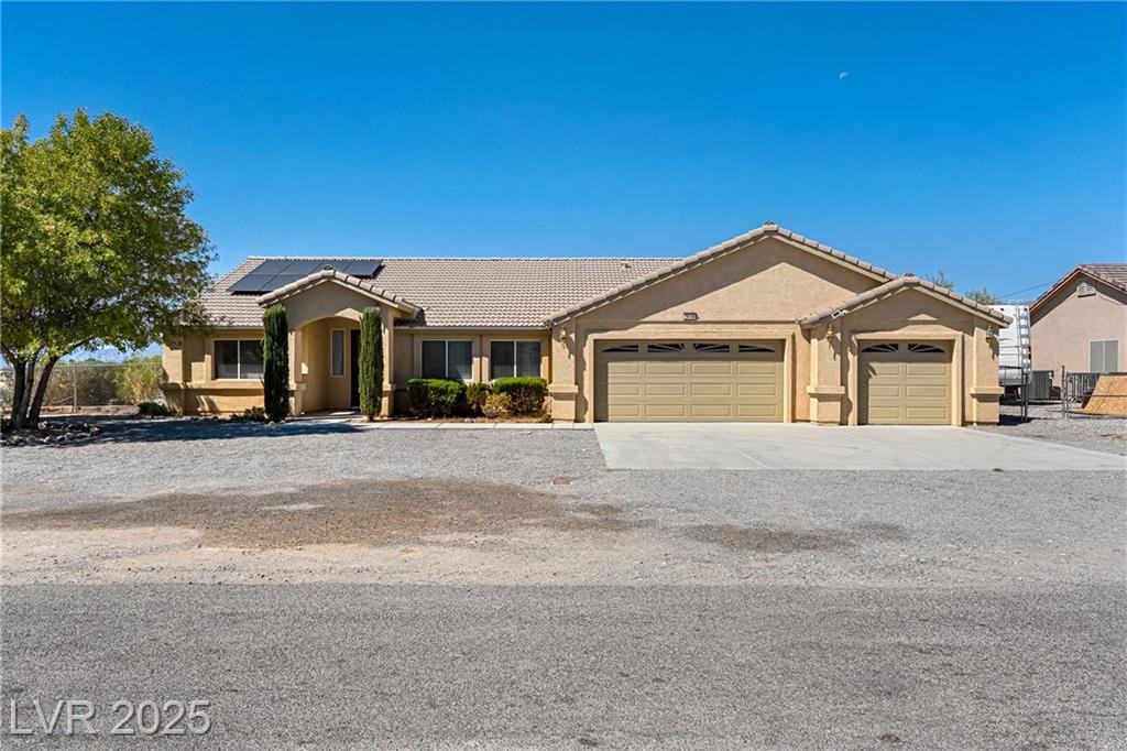 Spacious 3-bedroom, 2-bathroom home in Pahrump, NV with no HOA and a split-bedroom floor plan on a 1/3-acre corner lot. This inviting residence features a chef’s kitchen with plenty of counter space and a walk-in pantry, a spacious primary bathroom with a double-sink, vanity, a large walk-in shower, and a jet tub. Pride of ownership shows throughout, with a fully fenced backyard, RV parking, and a 3-car garage. Enjoy your own fruit trees—walnut, pear, plum, and pomegranate—and a blackberry bush. The property includes RV hookups, solar lease and is located on the north side of Pahrump, close to schools, parks, and Highway 160. Come see why this home could be yours.