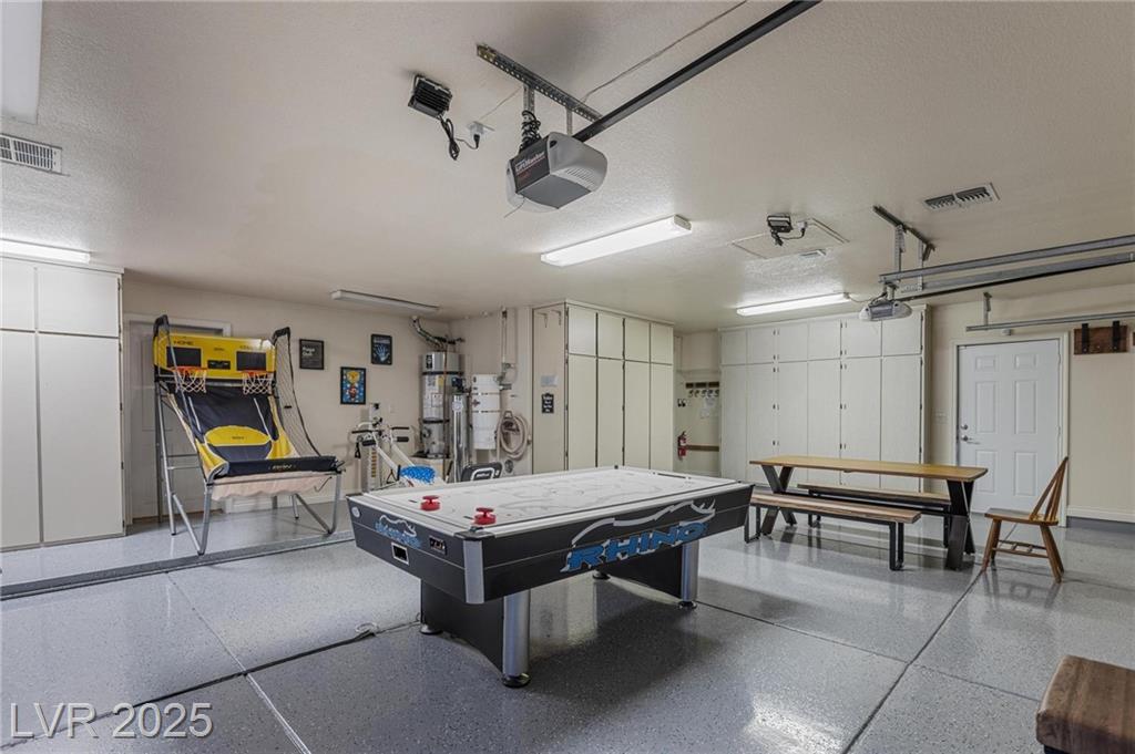Garages Auto Door Opener(s),Cabinets,Entryto House,Epoxy Floor,Exterior Door,Finished Interior,Garage Cooled,Storage Area/Shelves