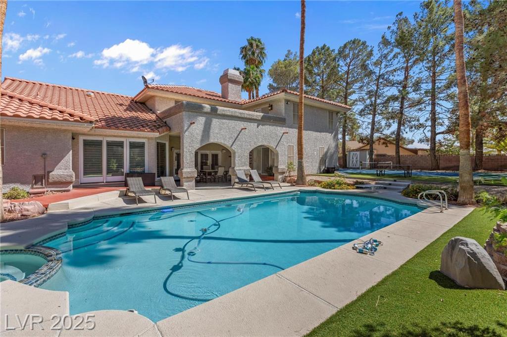 Impeccable custom home located in Section 10, sitting on over half an acre corner lot. Enter through double doors into a massive family room with vaulted ceilings. The home lives like a single-story, featuring dual primary bedroom suites—one upstairs and one downstairs. Both primary bedrooms have dual walk-in closets, bathrooms with double sinks, and separate tub and shower. The gourmet kitchen offers plenty of counter space, a sitting area, a massive pantry, and stainless-steel appliances, including a built-in fridge. The backyard is a resort-style retreat with a sparkling pool, hot tub, and your very own pickleball court, perfect for entertaining. Private, gated RV parking is available for all your toys. Best of all, there’s no HOA, and the home comes fully furnished with newer HVAC systems.