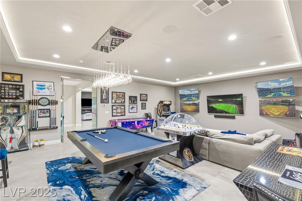 4160 W Ford Ave isn’t just a home—it’s your personal Las Vegas retreat. Behind the gates, you’ll find a private estate where every day feels like the weekend. Start with a dip in your resort-style pool, then challenge friends to a round on your 7-hole mini golf course. Walk out back and watch the backyard transform into your own entertainment hub. Inside, there’s space for everyone: family movie nights in the game room, gourmet dinners around the massive island, and seamless smart-home living at your fingertips. Need room for guests or toys? A full guest house and climate-controlled, 4 car garage and an RV garage where you can park an RV, toys or another 4 cars.. this property has you covered. Set on over an acre, this estate offers privacy, luxury, and endless fun—all just minutes from the Strip. Think of it as your everyday vacation spot, where memories are made and weekends never end.