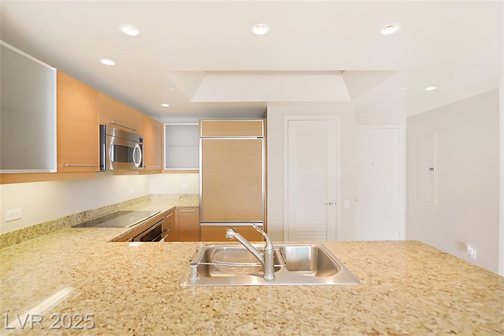 Situated within the prestigious Turnberry Towers, this 1bd/1.5 ba offers an elegant blend of urban living and tranquil retreat. Floor-to-ceiling windows frame sweeping views of the Las Vegas skyline, Strip lights, and surrounding mountains. Inside, a refined palette of neutral tones complements fine finishes throughout. The expansive living area flows seamlessly to a long terrace, blurring the lines between interior and exterior. The master bedroom, complete with en suite bath offers a quiet sanctuary. Residents of Turnberry Towers enjoy access to upscale amenities—pool, spa, fitness center, tennis courts, 24-hour concierge, and gated security—all just moments from the city’s premier attractions.