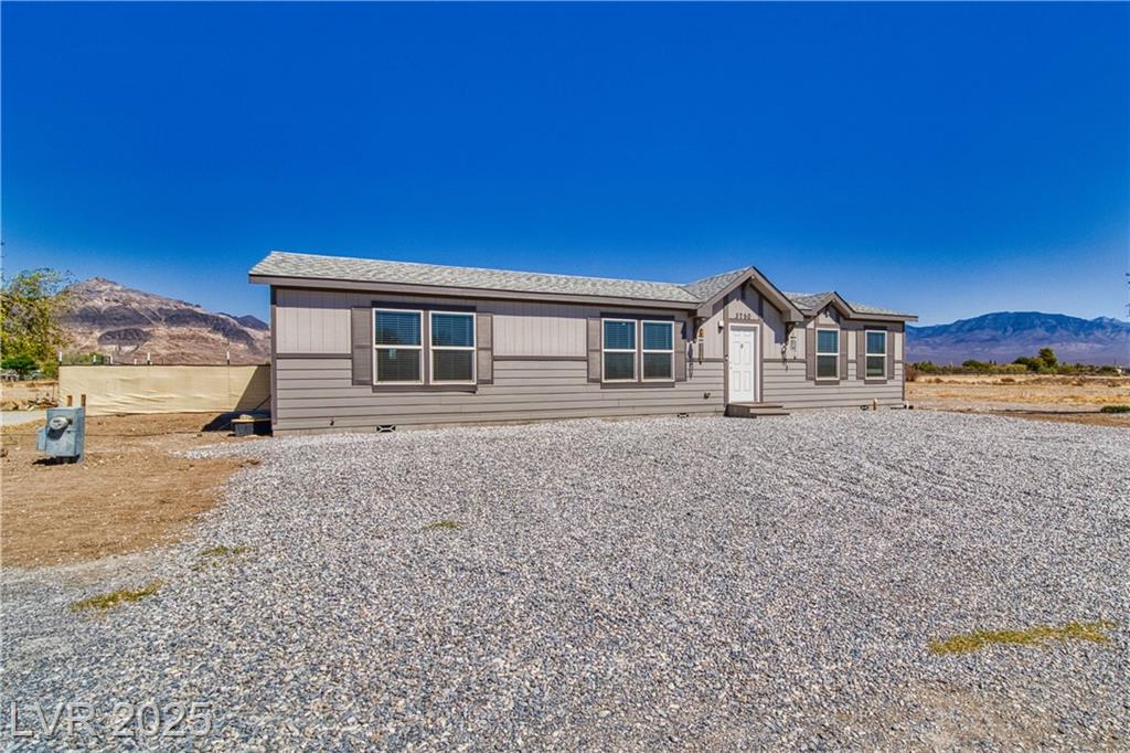 Welcome to 3750 W Blosser Ranch Road in Pahrump, NV—set on 5.3 acres with endless potential. This newer 3-bedroom, 2-bath manufactured home features an open-concept design with a spacious living area, office nook, and modern kitchen complete with stainless steel appliances, a center island with storage drawers, and plenty of counter space. The property offers a versatile shop/garage for projects or storage, while a mature fruit tree brings charm to the wide-open landscape. With stunning mountain views as your backdrop, this blank canvas invites you to create the lifestyle you’ve been dreaming of—whether expanding, gardening, or enjoying the peaceful desert retreat.