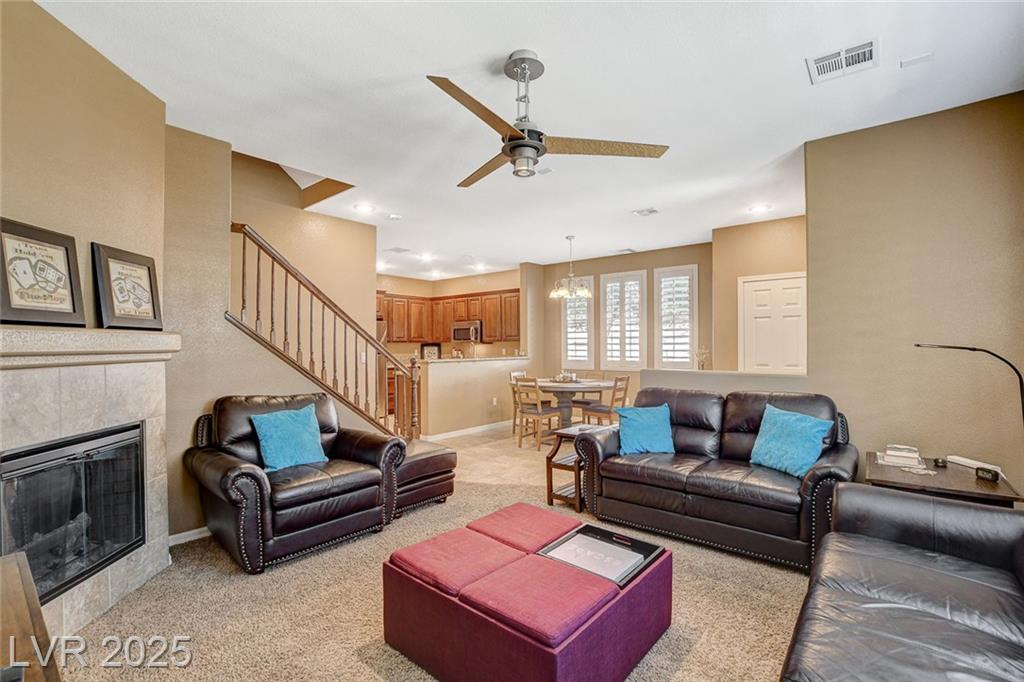 Beautiful furnished 4 Bedroom Townhouse Located in the Heart of Summerlin! Situated just Minutes Away From 215 beltway, Downtown Summerlin, Red Rock Casino, Las Vegas Ballpark & Red Rock Canyon Conservation Area! Spectacular Amenities include Community Pools and Spa, Parks, Playgrounds, Basketball and Tennis Courts, Walking Trails, Picnic and BBQ Areas and More! Truly Summerlin Living at its BEST! Home Features 4 Bedrooms. The Separate 3rd Floor Suite is Complete w/ Full Bathroom & Walk in Closet. Primary Bedroom is Separate from Other Rooms and Includes a Separate Tub & Shower along with Walk in Closet. Spacious Loft is Pre-Wired for Surround Sound. Classic Kitchen Upgrades include Granite Countertops and All Stainless Steel Appliances. Large Walk in Pantry Closet. Cozy Living Room with a Gas Fireplace, Furnished with Leather Couches. Garage Includes Epoxy Flooring, a Sauna, and a 220 Outlet that Could be Used for Electronic Vehicle Charging Station.
