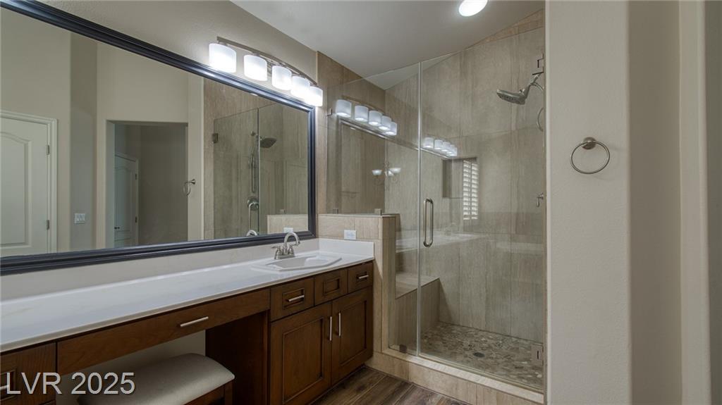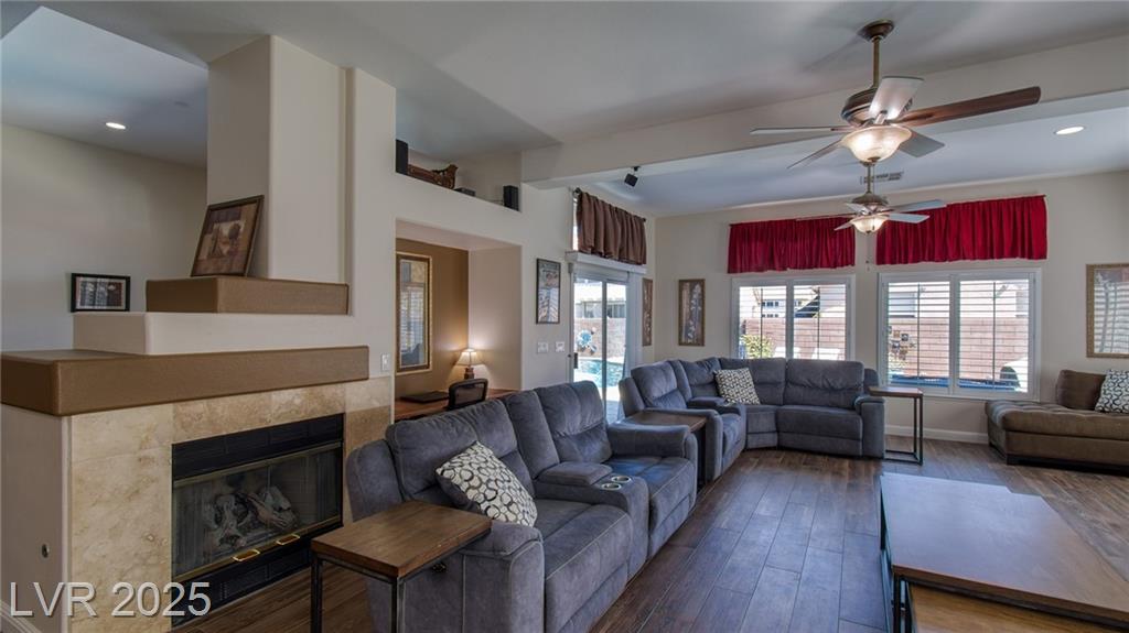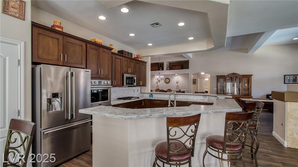 Single story home in small gated community in Wolf Creek subdivision. Open floor plan with over 3100 S.F., vaulted ceilings, separate living and family rooms. Kitchen remodeled with soft close cabinets, quartz counter tops and wood like tile throughout the home in high traffic areas and completed less than 3 years ago. Bathroom remodeled with large soaking tub and shower with sitting bench. 4 bedrooms and very large master bedroom with attached retreat area. Pool/spa was installed 6 years ago. Large 3 car garage with epoxy floor.