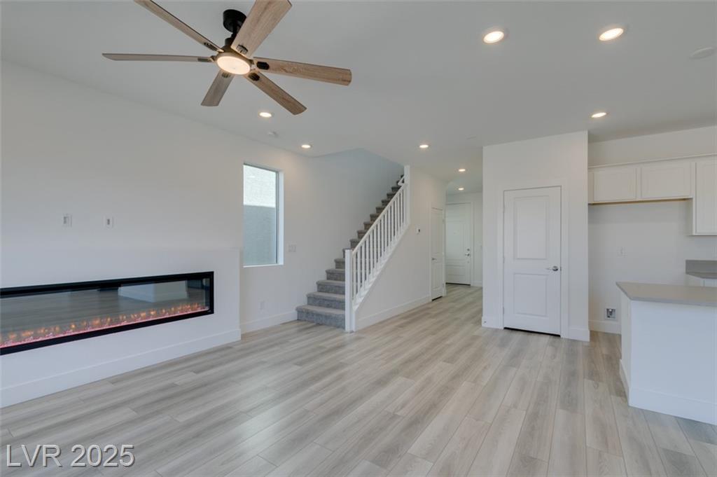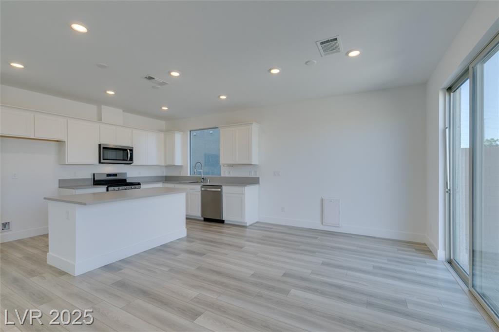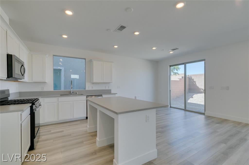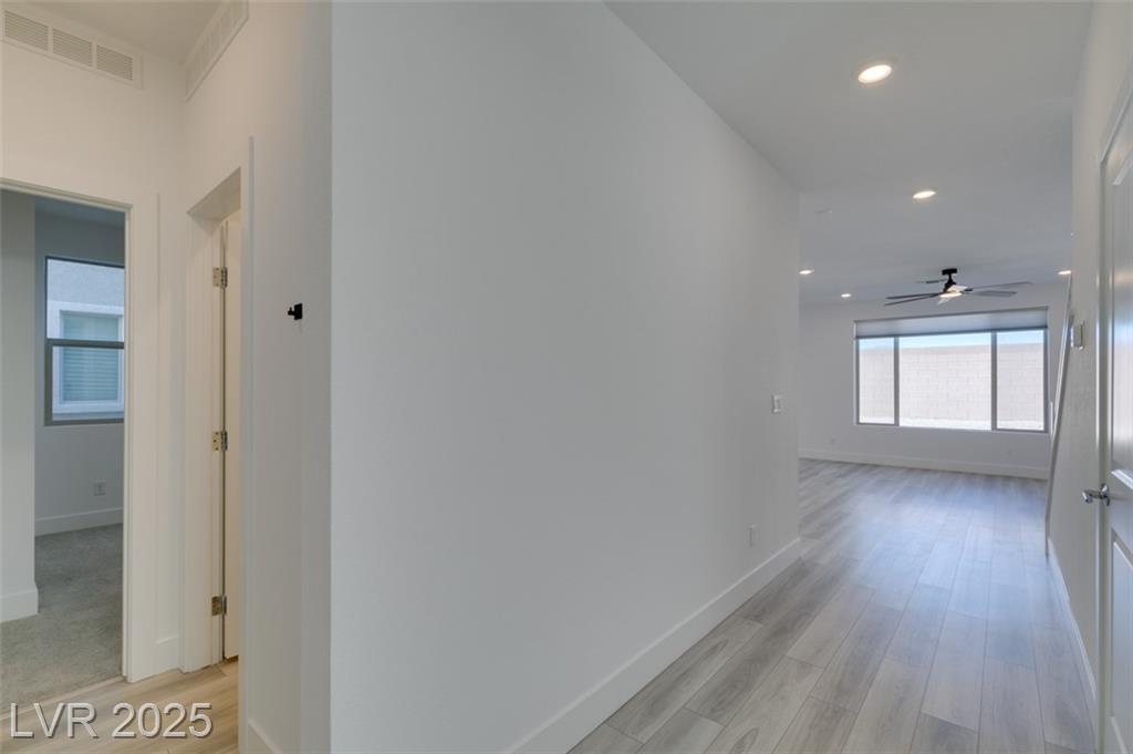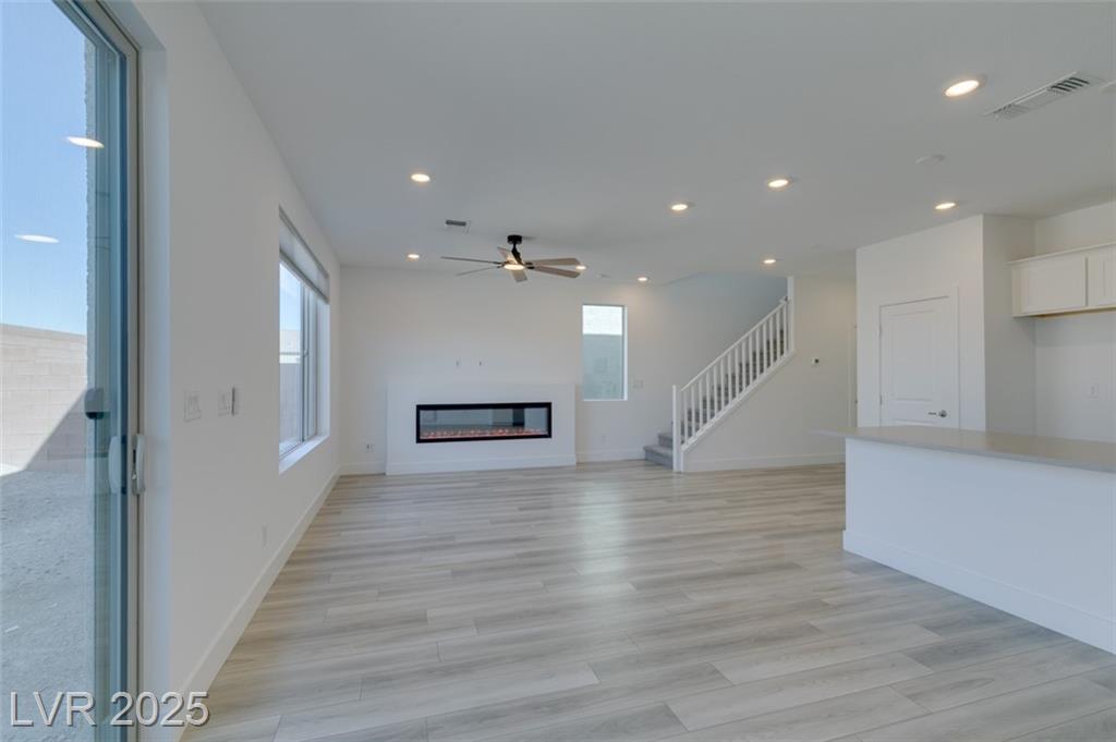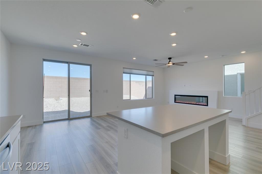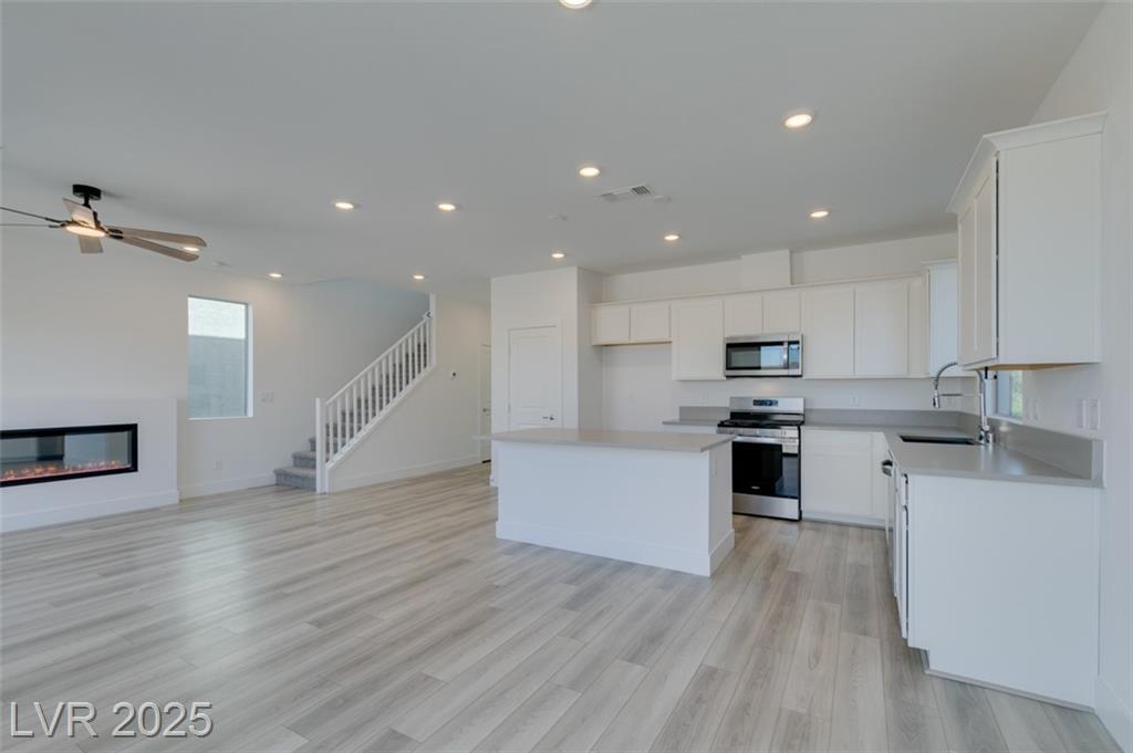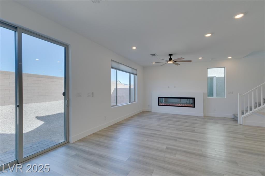 This 2023 Pulte Mesquite Plan in southwest Las Vegas offers modern design and thoughtful upgrades throughout. With no rear neighbor, enjoy added privacy and comfort. The first-floor bedroom and full bath are perfect for guests or multi-gen living. Inside, you’ll find an open layout with a sleek linear glass fireplace, designer white cabinets, quartz countertops, and upgraded flooring throughout. A rare blend of style and functionality in a prime location.