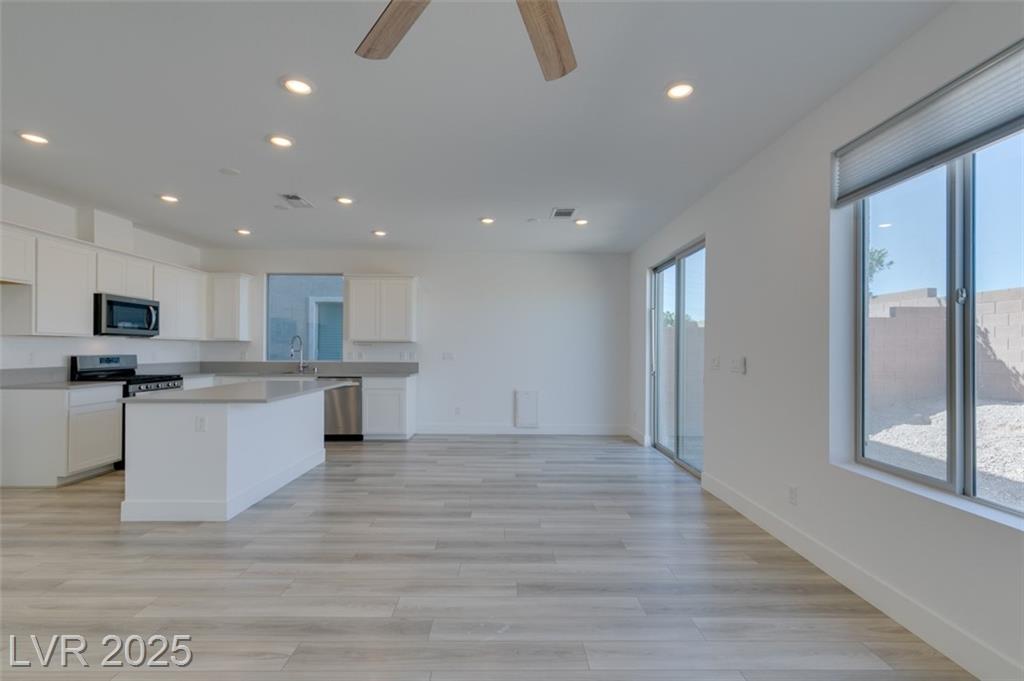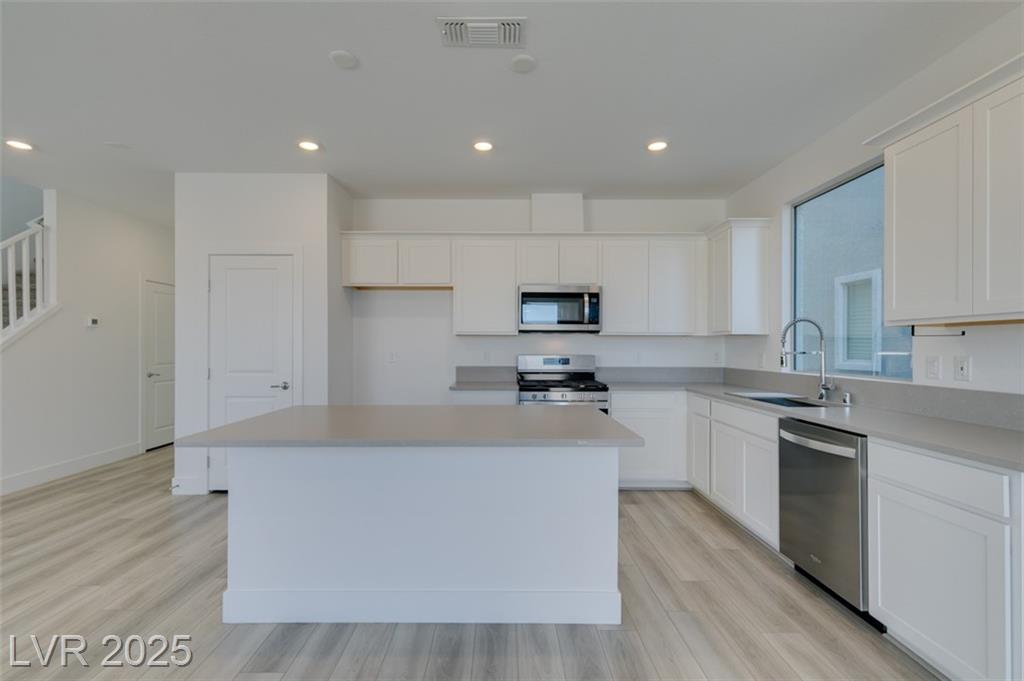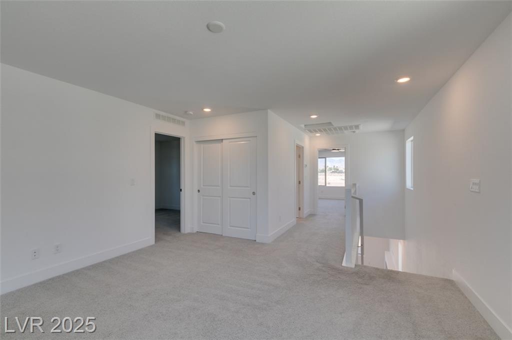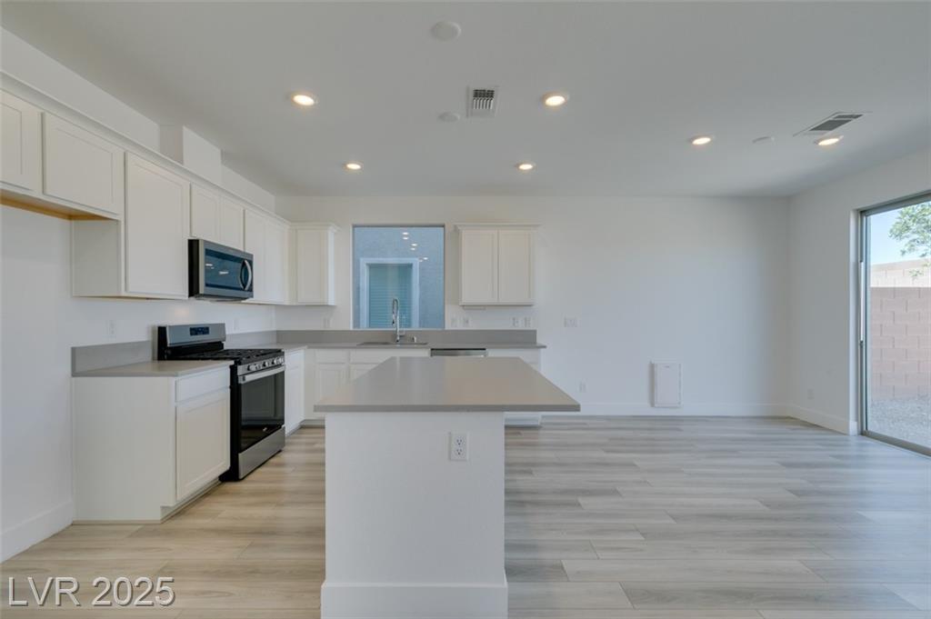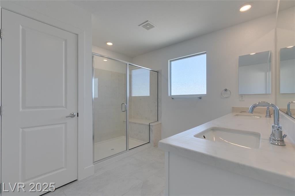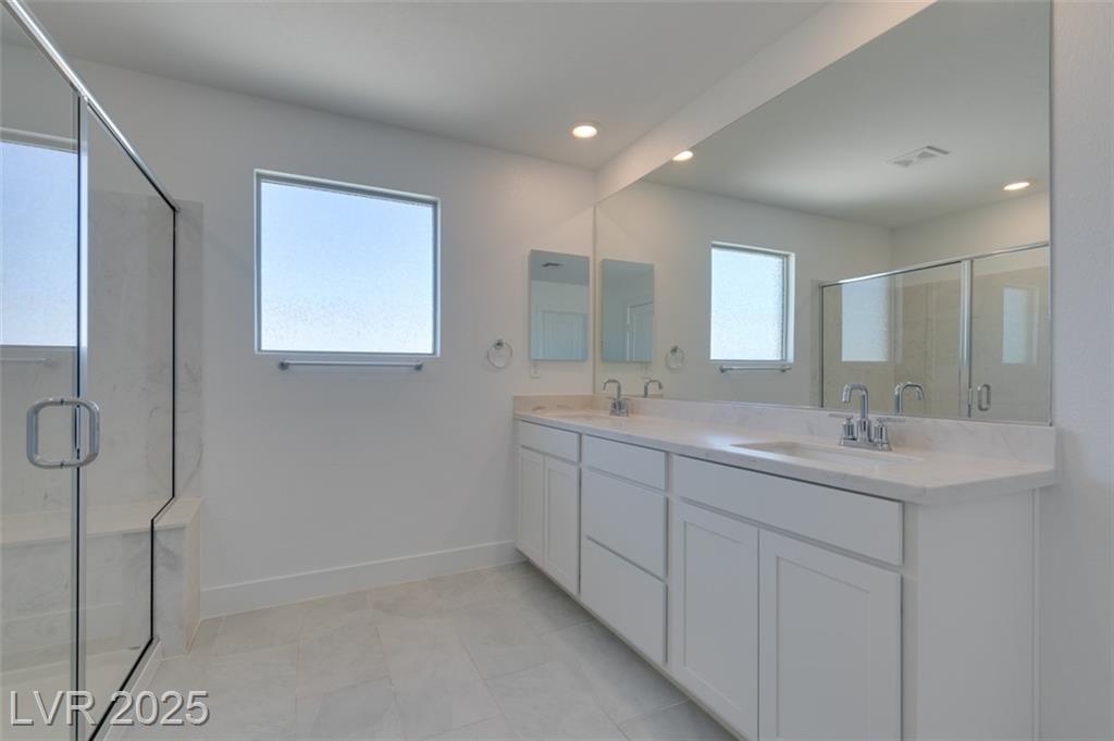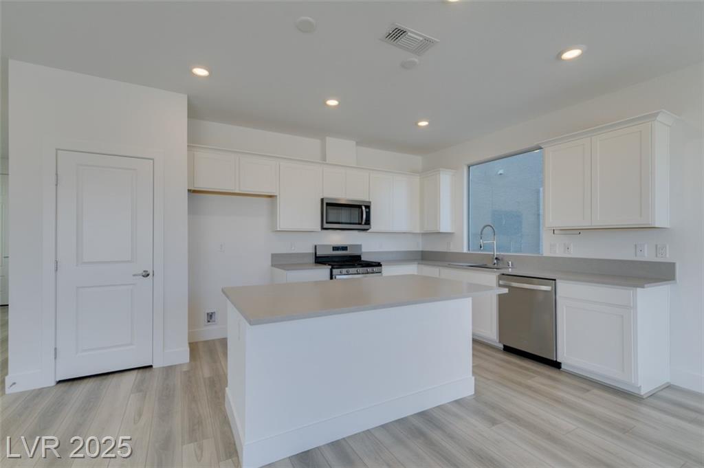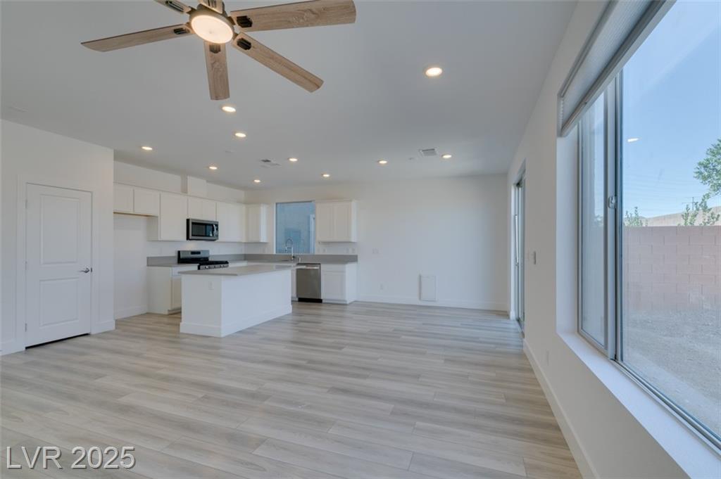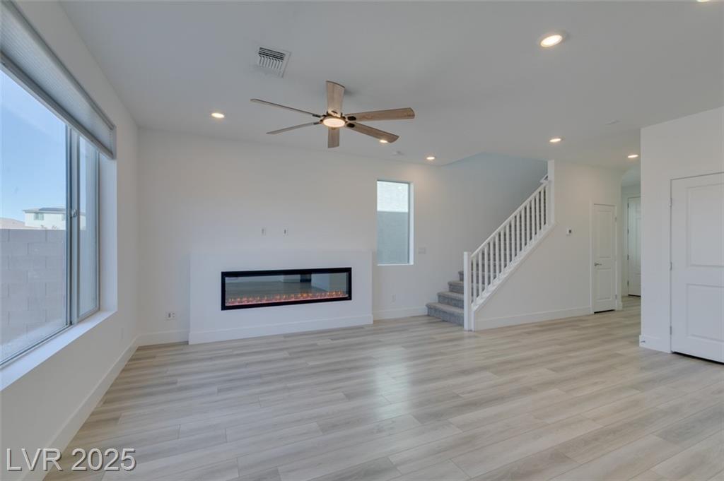 This 2023 Pulte Mesquite Plan in southwest Las Vegas offers modern design and thoughtful upgrades throughout. With no rear neighbor, enjoy added privacy and comfort. The first-floor bedroom and full bath are perfect for guests or multi-gen living. Inside, you’ll find an open layout with a sleek linear glass fireplace, designer white cabinets, quartz countertops, and upgraded flooring throughout. A rare blend of style and functionality in a prime location.